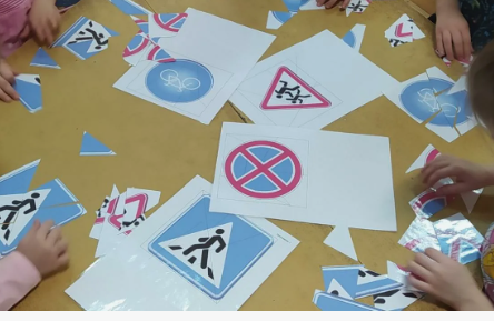 Воспитанники группы "Звездочки" разучили сигналы светофора "Красный, желтый, зеленый". Выполняли упражнения с обручем. Отгадывали загадки по дорожной тематике . Играли в игру "Автомультики".Собирали дорожные знаки.