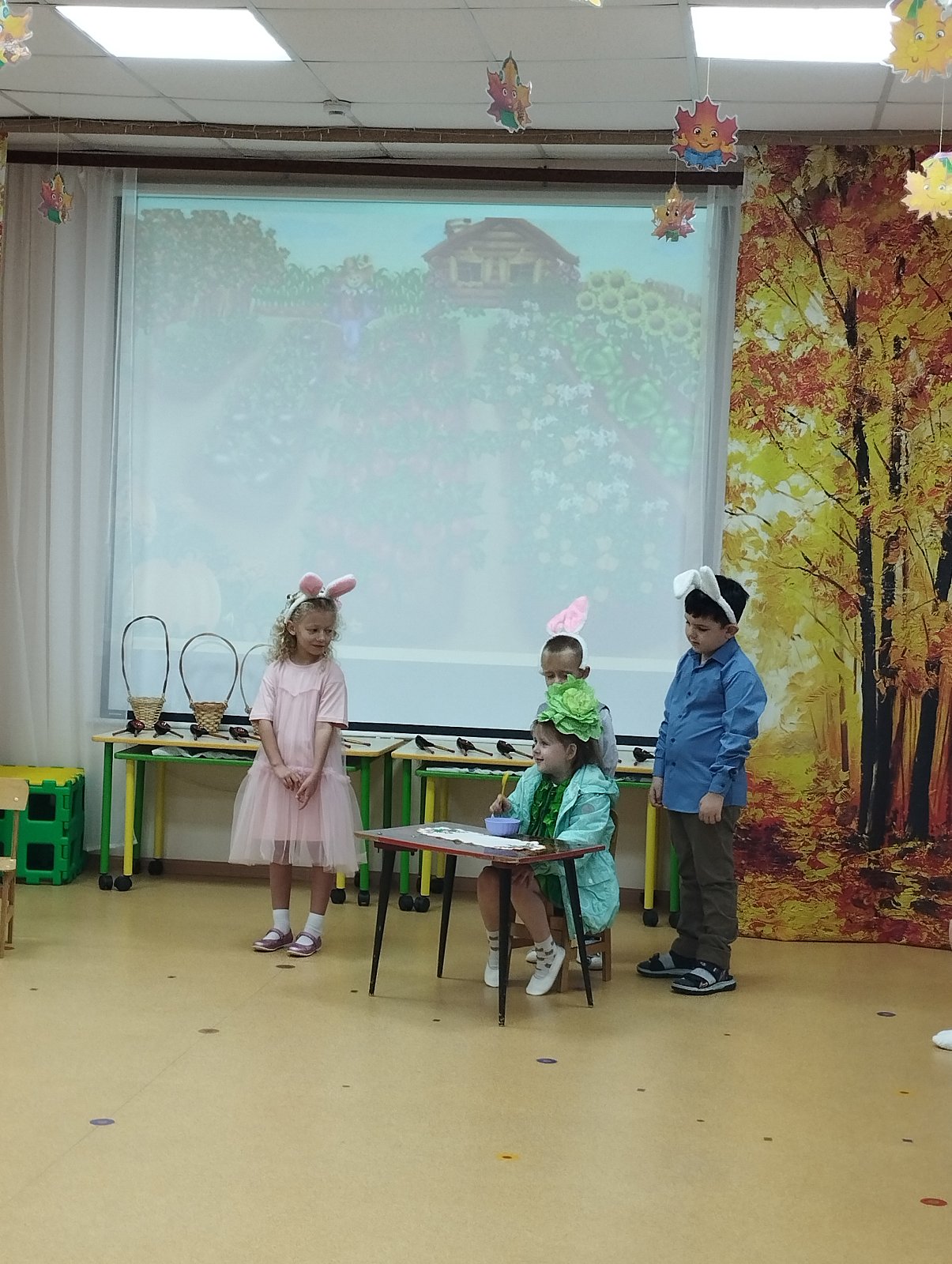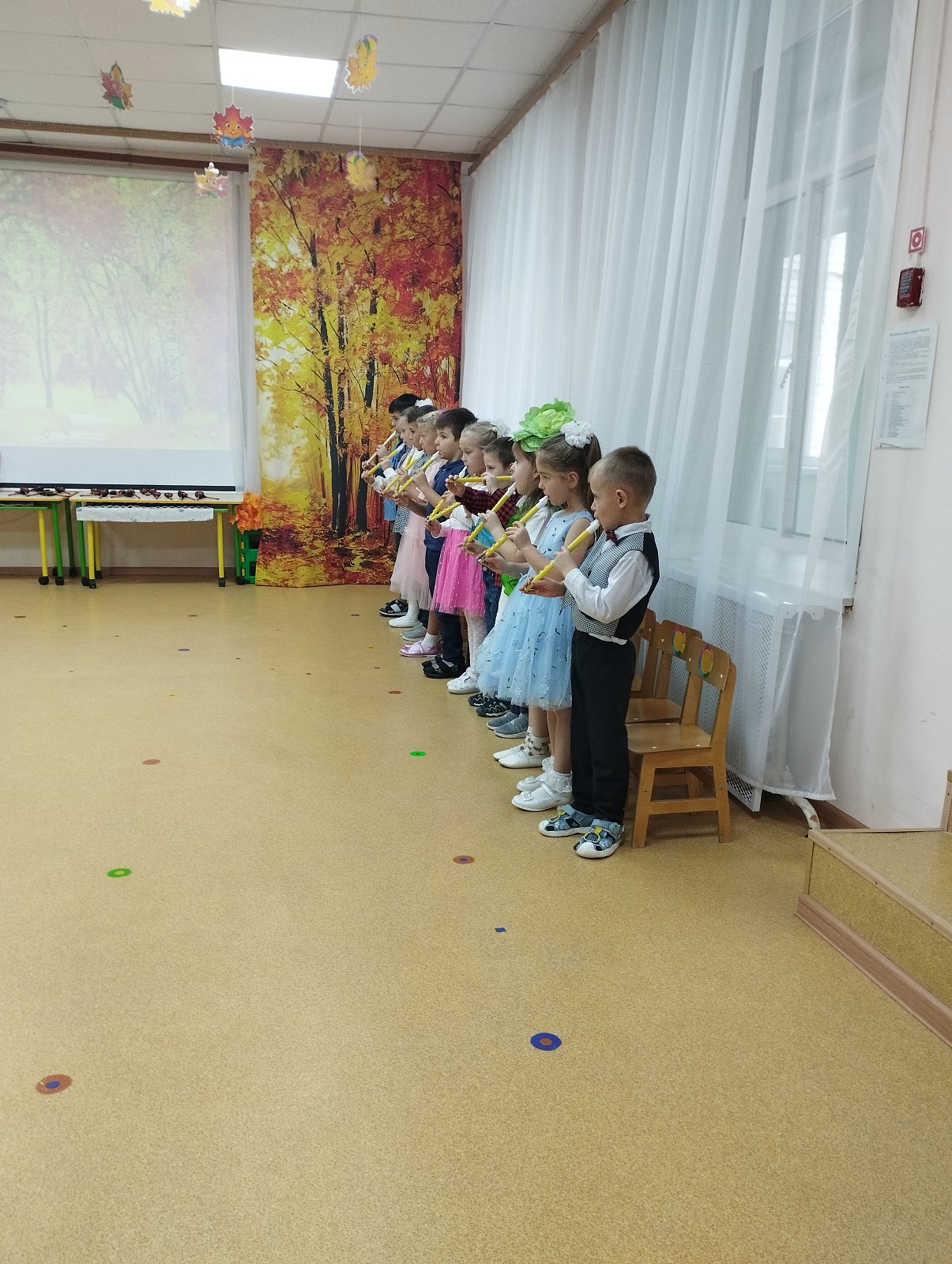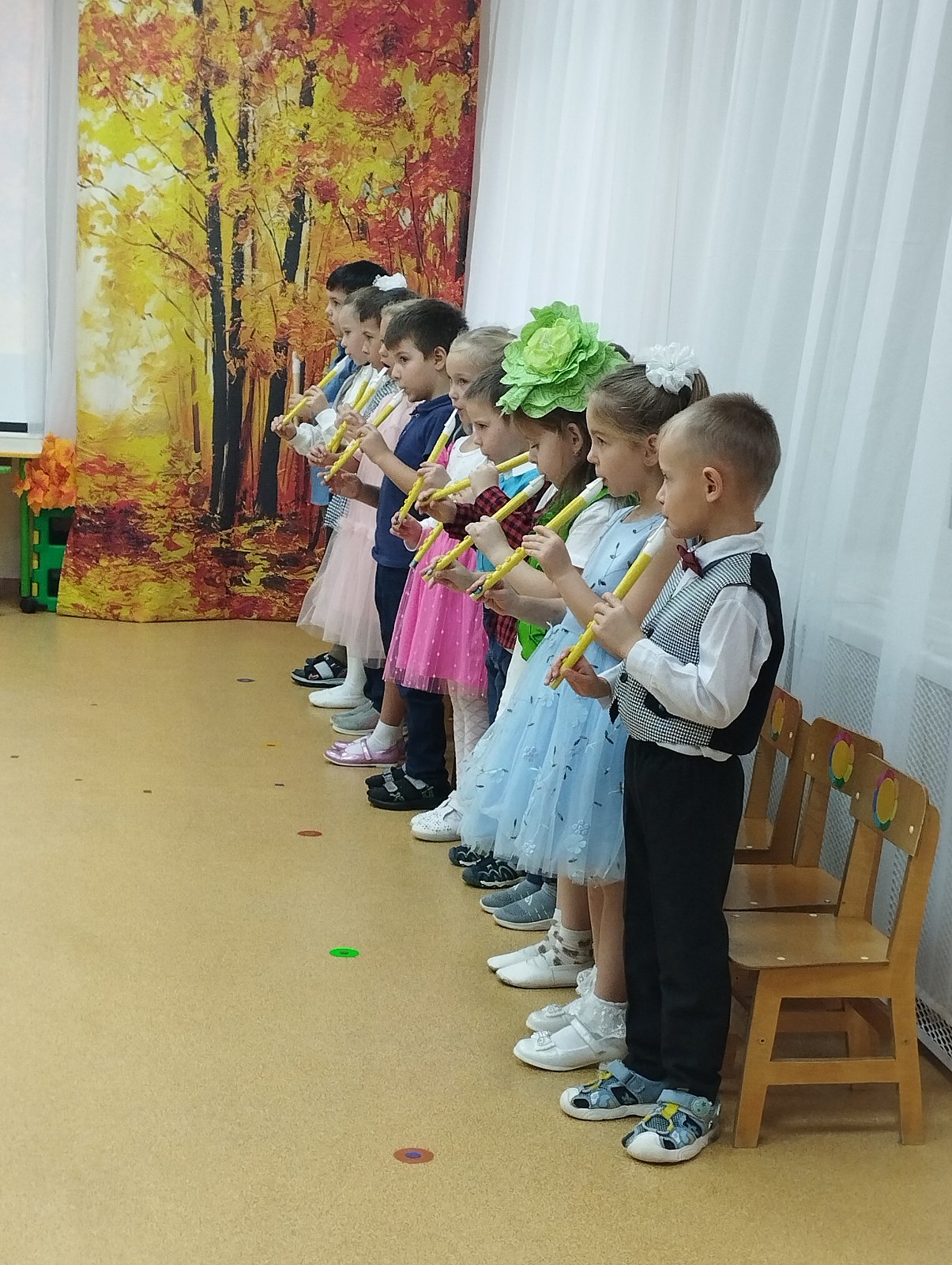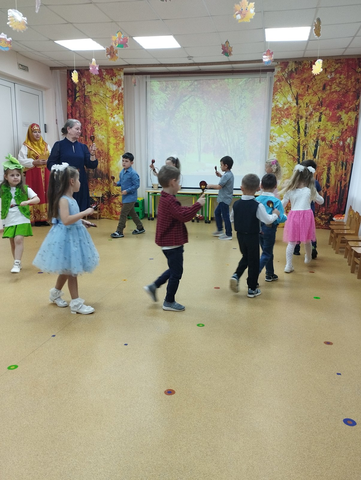 Воспитанники с нетерпением ждали праздника и с удовольствием готовились к нему. Разучили стихи, показали сценку, пели песни, танцевали с листочками.Играли на свирелях и ложках, совместно с родителями участвовали в осенних конкурсах. В гости к ребятам пришла «Осень».