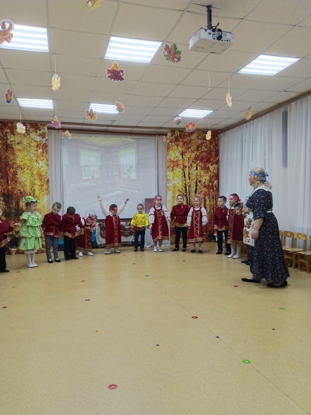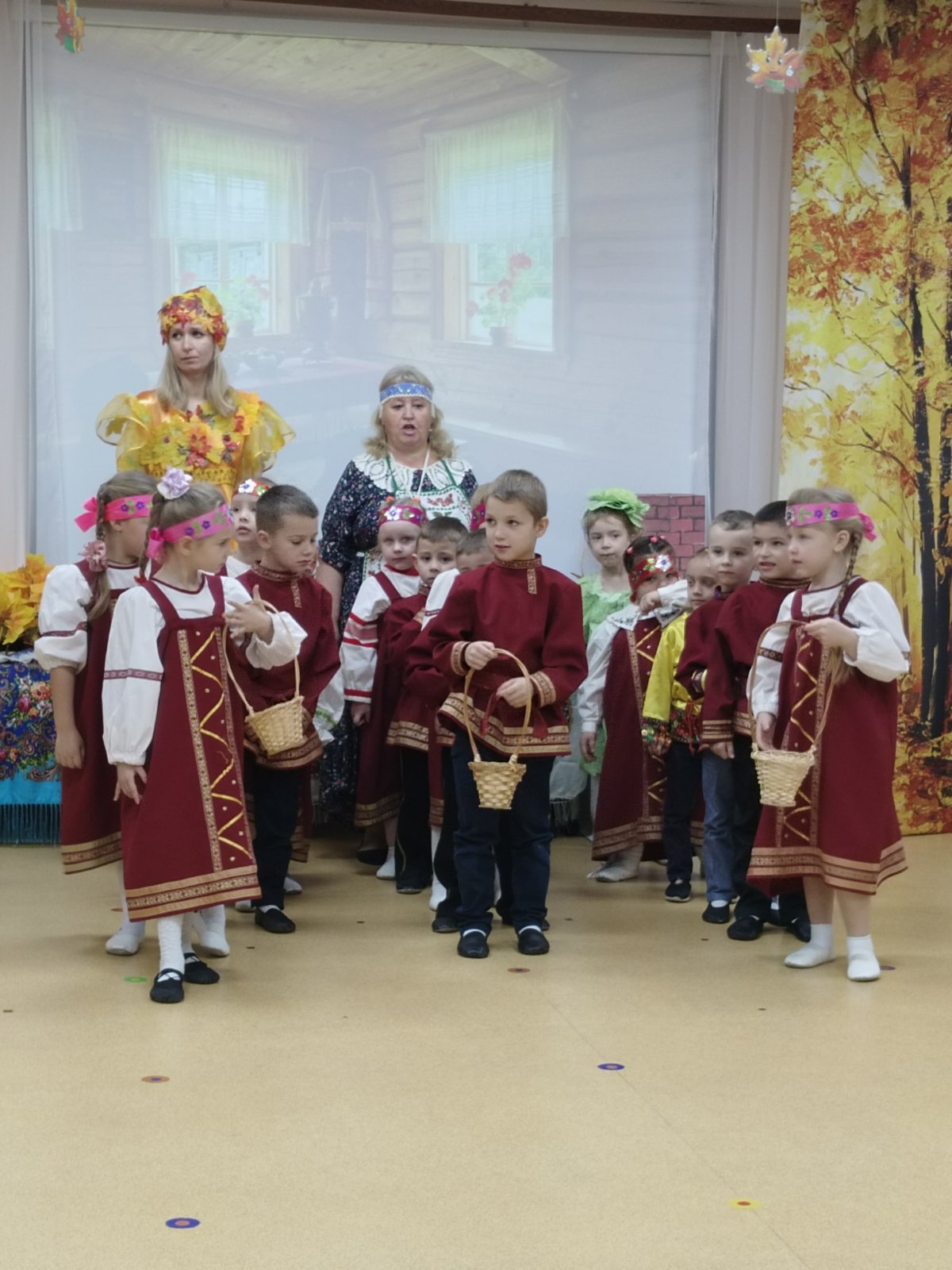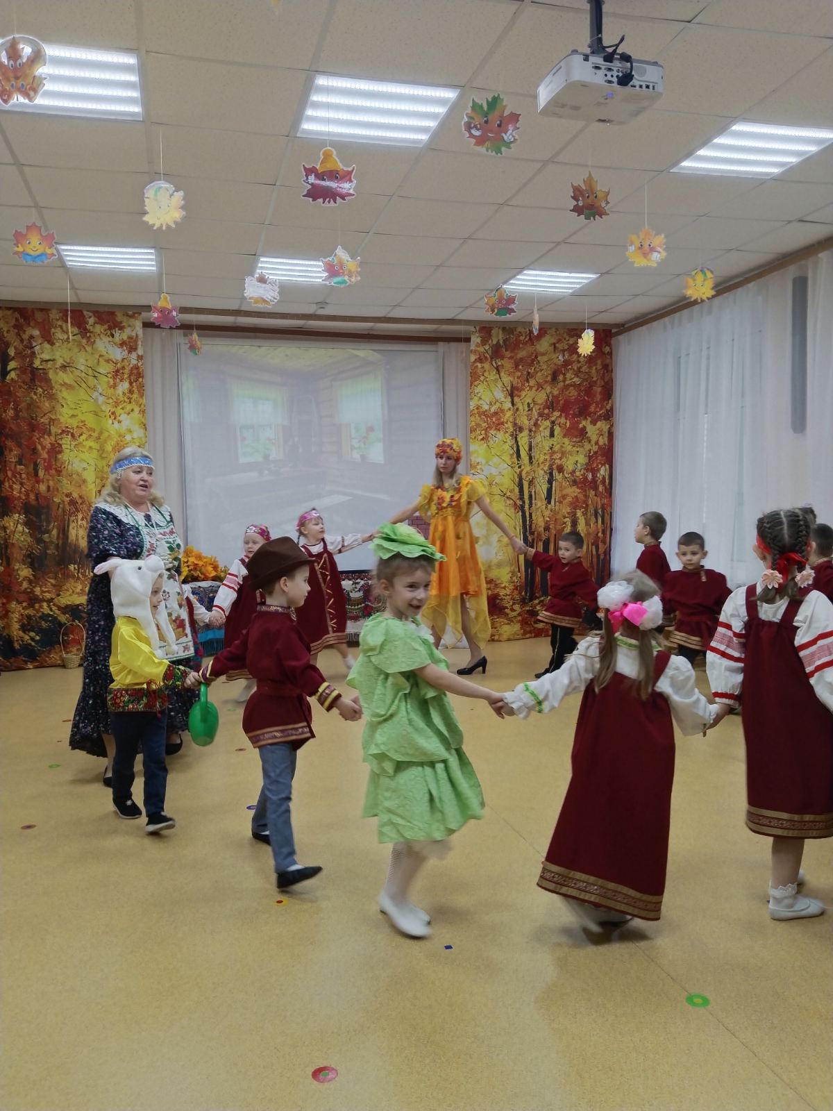 На наши «Капустные посиделки» в гости пришла красавица Осень. Дети водили хороводы, читали стихи, пели песни, все вместе играли в веселые игры: «Плетень», «Яша», "Веселая капуста". Как всегда, Осень была очень щедра и за хорошее настроение, подаренное ребятами она всех угостила пирогами с капустой. Посиделки удались на славу!