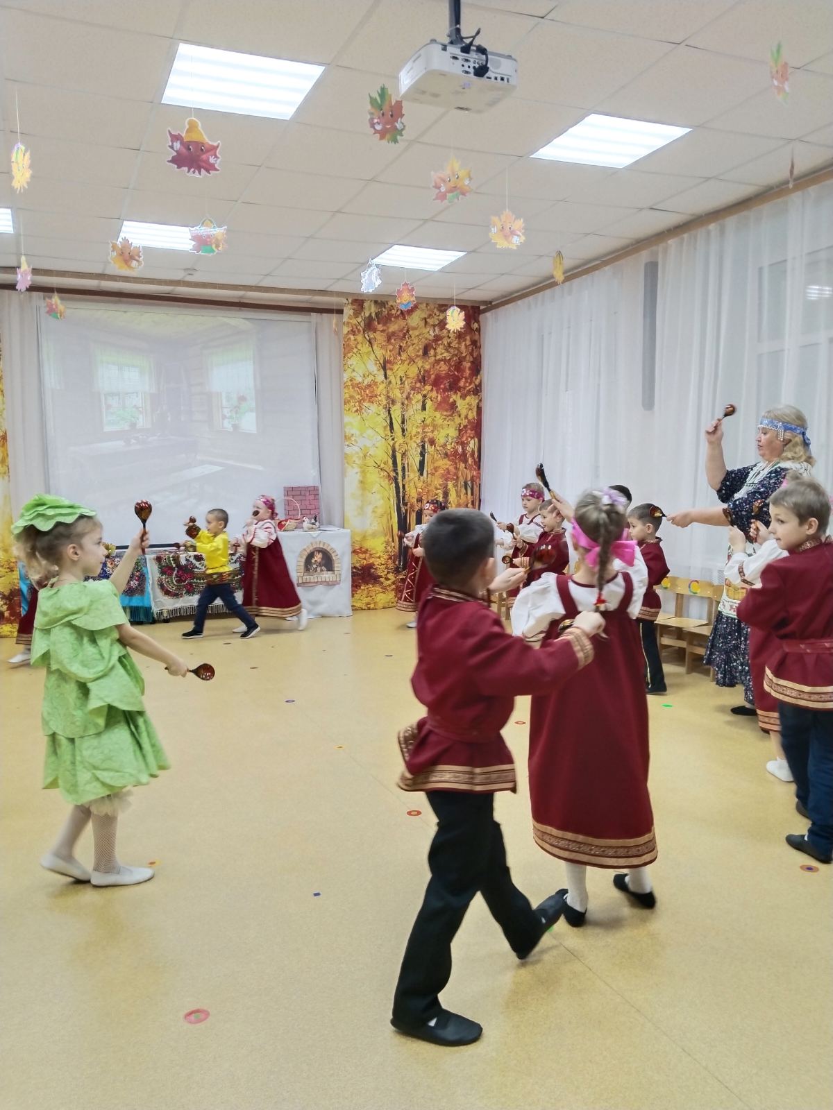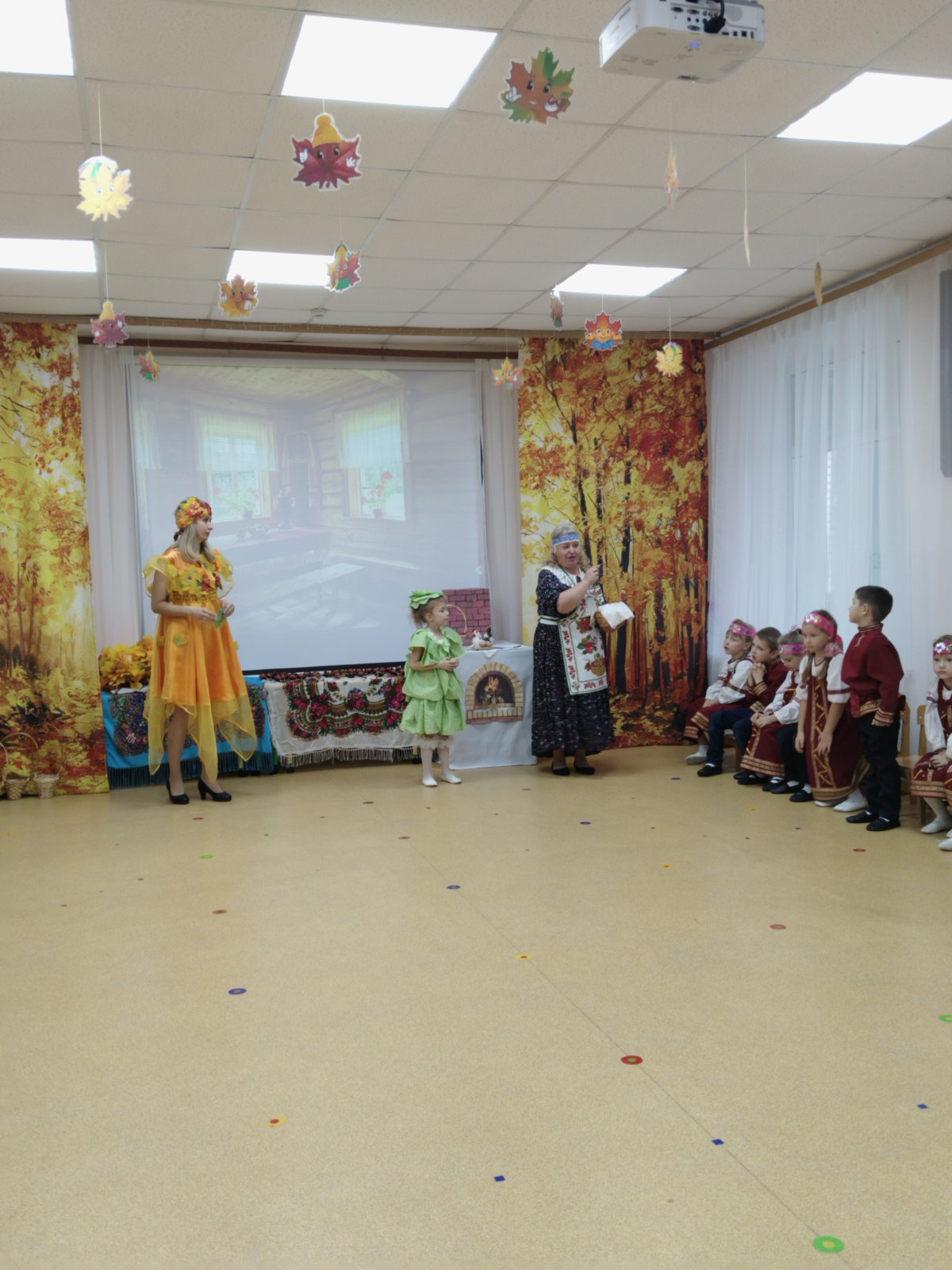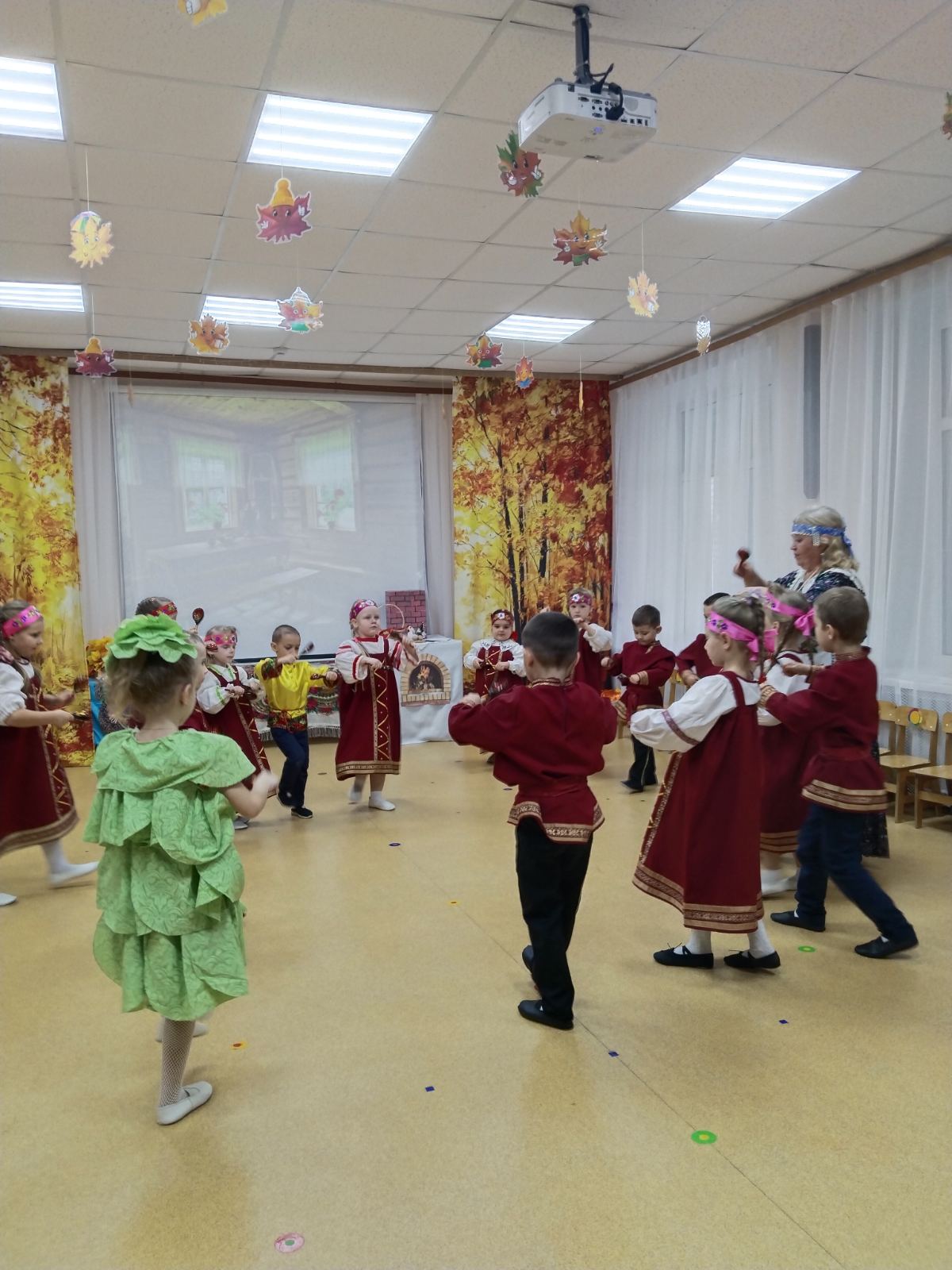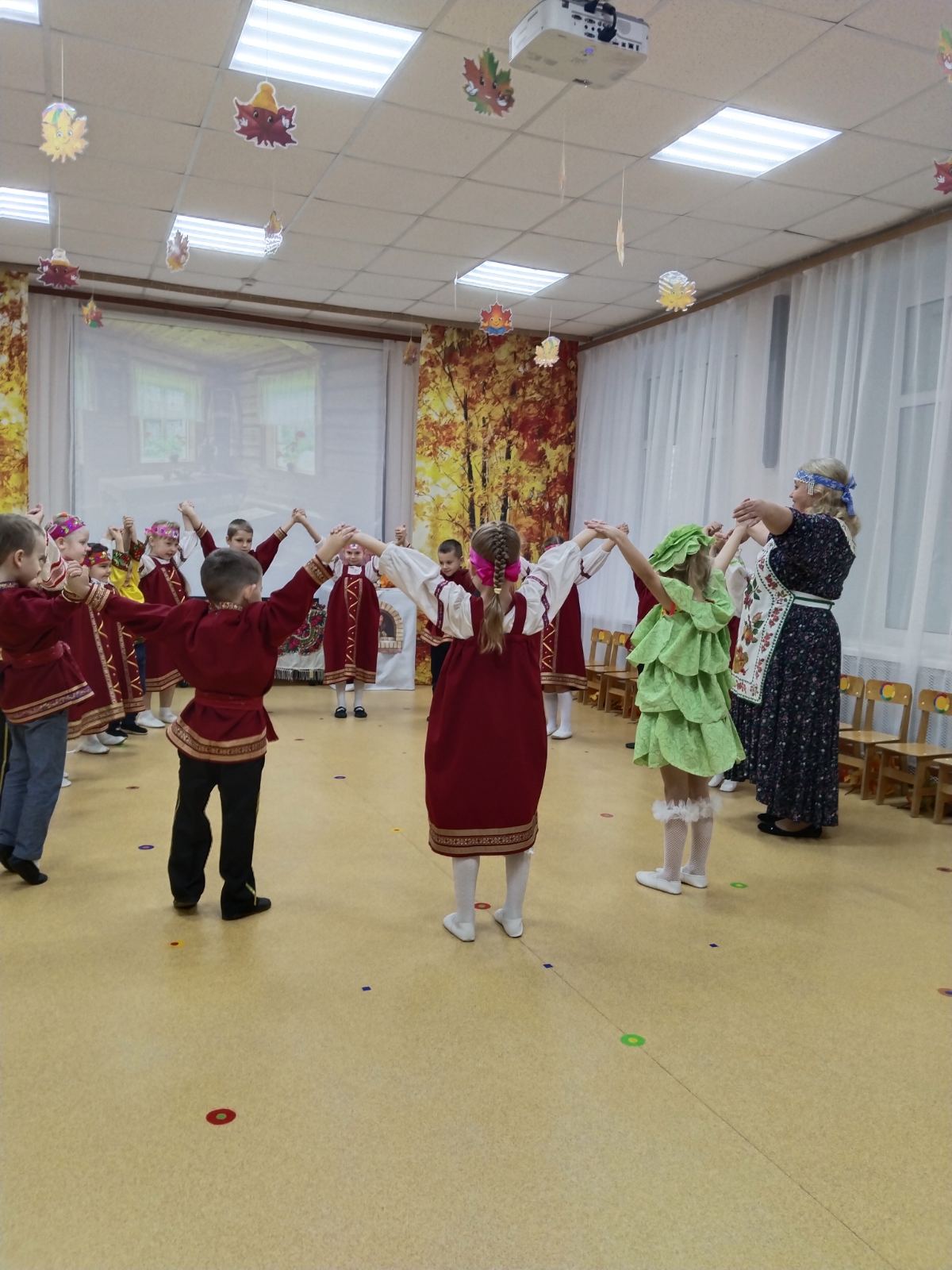 На наши «Капустные посиделки» в гости пришла красавица Осень. Дети водили хороводы, читали стихи, пели песни, все вместе играли в веселые игры: «Плетень», «Яша», "Веселая капуста". Как всегда, Осень была очень щедра и за хорошее настроение, подаренное ребятами она всех угостила пирогами с капустой. Посиделки удались на славу!