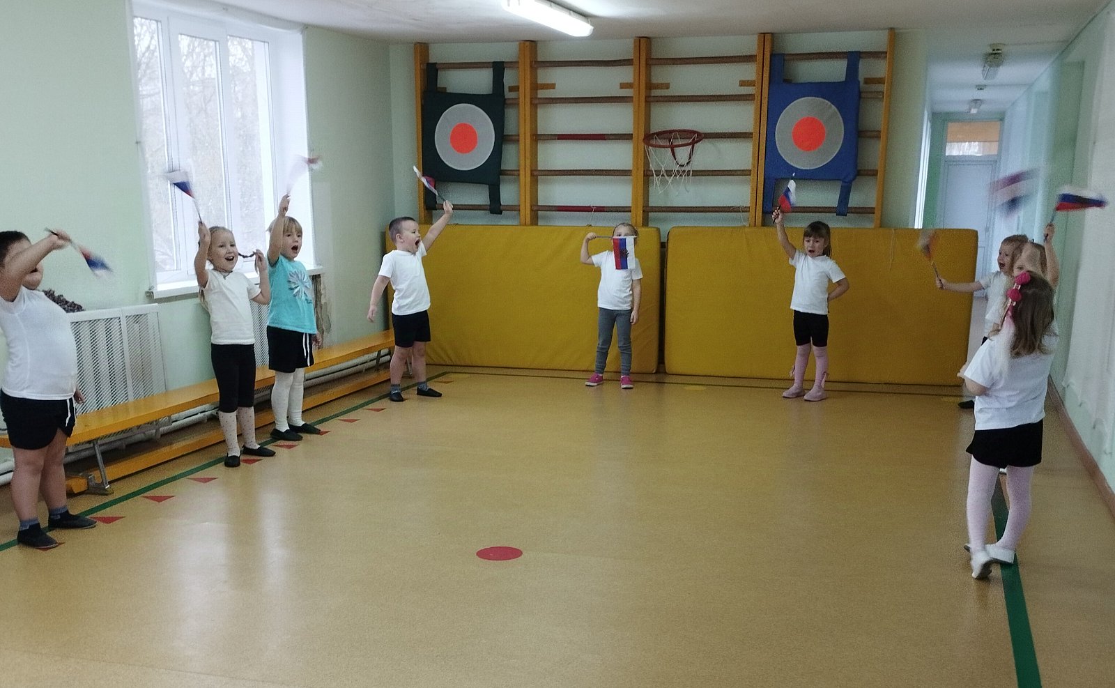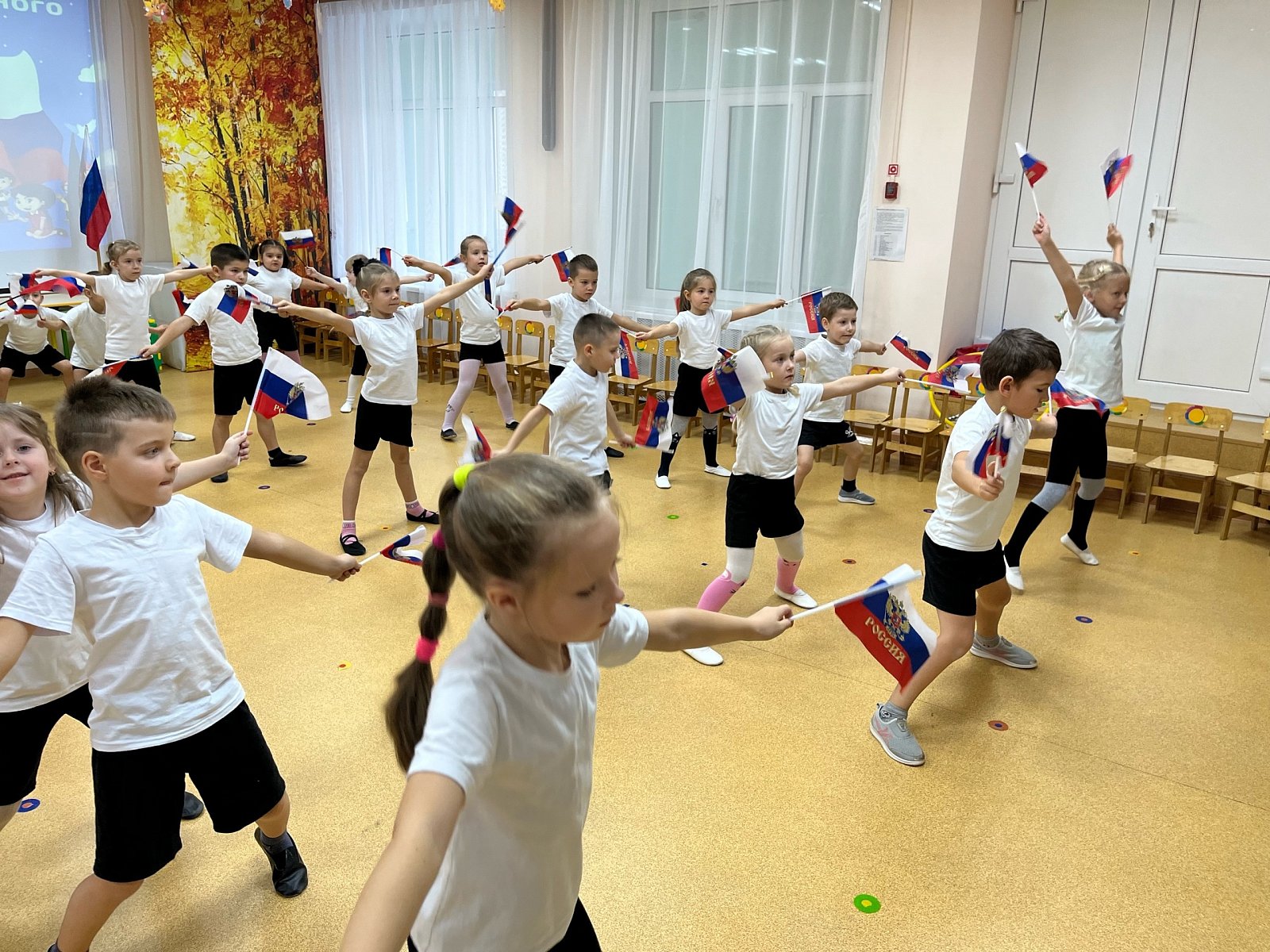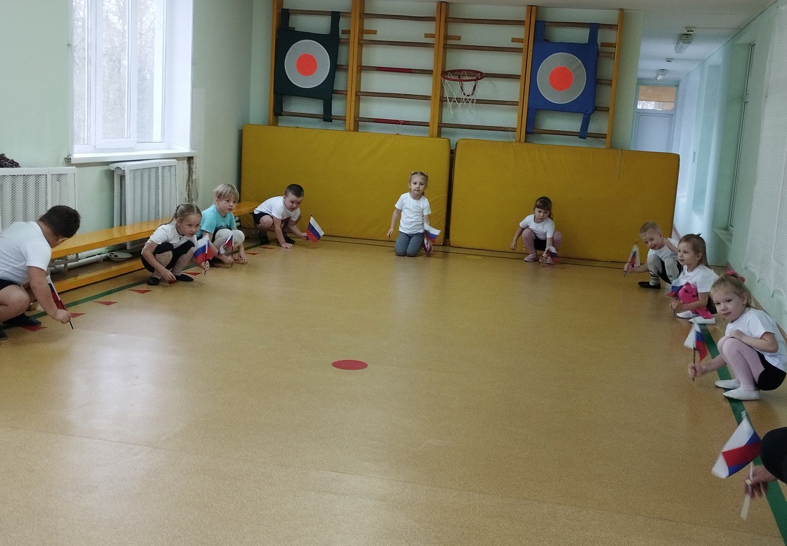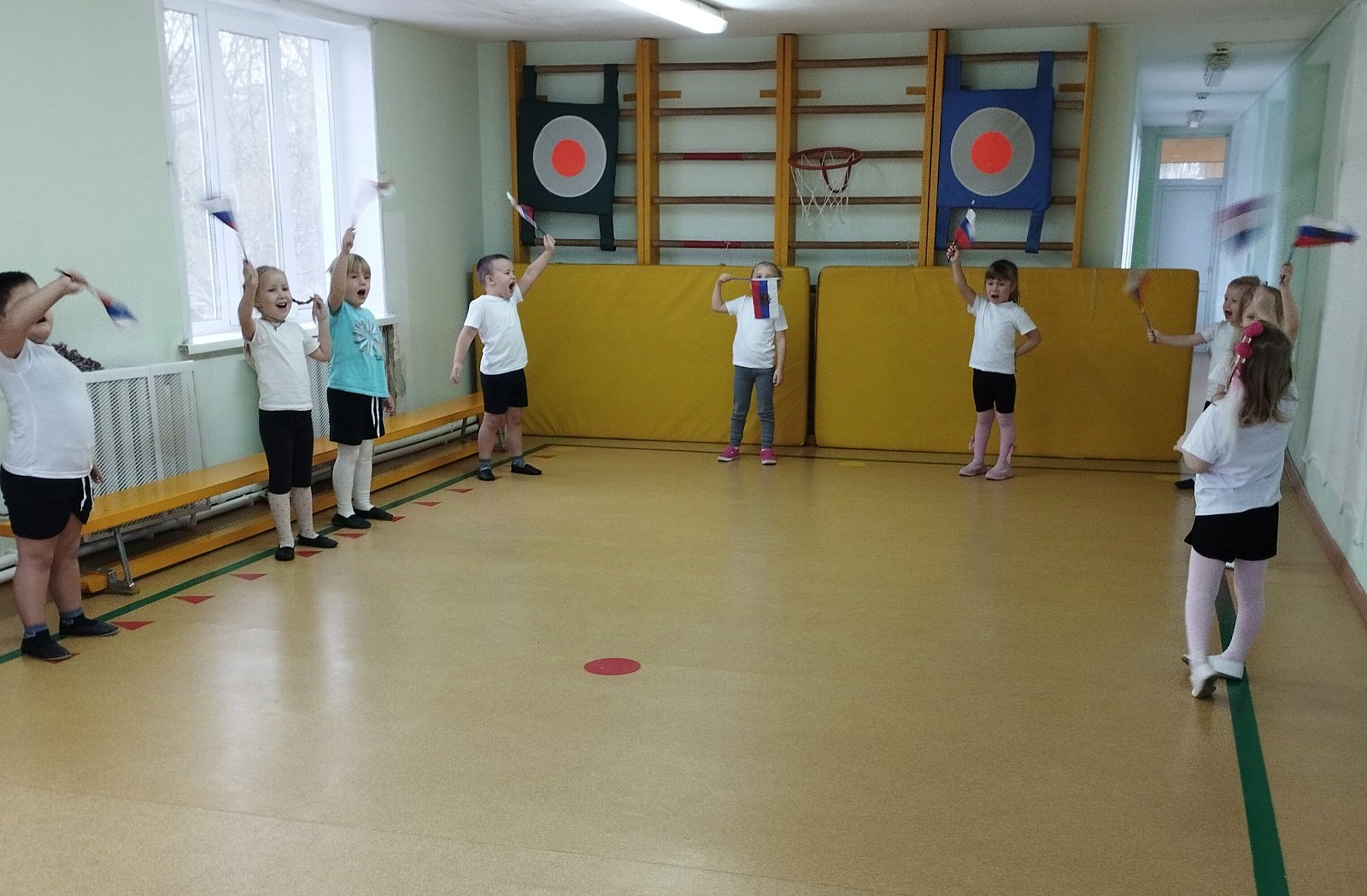 Разминка «Вместе весело шагать» открыла праздник, вместе с воспитателями Ларьковой О.Ю. , Миловановой Т.Н. , музыкальным руководителем Алексеевой Я.В. и инструктором по физической культуре Карповой Е.А., выполняли упражнения. Воспитанники дружно поддерживали друг друга. В «Перетягивании каната» командам не было равных, каждый хотел победить соперника и выиграть. Игра «Собери флаг» показала, что воспитанники детского сада знакомы с символикой нашей страны, хорошо знают цвета флага своей Родины.
