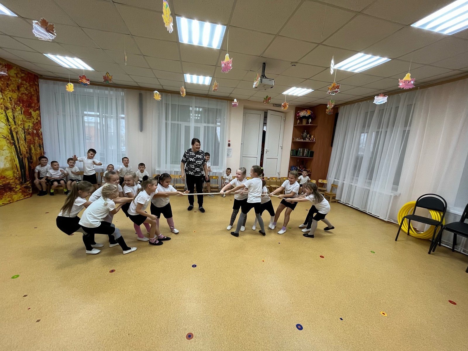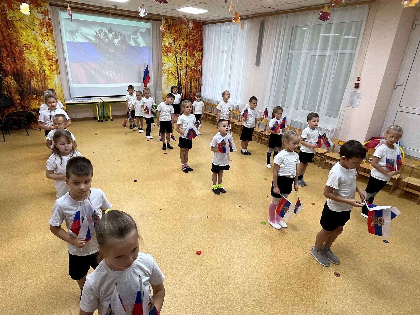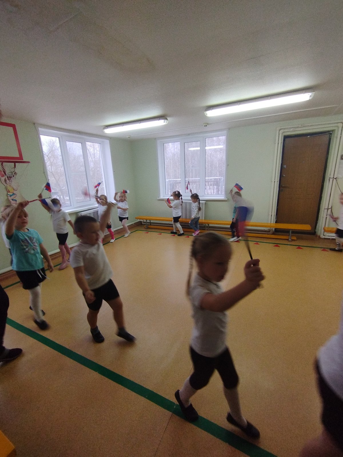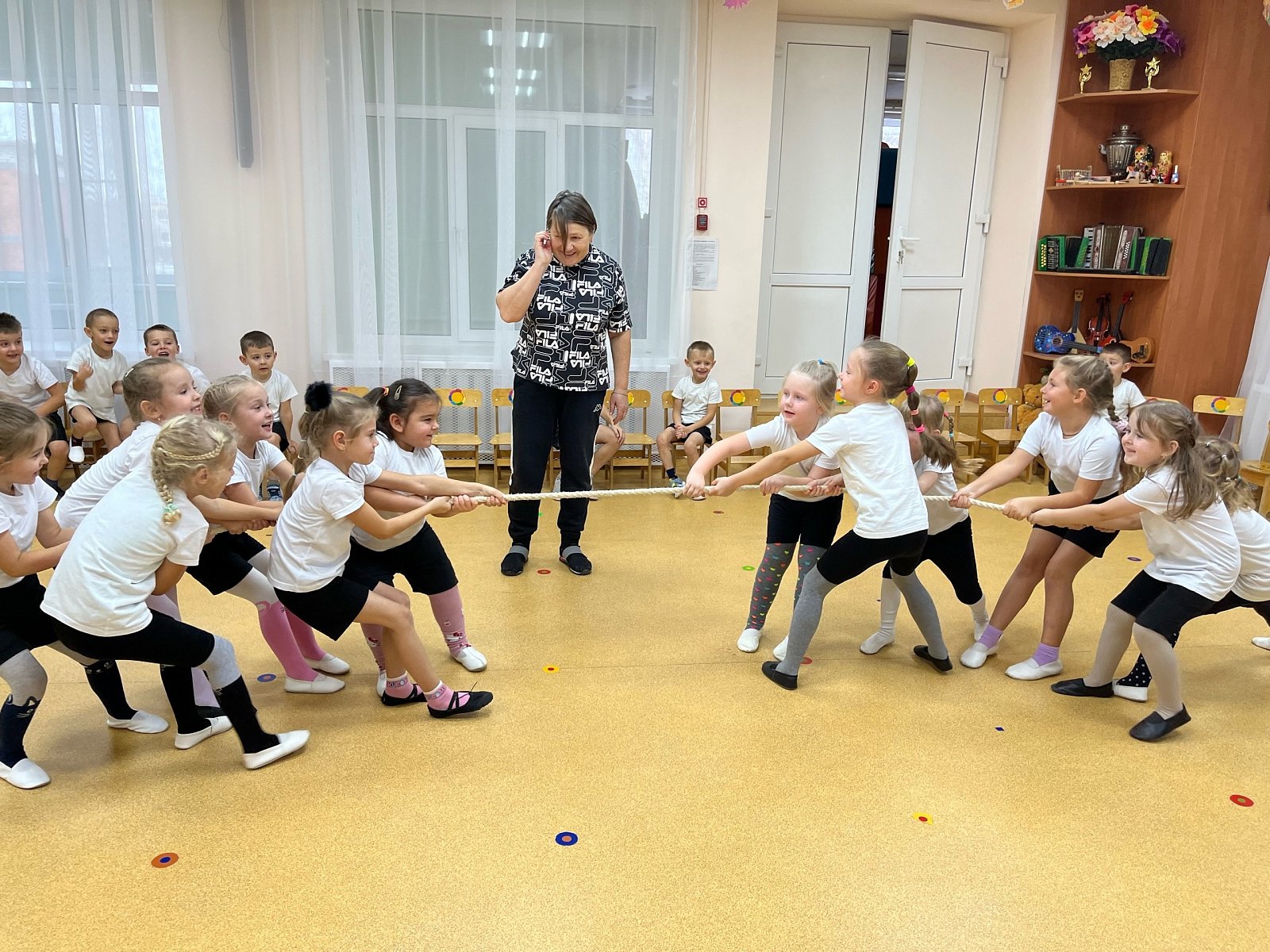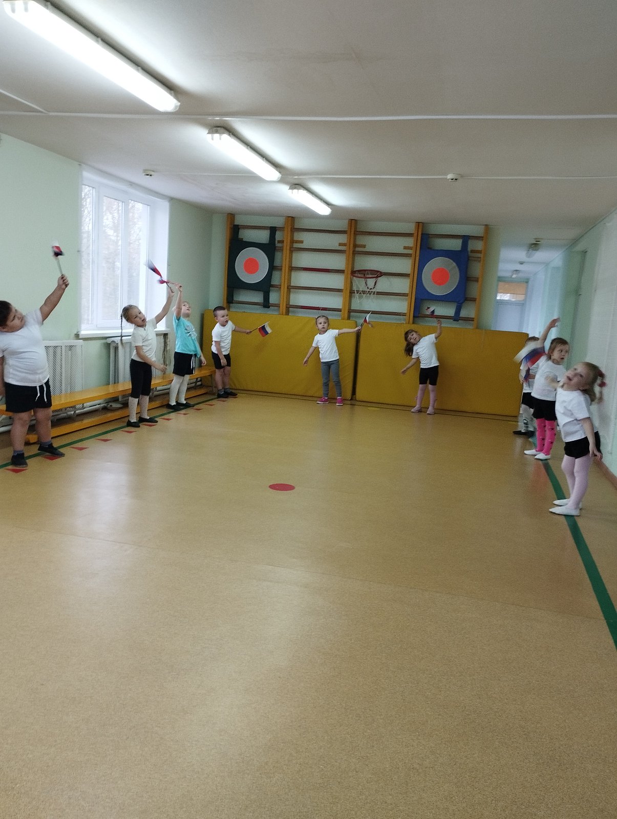 Разминка «Вместе весело шагать» открыла праздник, вместе с воспитателями Ларьковой О.Ю. , Миловановой Т.Н. , музыкальным руководителем Алексеевой Я.В. и инструктором по физической культуре Карповой Е.А., выполняли упражнения. Воспитанники дружно поддерживали друг друга. В «Перетягивании каната» командам не было равных, каждый хотел победить соперника и выиграть. Игра «Собери флаг» показала, что воспитанники детского сада знакомы с символикой нашей страны, хорошо знают цвета флага своей Родины.