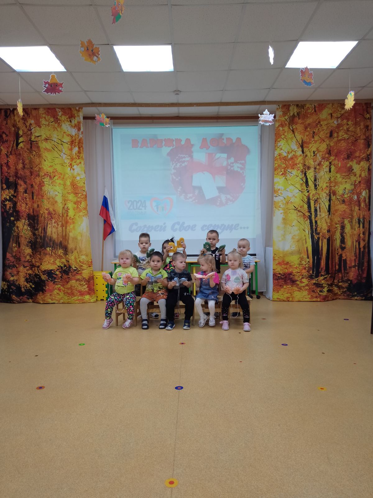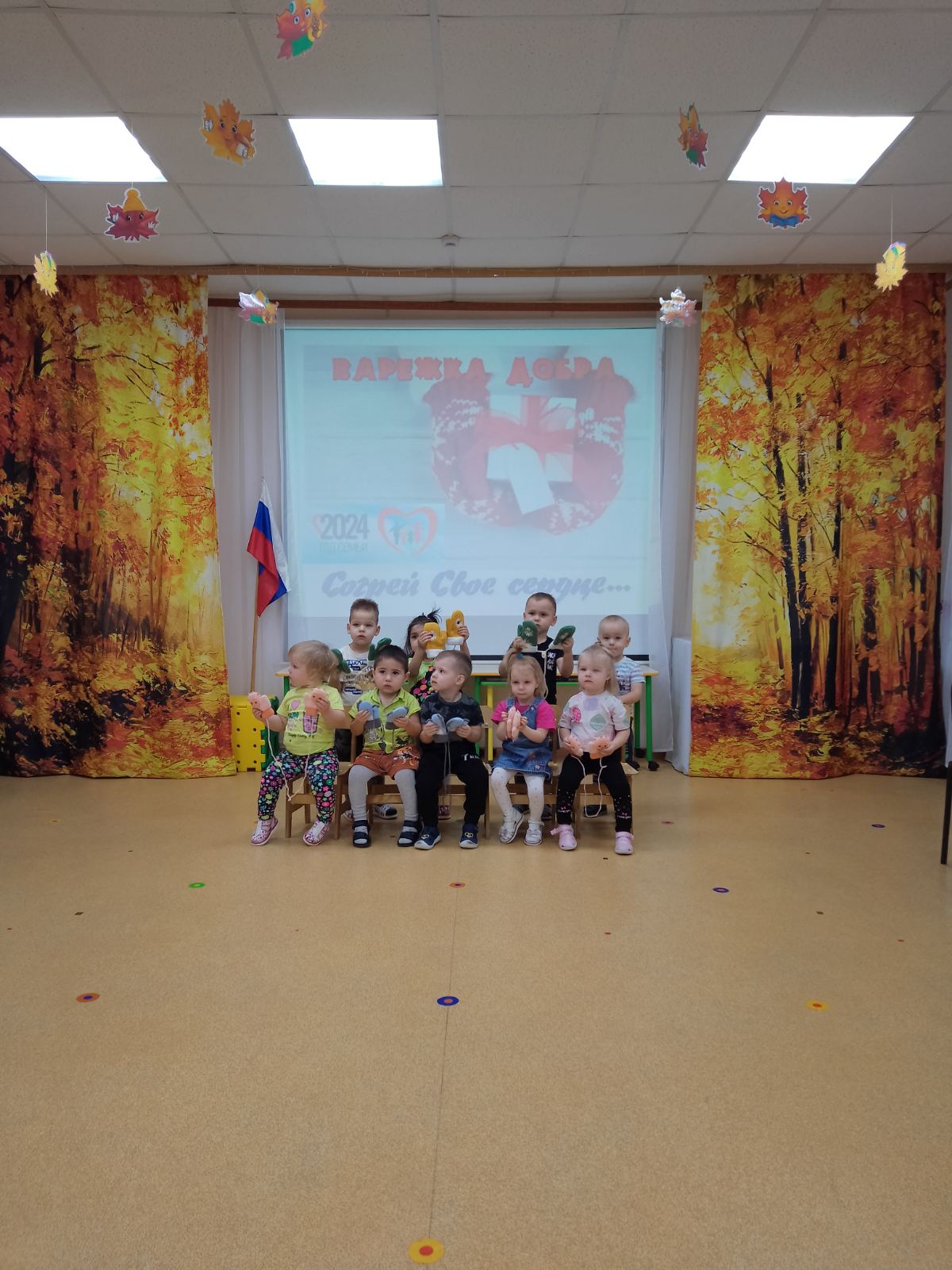 "Веселые рукавички" . Сегодня воспитанники первой младшей группы совместно с воспитателем Унжиной З.В. приняли участие в акция : "Рукавички для малышей."