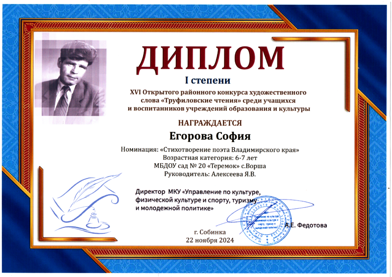 Впервые в этом серьёзном районном мероприятии принимала участие воспитанница нашего детского сада Егорова София( руководитель : Алексеева Яна Витальевна).