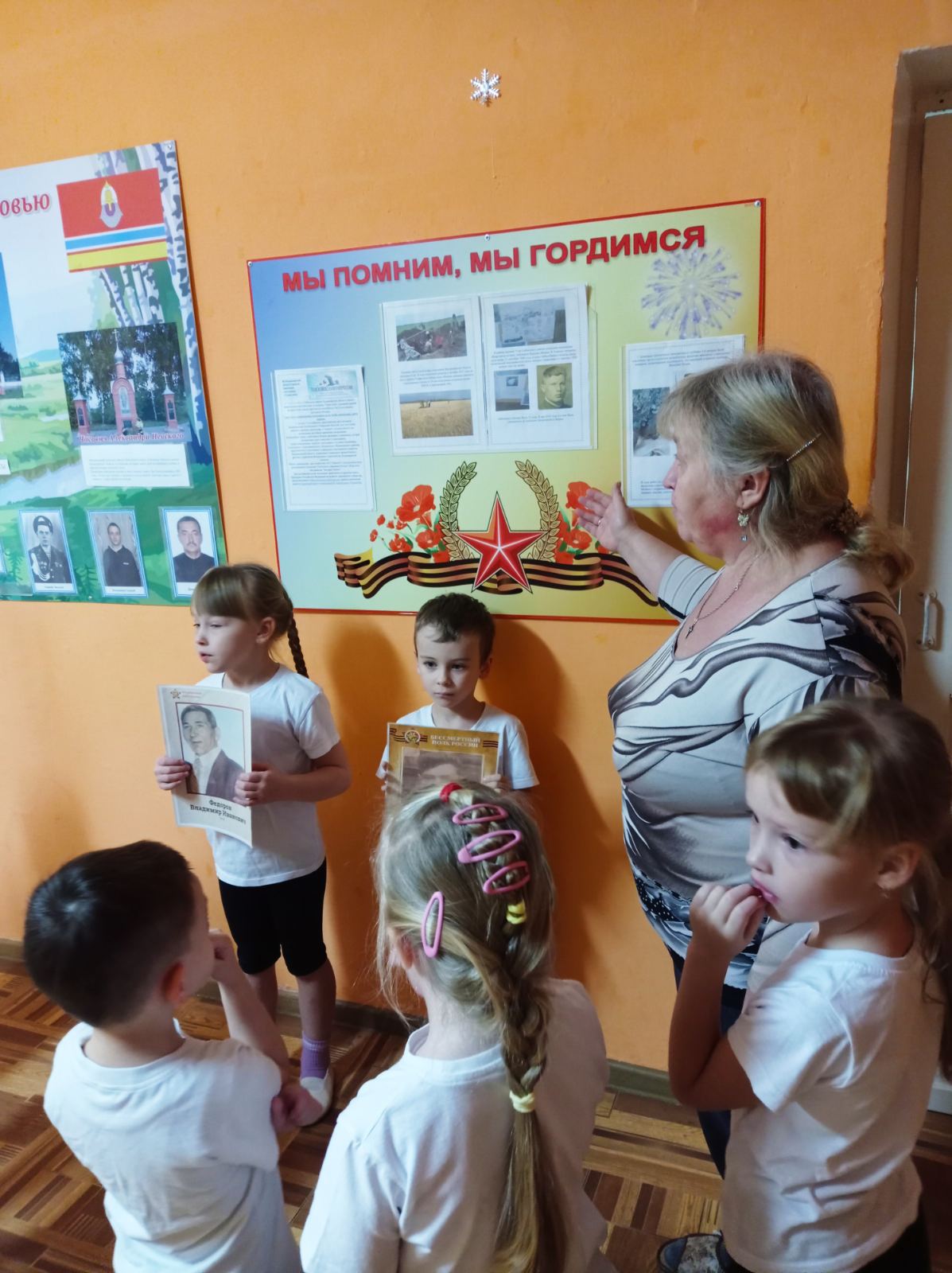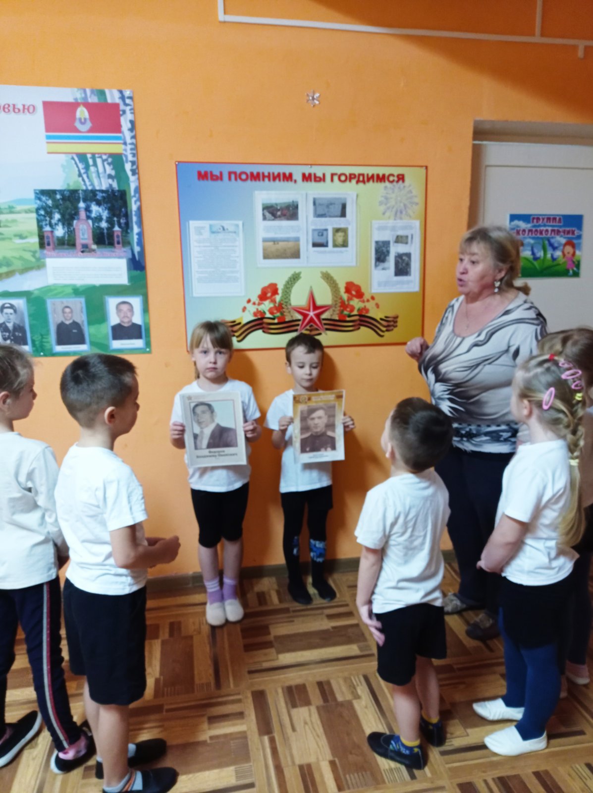 Воспитатель Ларькова О.Ю. рассказала, что День Героев Отечества отмечается ежегодно 9 декабря в честь людей, проявивших мужество, отвагу и самоотверженность во благо Родины, рассказала о видах звания «Герой»: Герой Российской Федерации, Герой Советского Союза, за какие заслуги присуждается каждое из этих высоких званий. Воспитанники узнали, что героями становятся не только военные, но и люди других профессий, проявившие исключительный героизм и самоотверженность в разных сферах жизни: космонавты, полярники, учёные, врачи, спасатели.