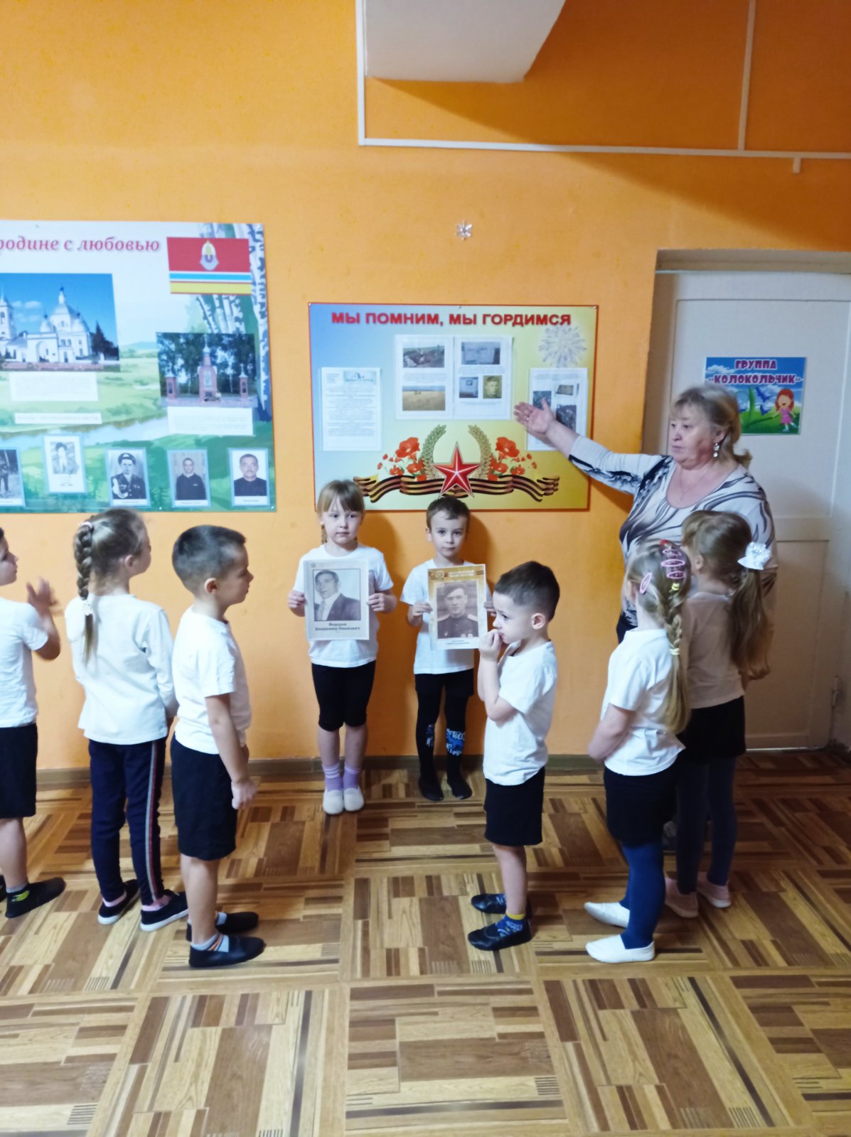 Во время занятия использовались иллюстрации и фотографии героев разных лет, родного края , воспитанники с увлечением слушали рассказ о подвигах героев, узнавая об их мужестве, силе духа и преданности Родине.