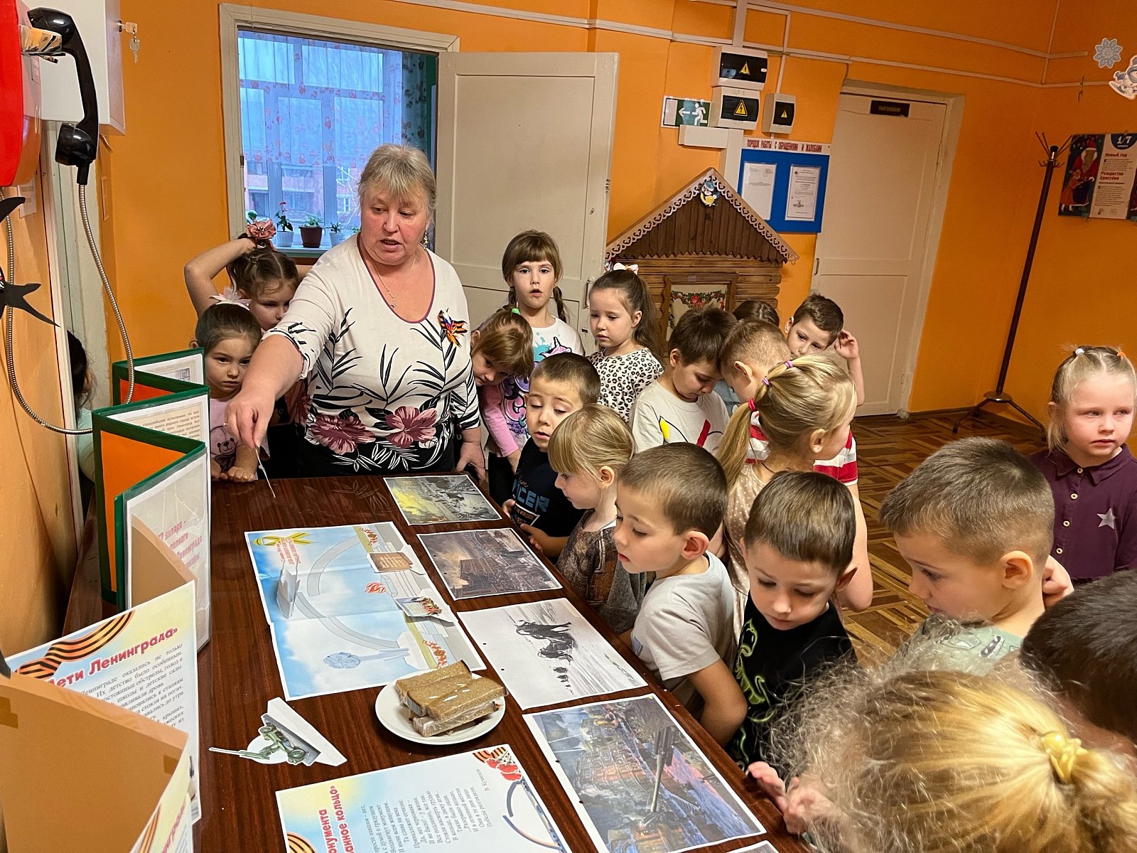 Воспитатели говорили о хлебе, о его роли в жизни жителей блокадного города. Воспитанники увидели кусочек хлеба, который на протяжении многих блокадных дней оставался для человека единственным источником жизни и надежды.