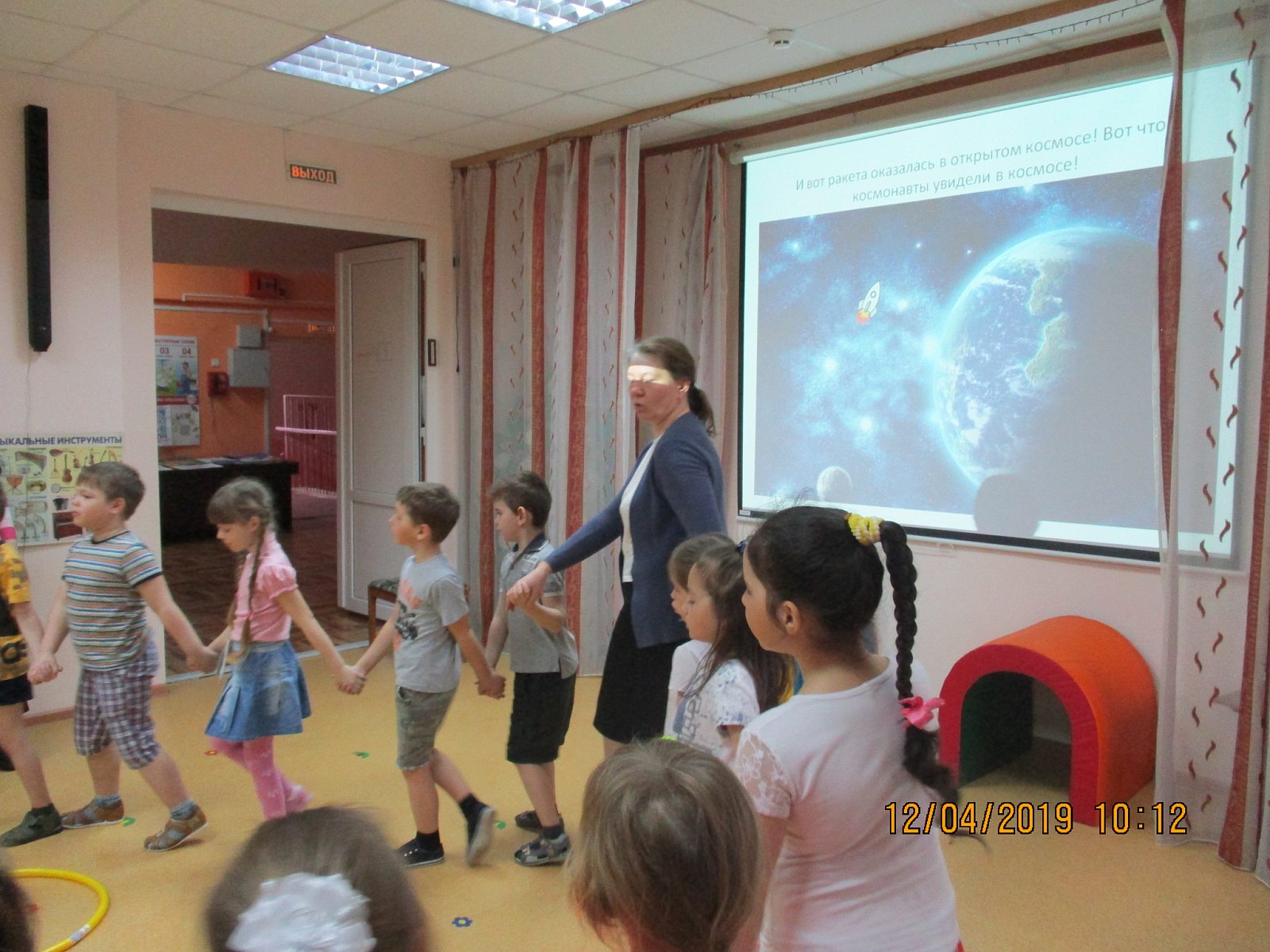 12 апреля в детском саду прошел праздник "Космонавтом стать хочу, скоро в космос полечу".Дошкольники побывали в сенсерной комнате, где любовались звездным небом. Посетили выставку плакатов, которую организовали родители детей и побывали на тематическом развлечении