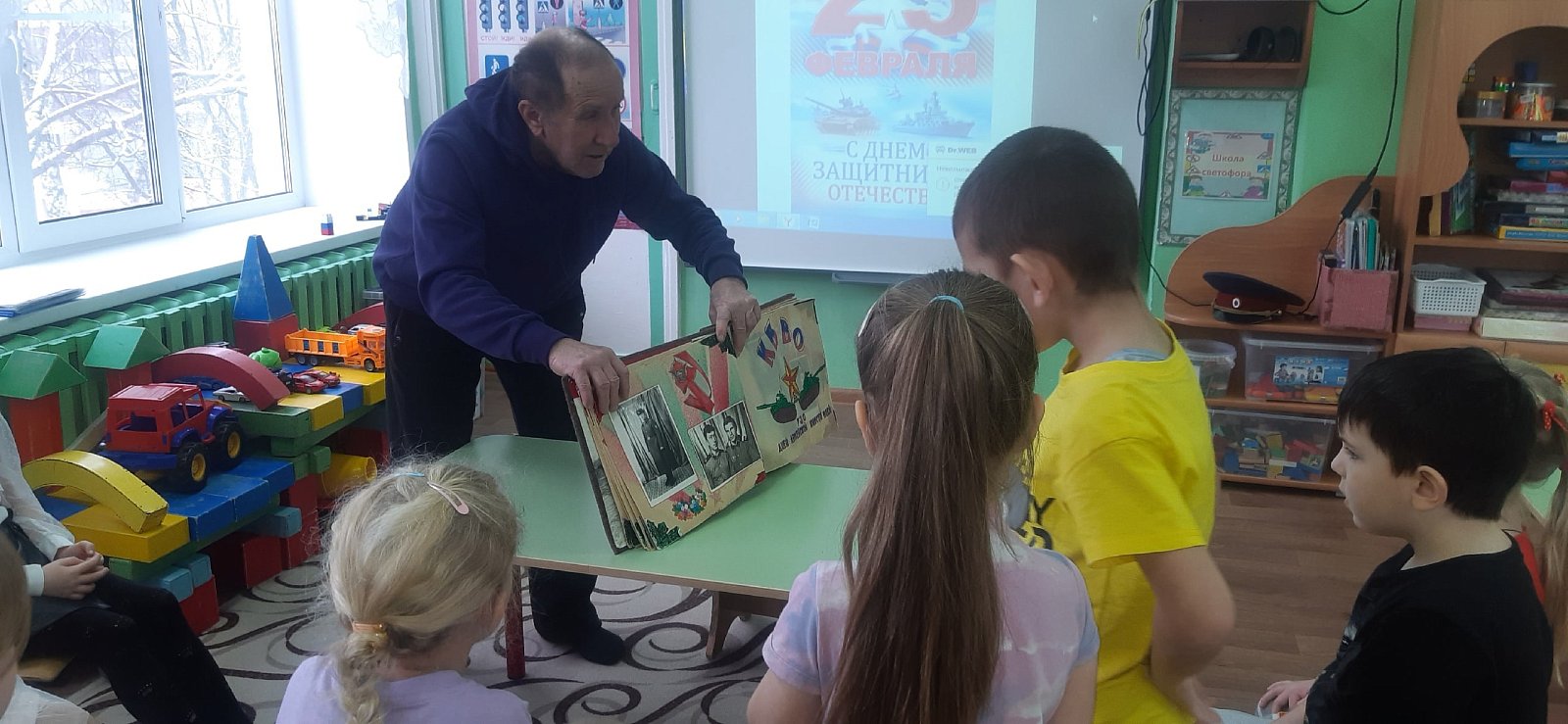 В преддверии праздника 23 февраля - Дня защитника Отечества - с целью патриотического воспитания подрастающего поколения группу компенсирующей направленности посетил гость группы Смирнов Владимир Николаевич, дедушка воспитанника группы Леднева Всеволода. Владимир Николаевич рассказал ребятам о службе в Армии. Познакомил с названиями военной техники, дал первые представления о родах войск. Рассказал о важных личных качествах военного.
