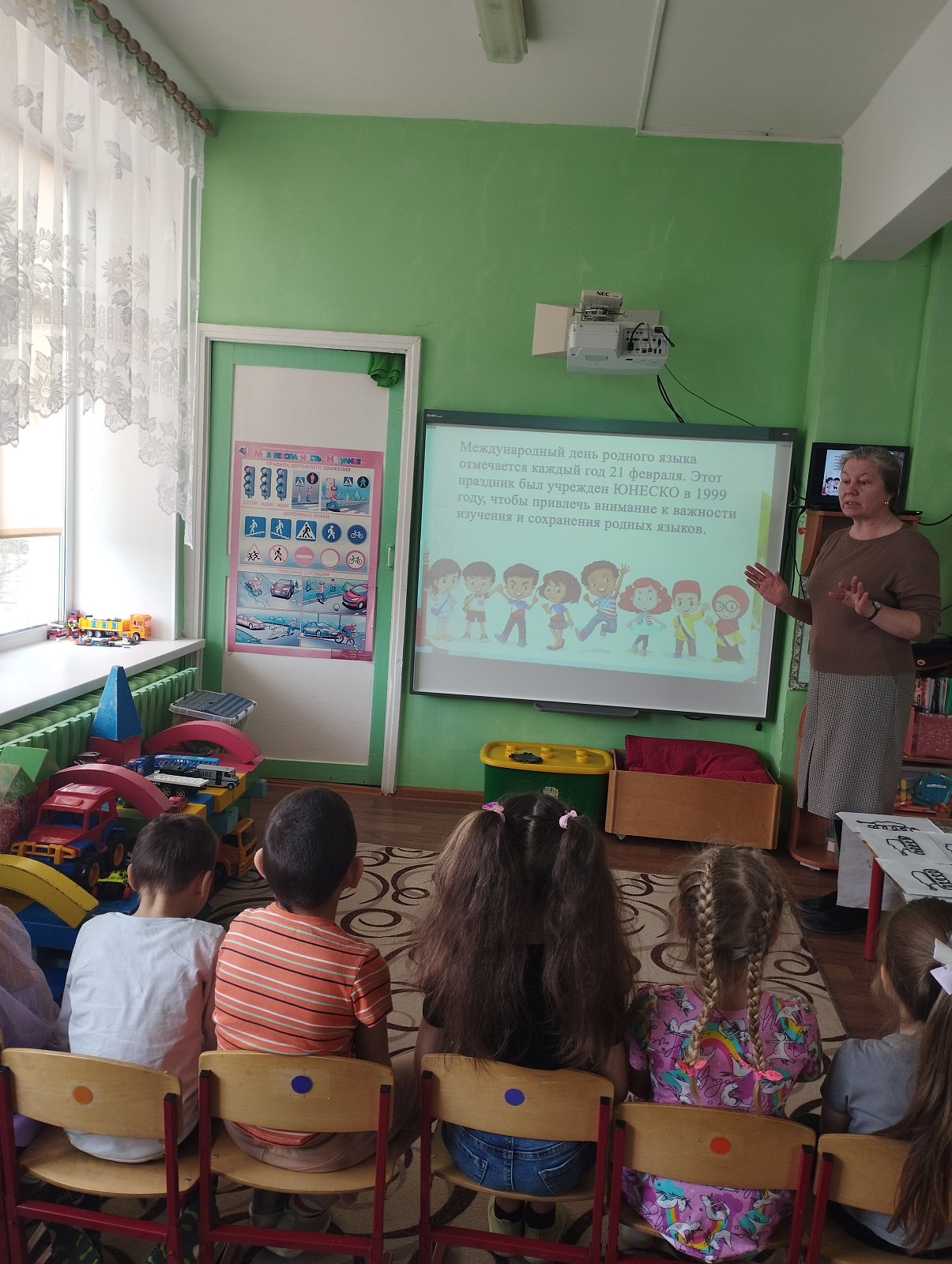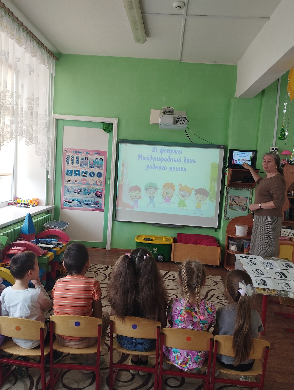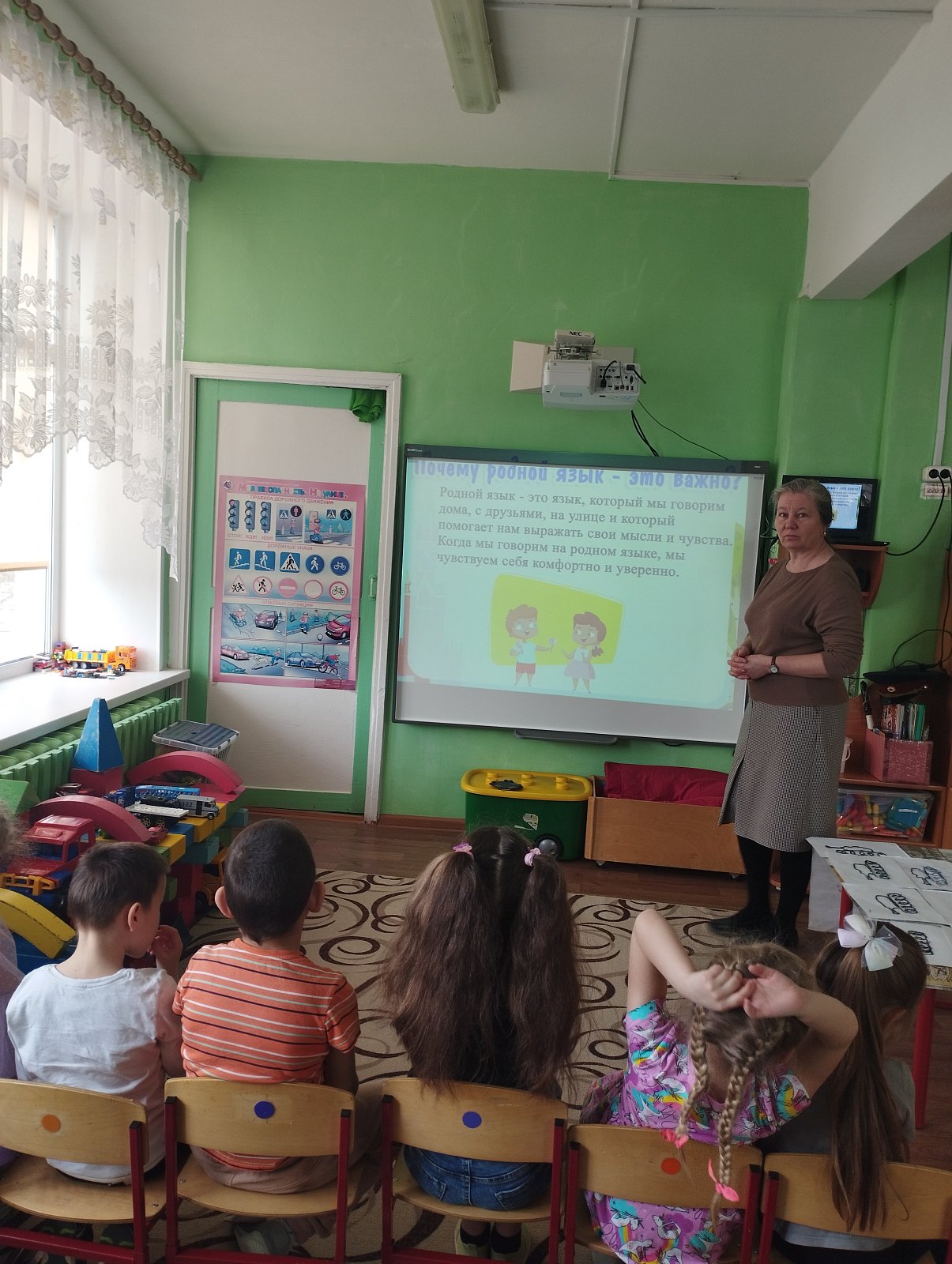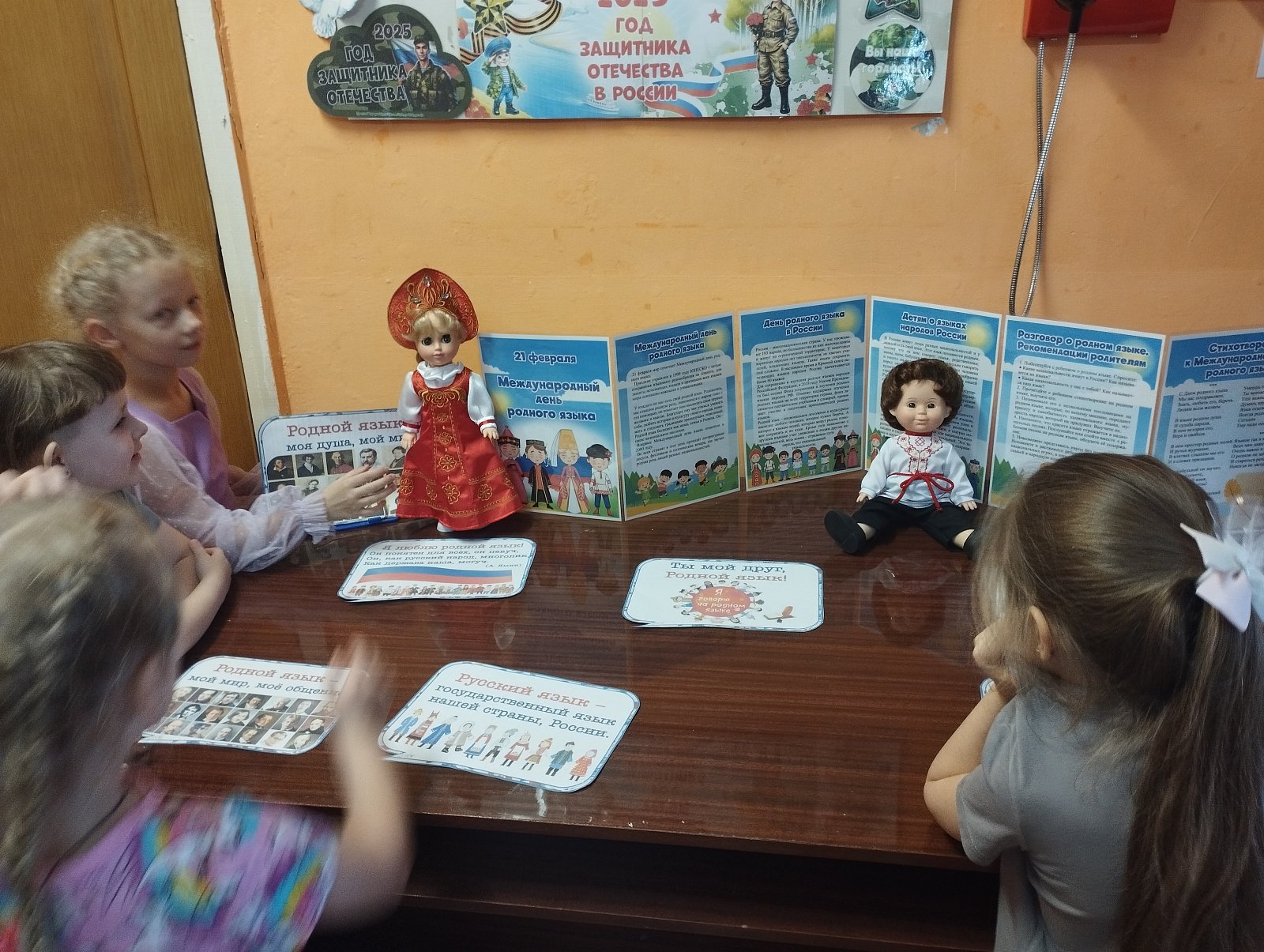 Воспитатель группы И.Н. Простякова рассказала воспитанникам о том, что у каждого народа есть свои особенности, традиции, культура и язык, познакомила воспитанников с понятием «родной язык», объяснила, почему его называют родным, рассказала о значении родного языка в жизни каждого человека.
