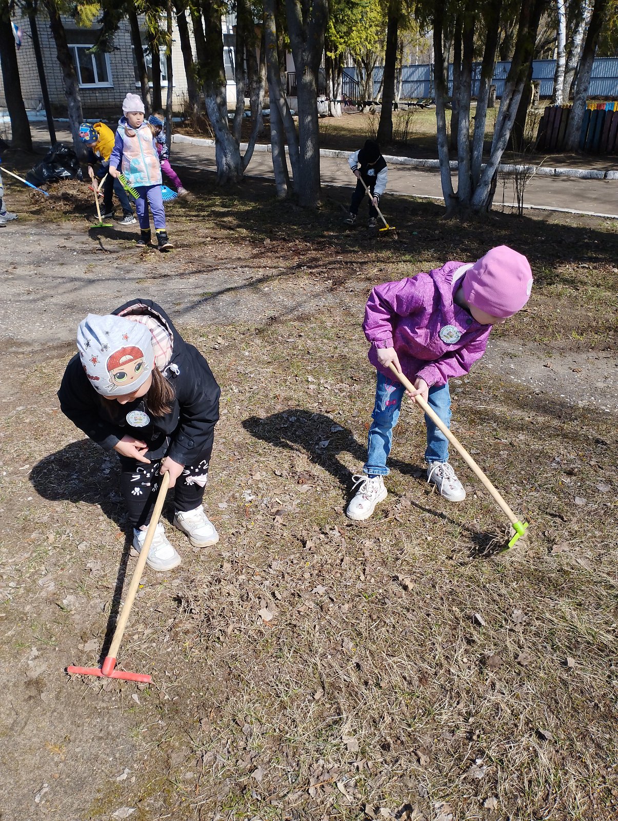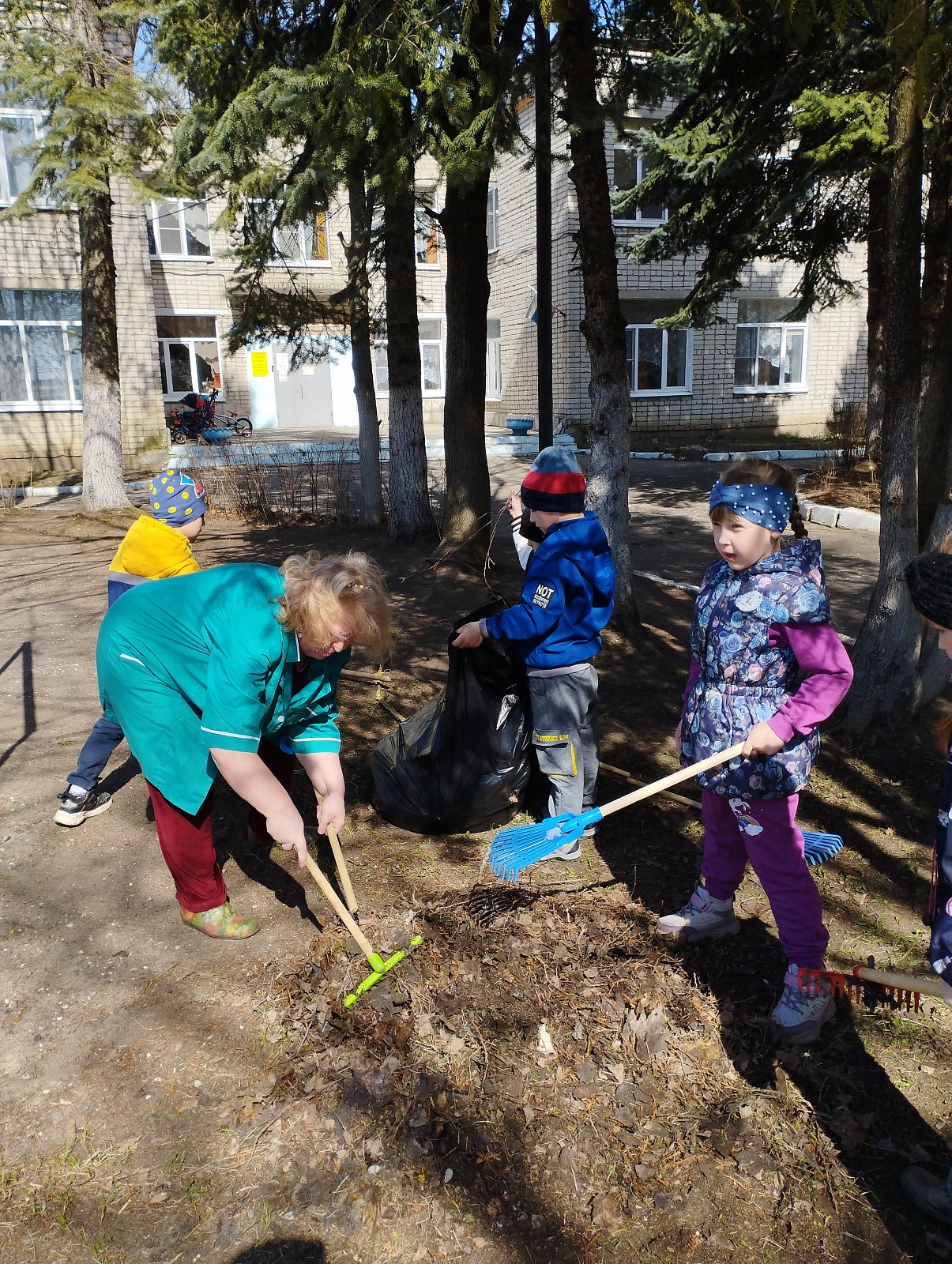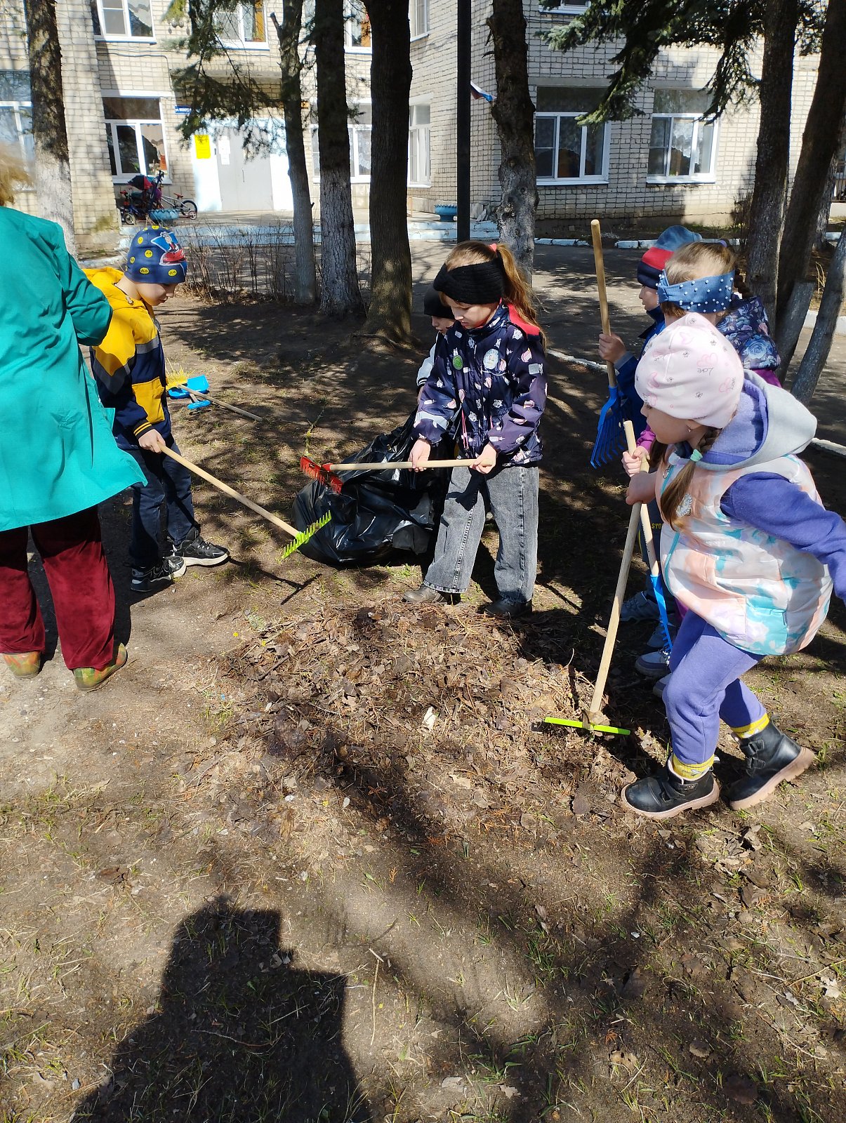 Сегодня воспитанники старшей группы "Колокольчик", совместно с воспитателем Ларьковой О.Ю., убрали территорию детского сада ( спортивную площадку).
