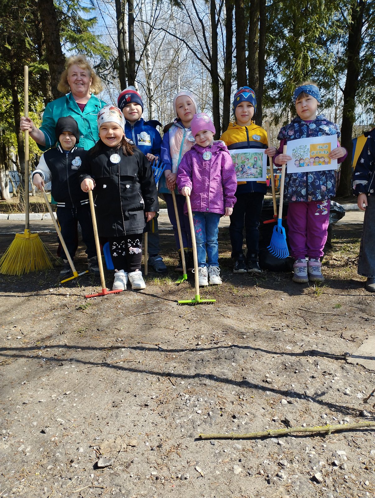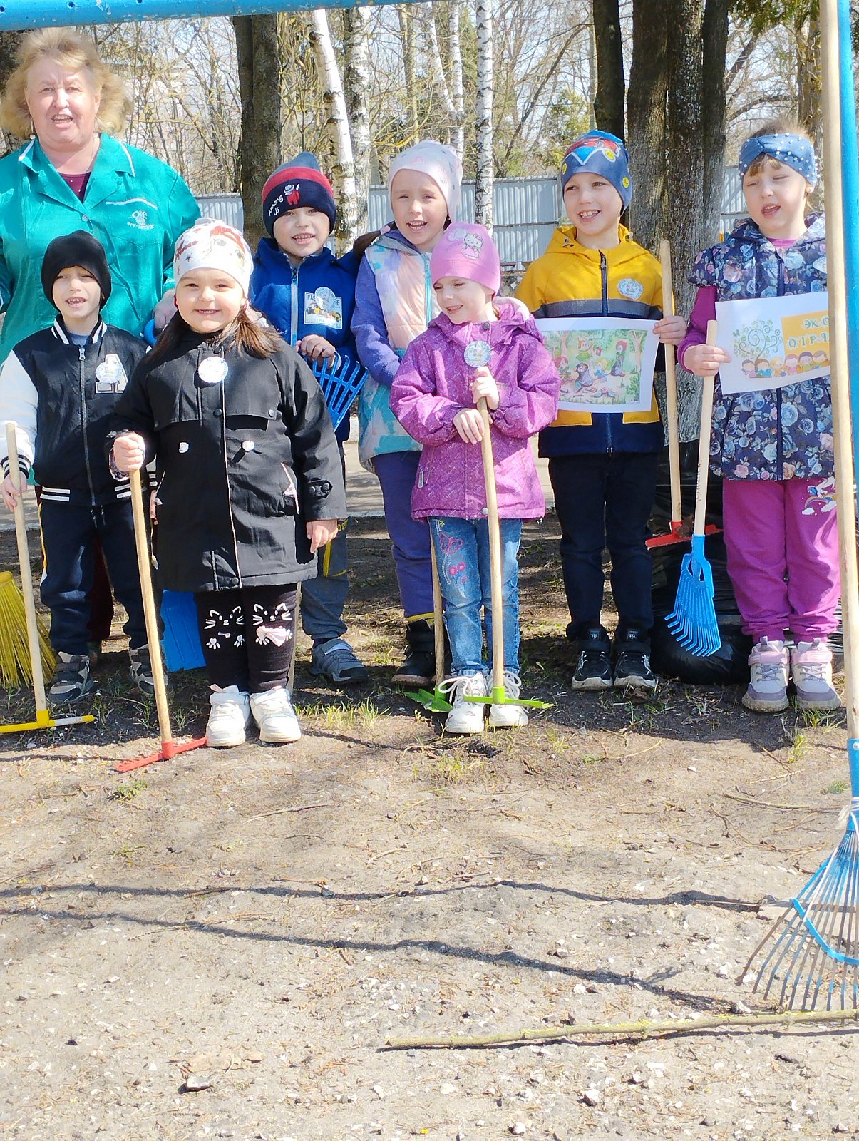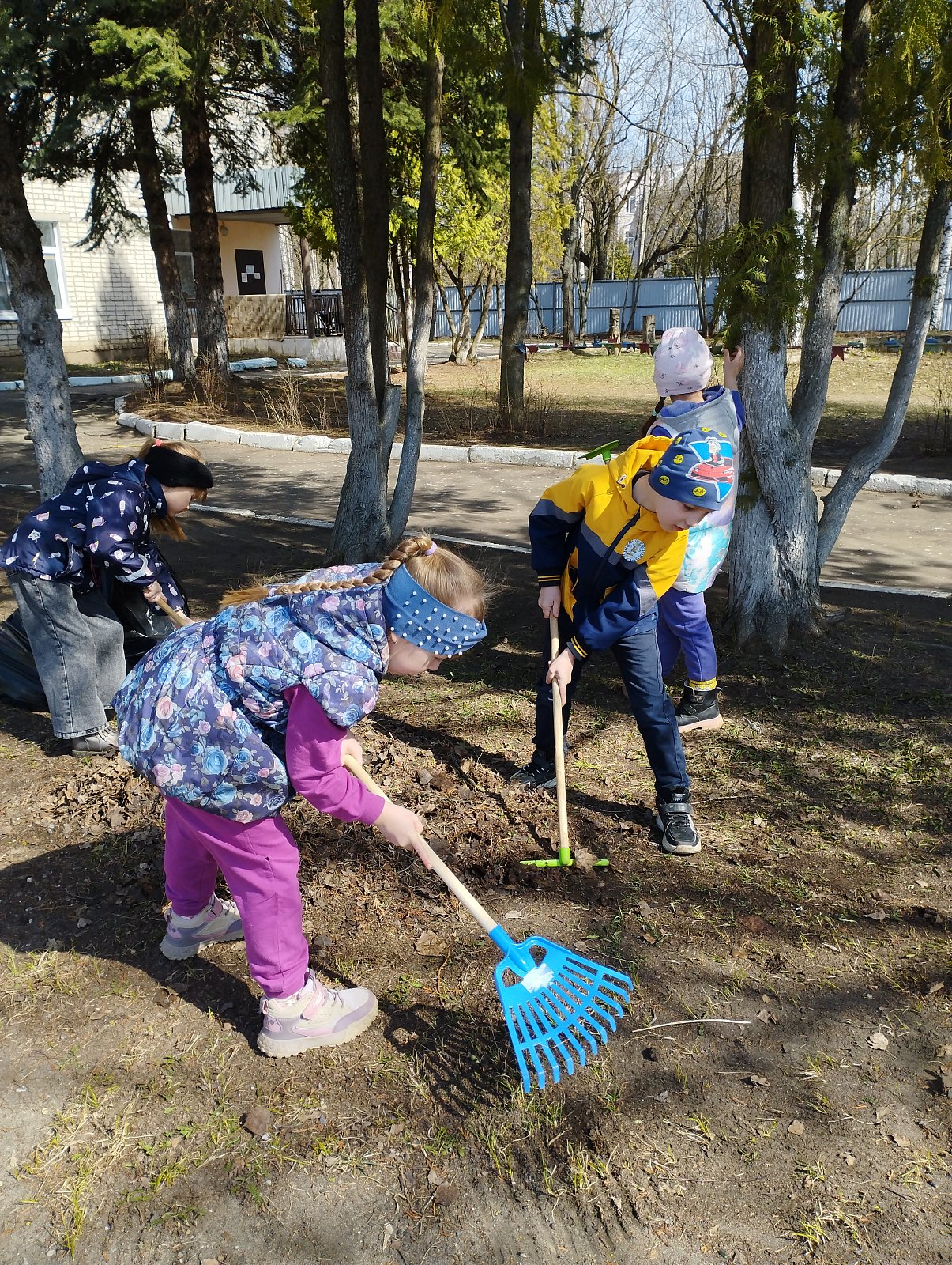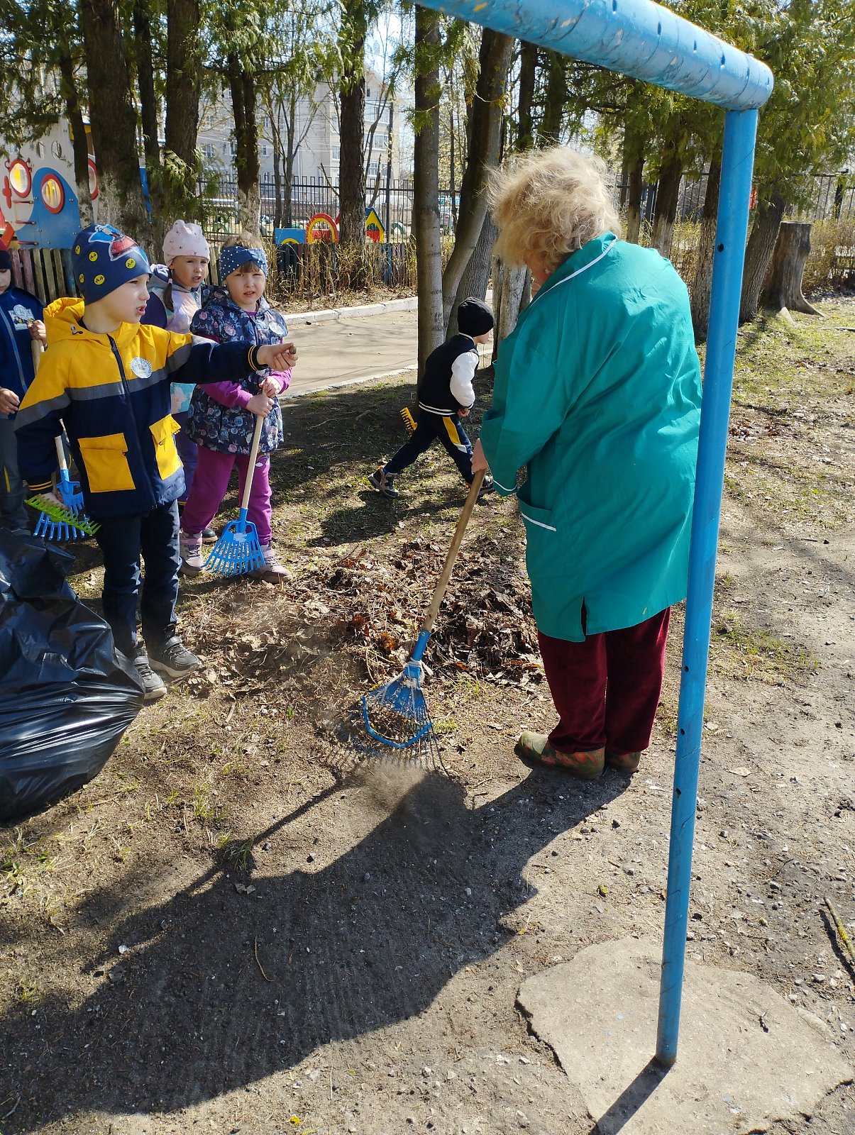 Сегодня воспитанники старшей группы "Колокольчик", совместно с воспитателем Ларьковой О.Ю., убрали территорию детского сада ( спортивную площадку).