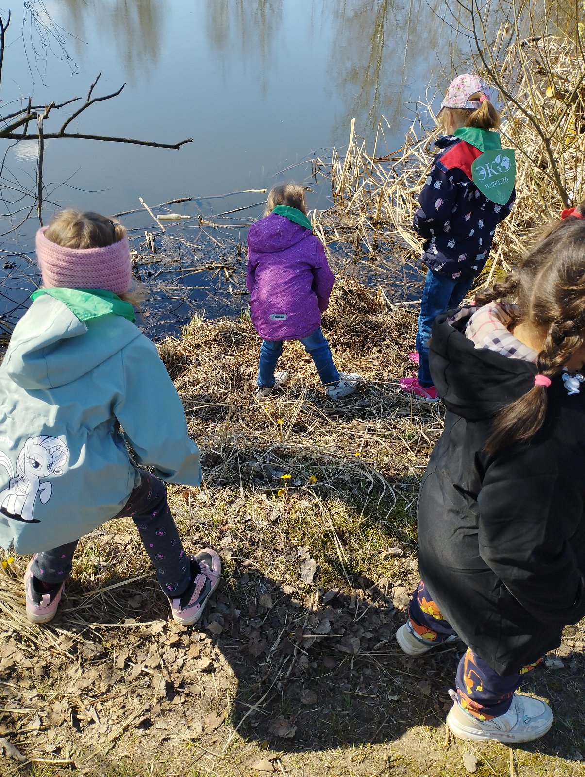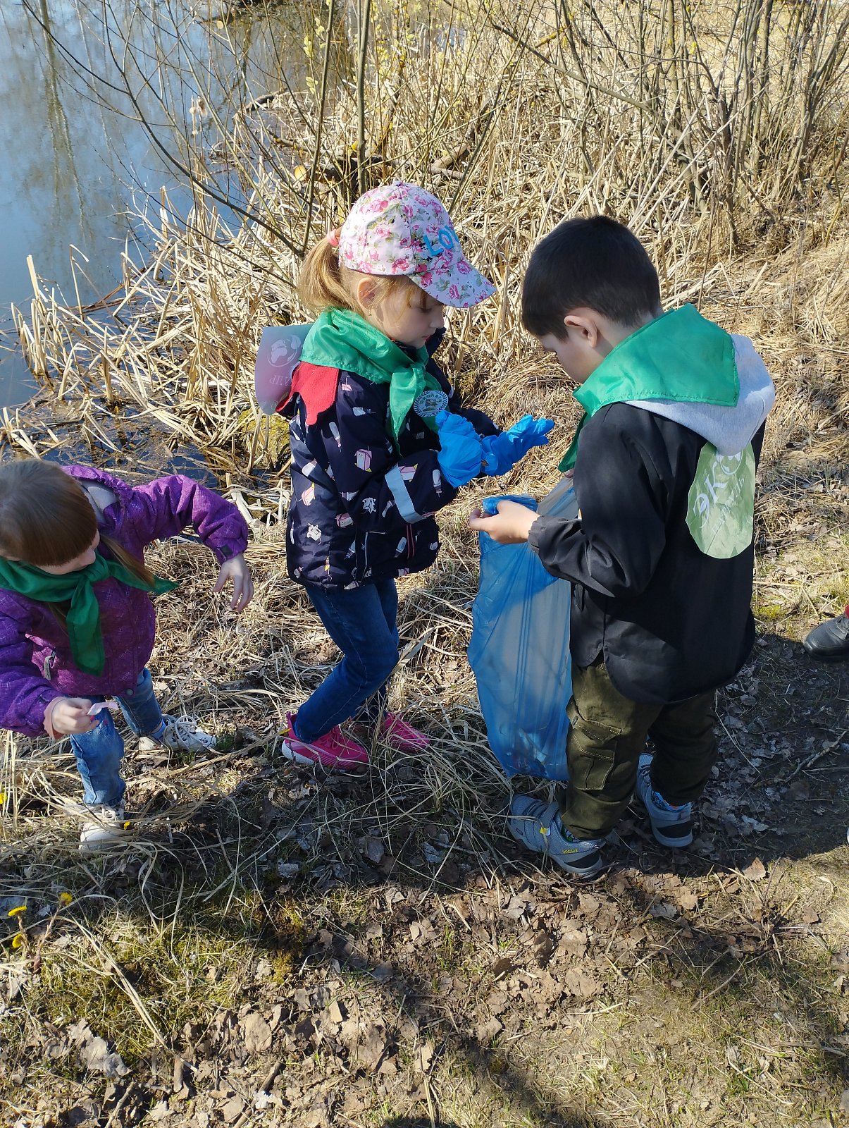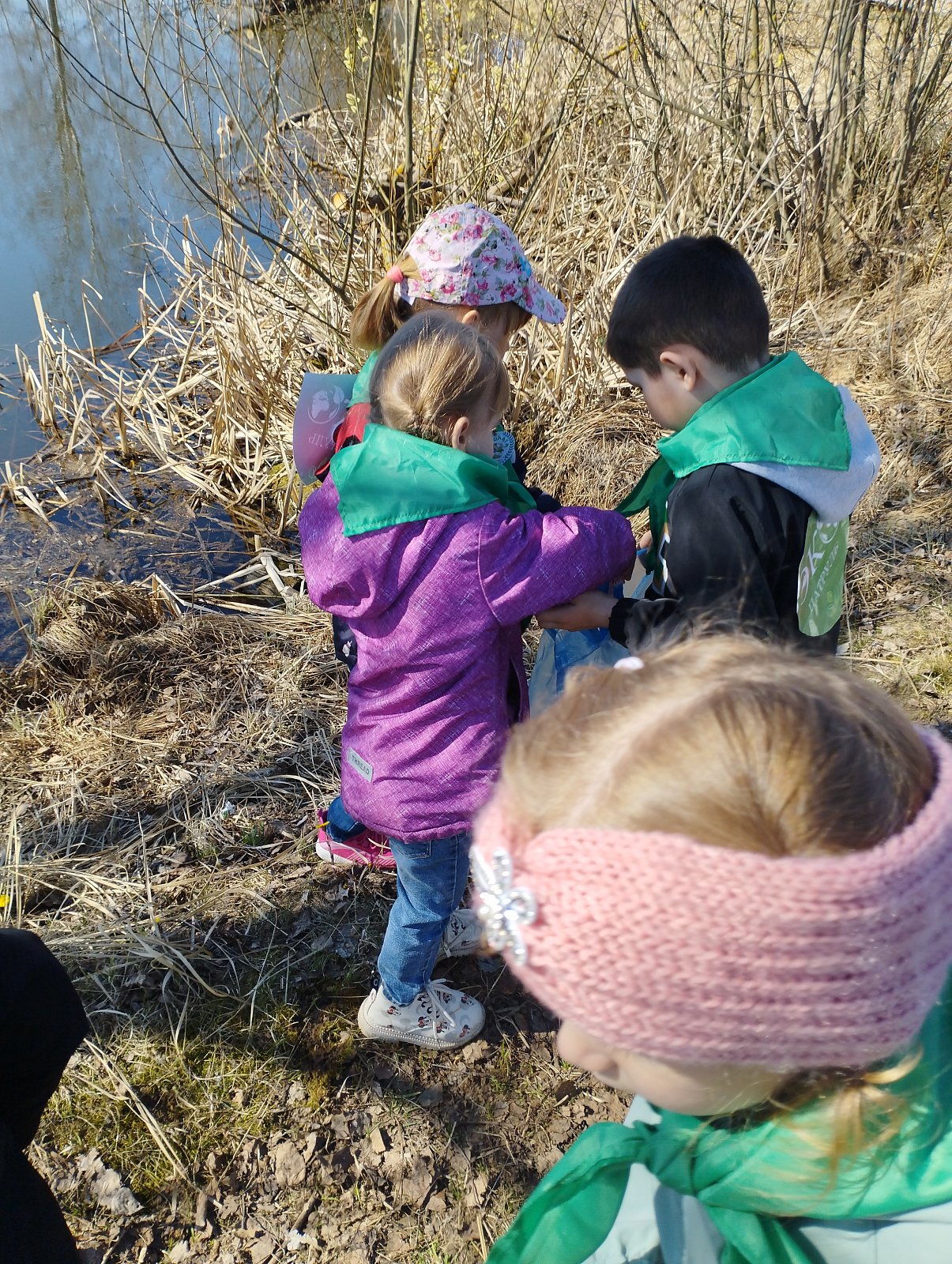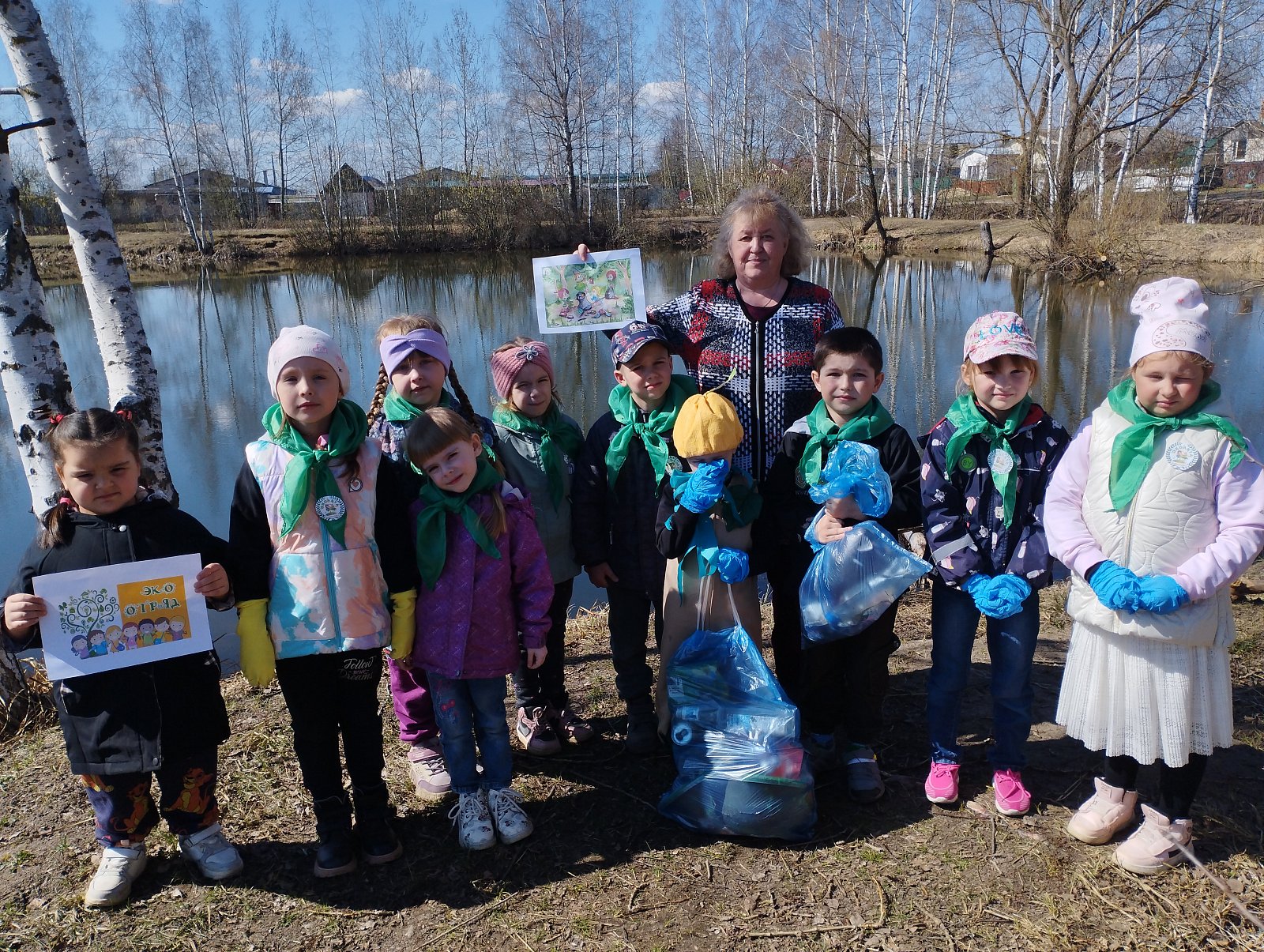 Воспитанники старшей группы «Колокольчик» приняли участие в экологической акции «Чистый берег» уборка вместе с Эколятами.