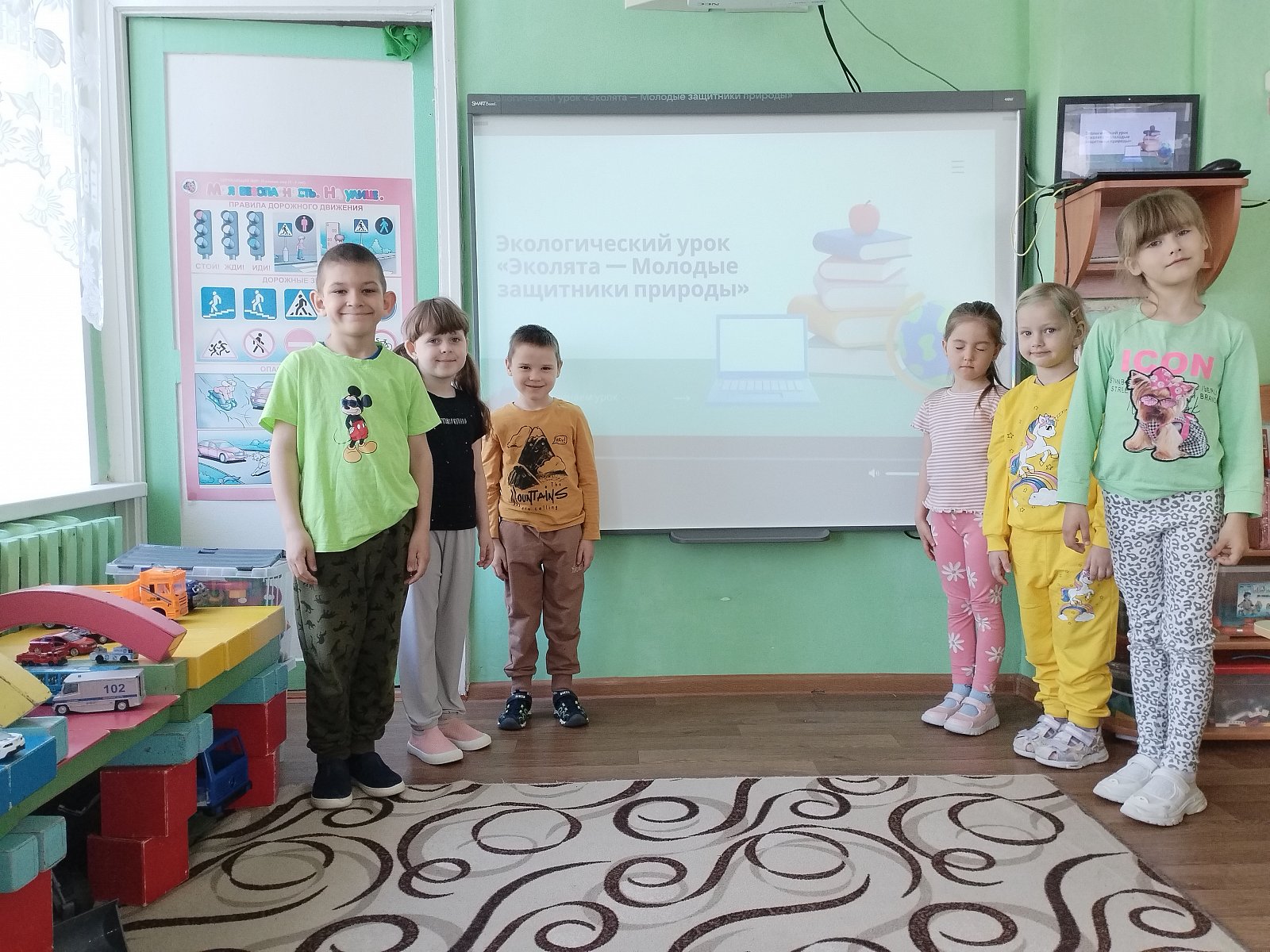 Сегодня в детском саду был организован урок "Эколята - молодые защитники природы", в нем приняли участие воспитанники группы ГКН "Весёлый язычок".