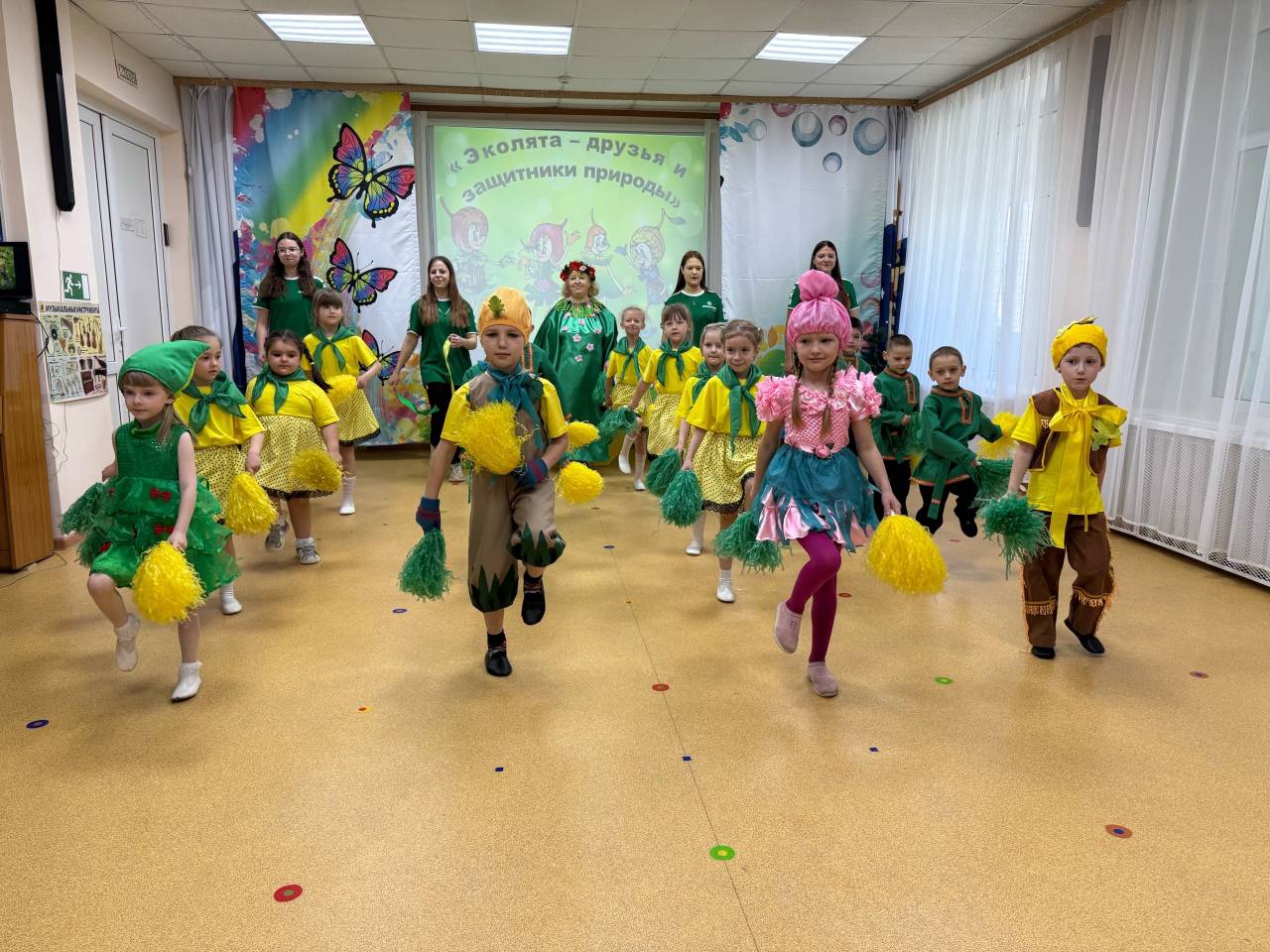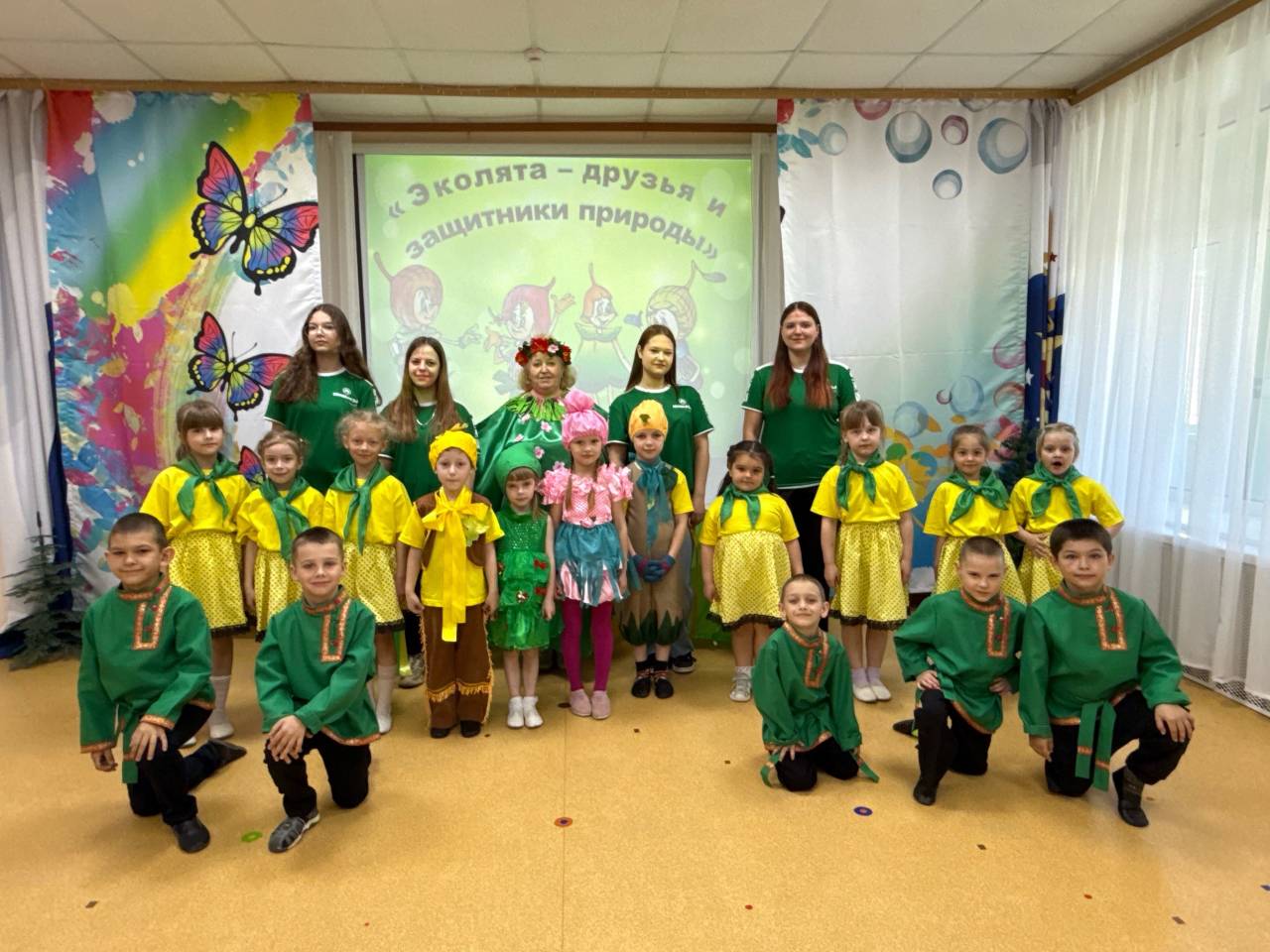 Сегодня воспитанники детского сада совместно с Юннатским отрядом школьного объединения Движения первых, приняли участие во флешмобе "Эколята - молодые защитники природы".
