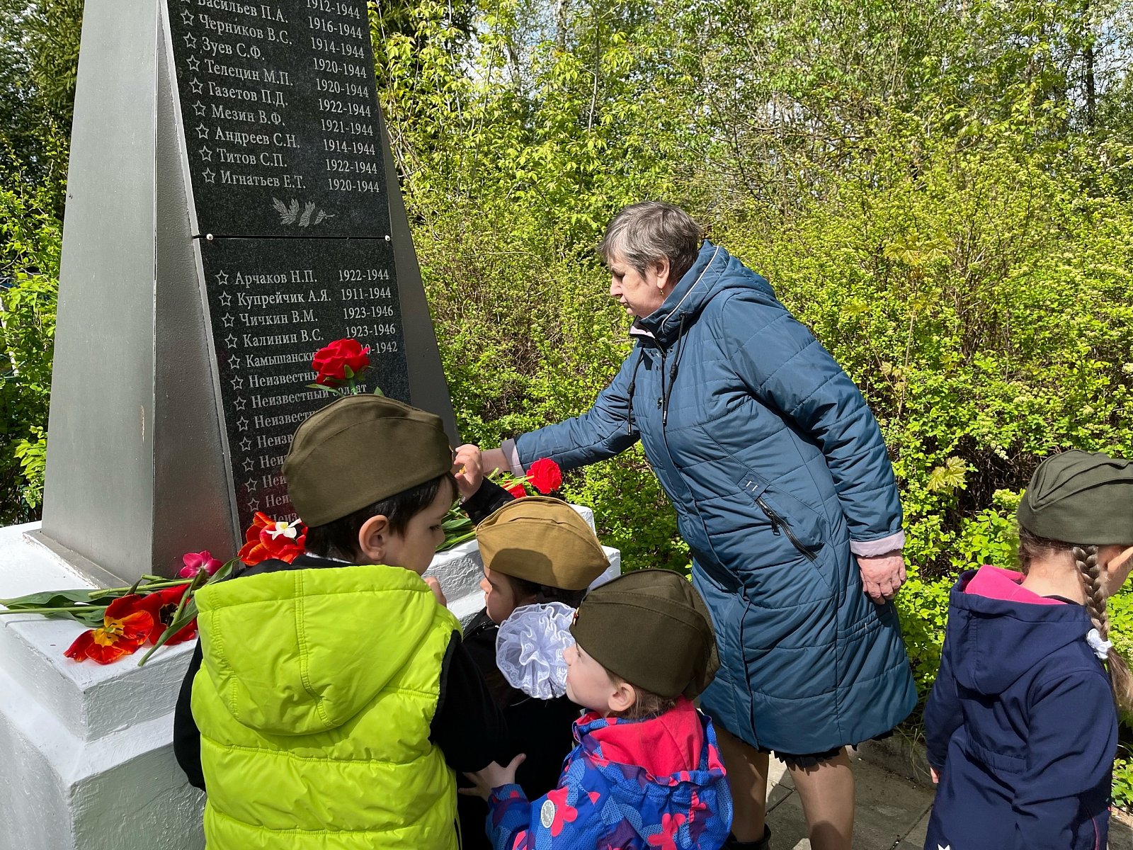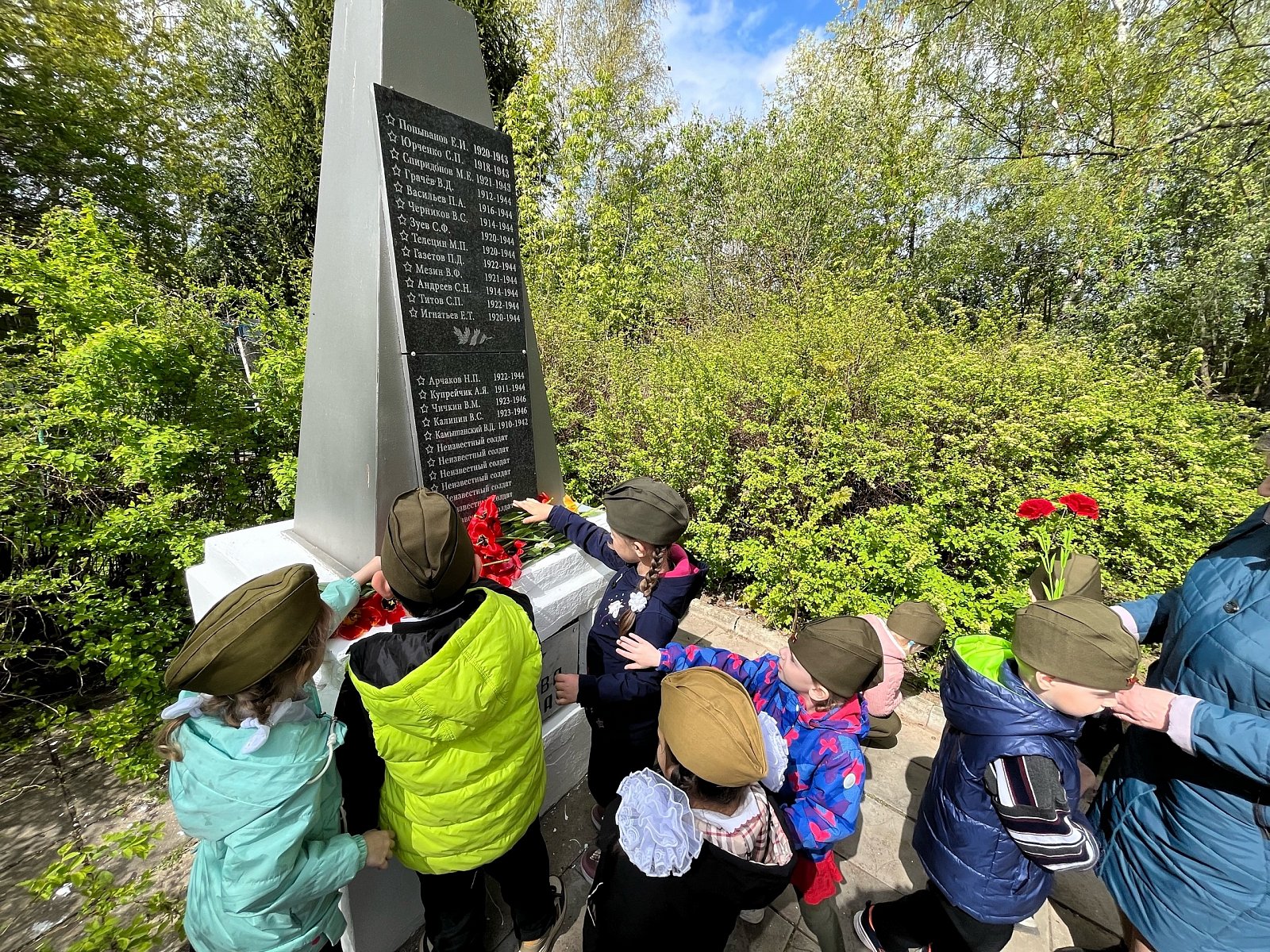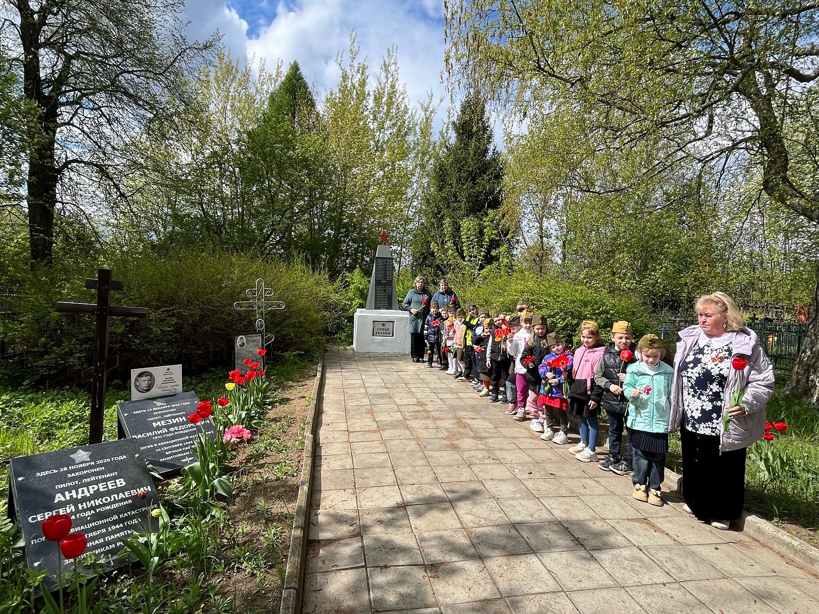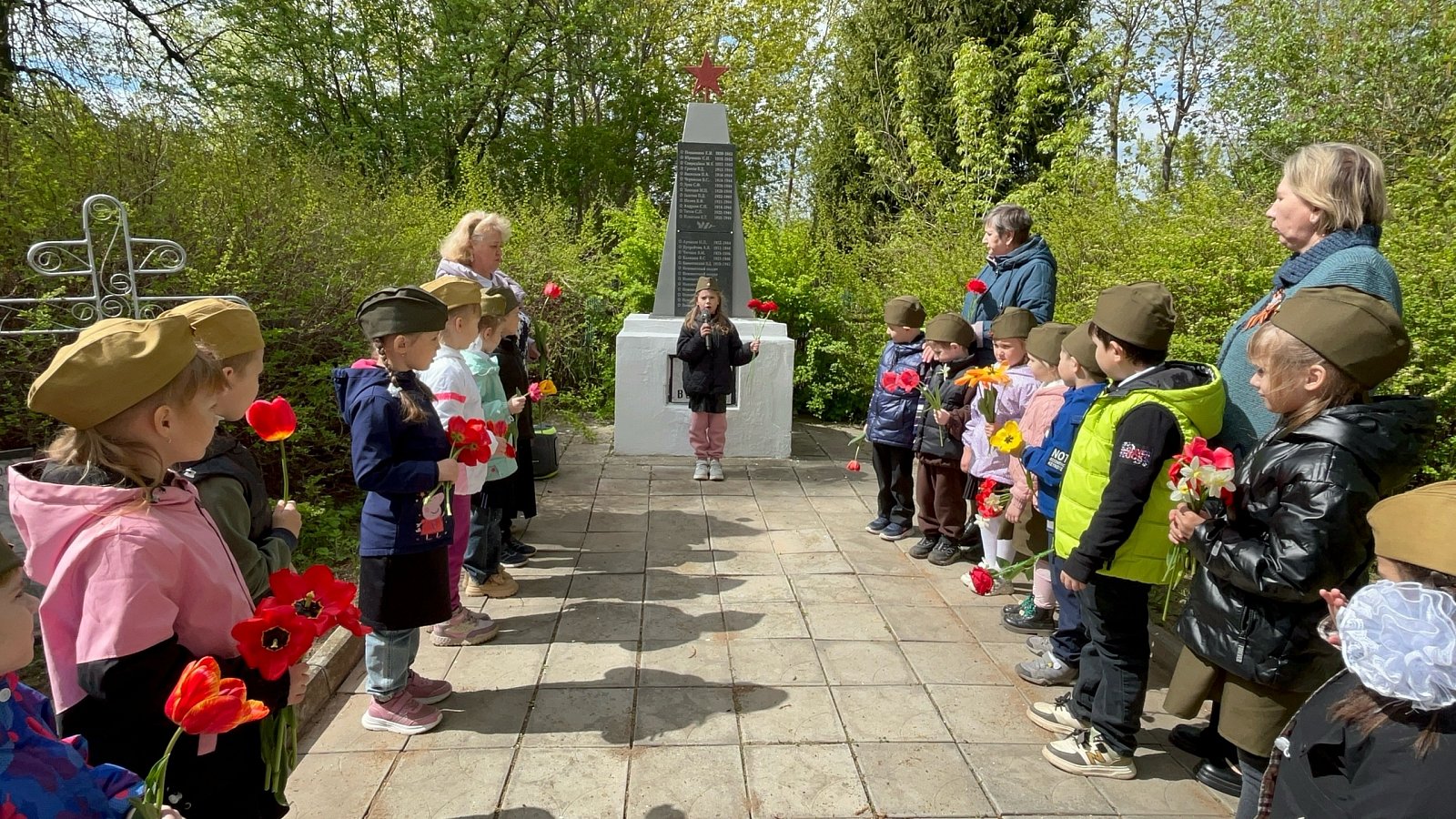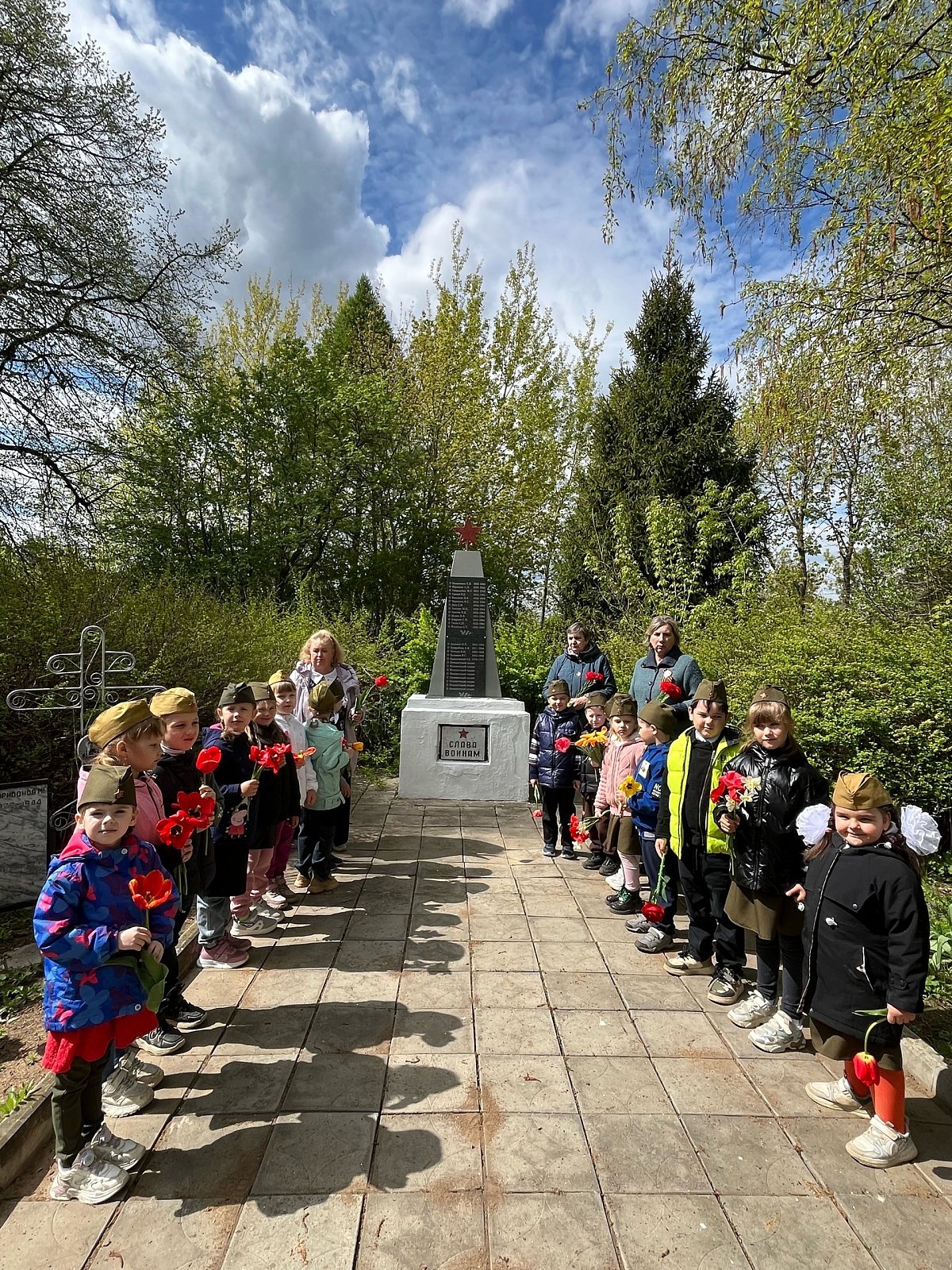 Наша страна будет отмечать 80-летие Победы в Великой Отечественной Войне. 7 мая воспитанники старшей группы "Колокольчик" и группы компенсирующей направленности Весёлый язычок " совместно с воспитателями Миловановой Т.Н. , Ларьковой О. Ю., музыкальным руководителем Алексеевой Я. В., и помощником воспитателя Алексутиной Л. Н. ходили к памятнику воинам и Братской могиле, погибшим во время Великой Отечественной Войны . Возле Мемориала Павшим Воинов, воспитатели провели беседу о героизме и подвиге советских солдат, спасших нашу страну от захватчиков, в честь которых поставлен памятник.