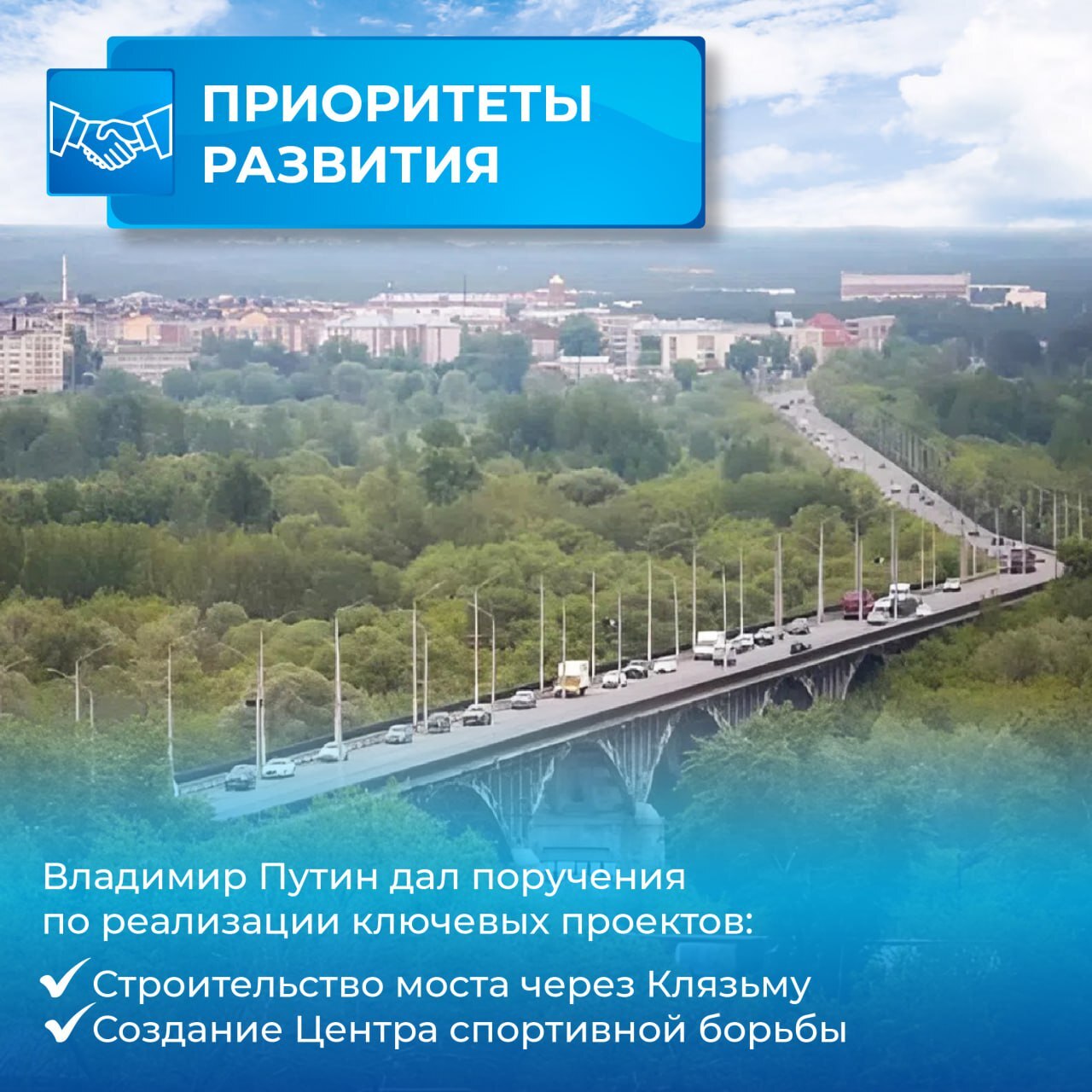 Президент поддержал инициативы региона, в том числе два важнейших проекта: строительство нового моста через Клязьму и создание Центра спортивной борьбы. По этим направлениям даны поручения правительству.
