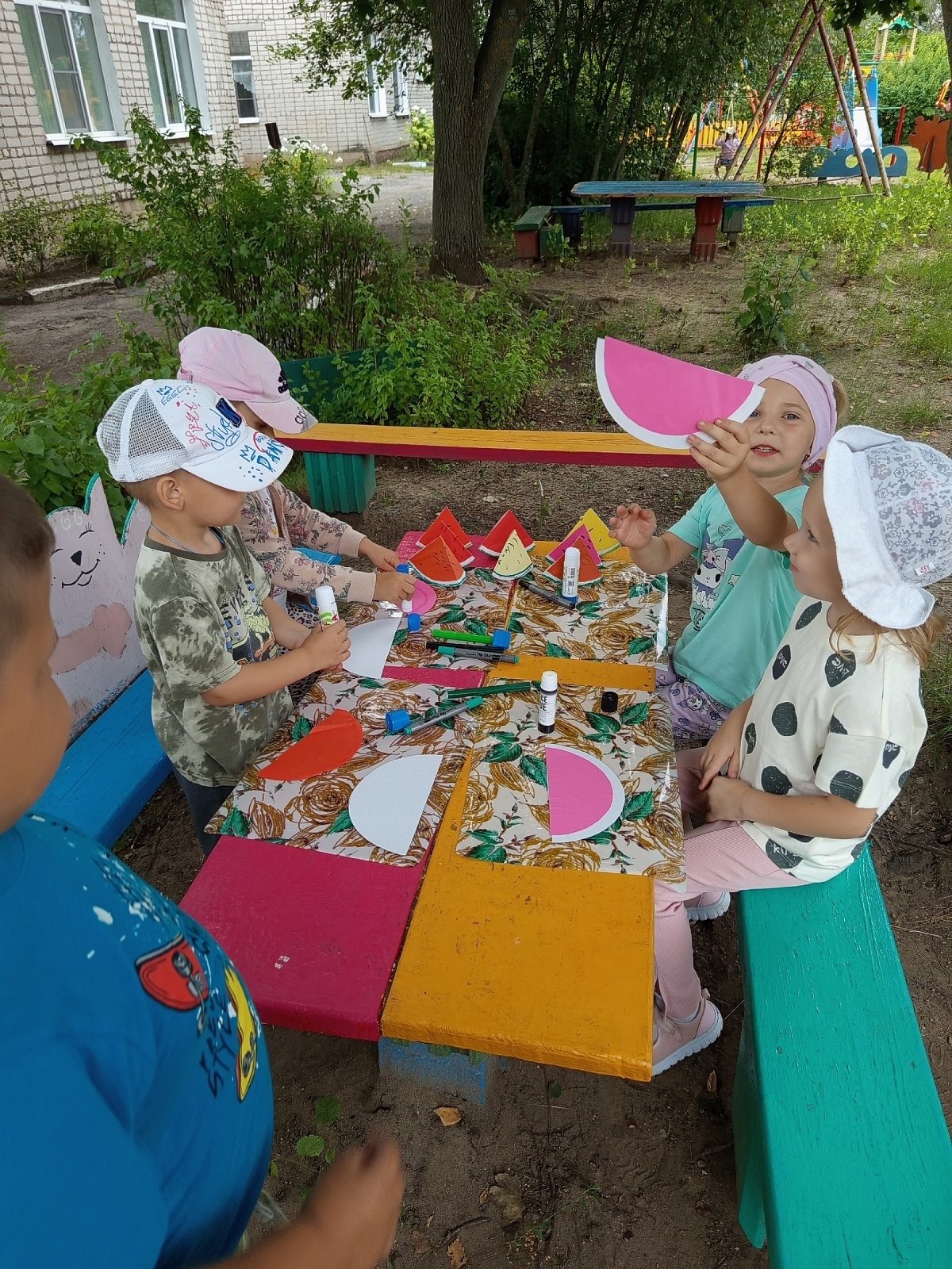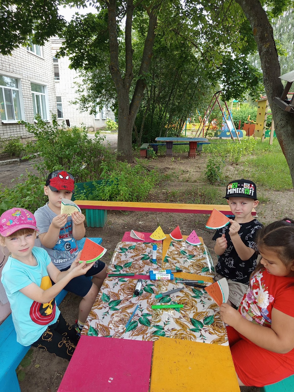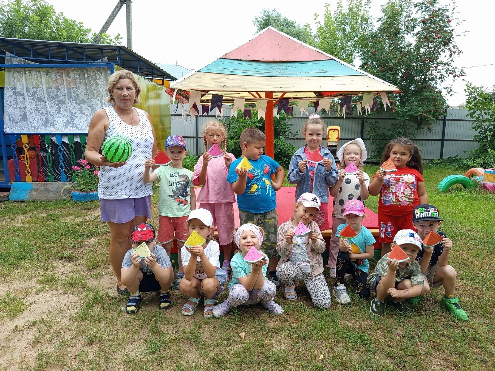 Воспитанники старшей группы (восп. Милованова Т. Н.) "вырастили" арбузики на своем участке