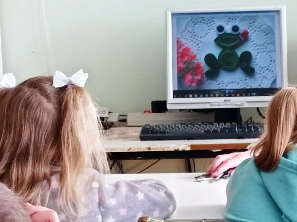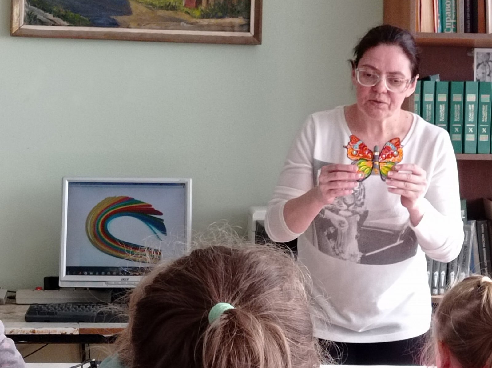 Ребят ожидало знакомство с еще одной техникой поделок, представленной на выставке. Называется такая техника — квиллинг. Это бумагокручение из специально подготовленных полос цветной бумаги. На мероприятии воспитанники знакомились с различными формами по скручиванию из полосок бумаги — каплей, полукругом, листком.