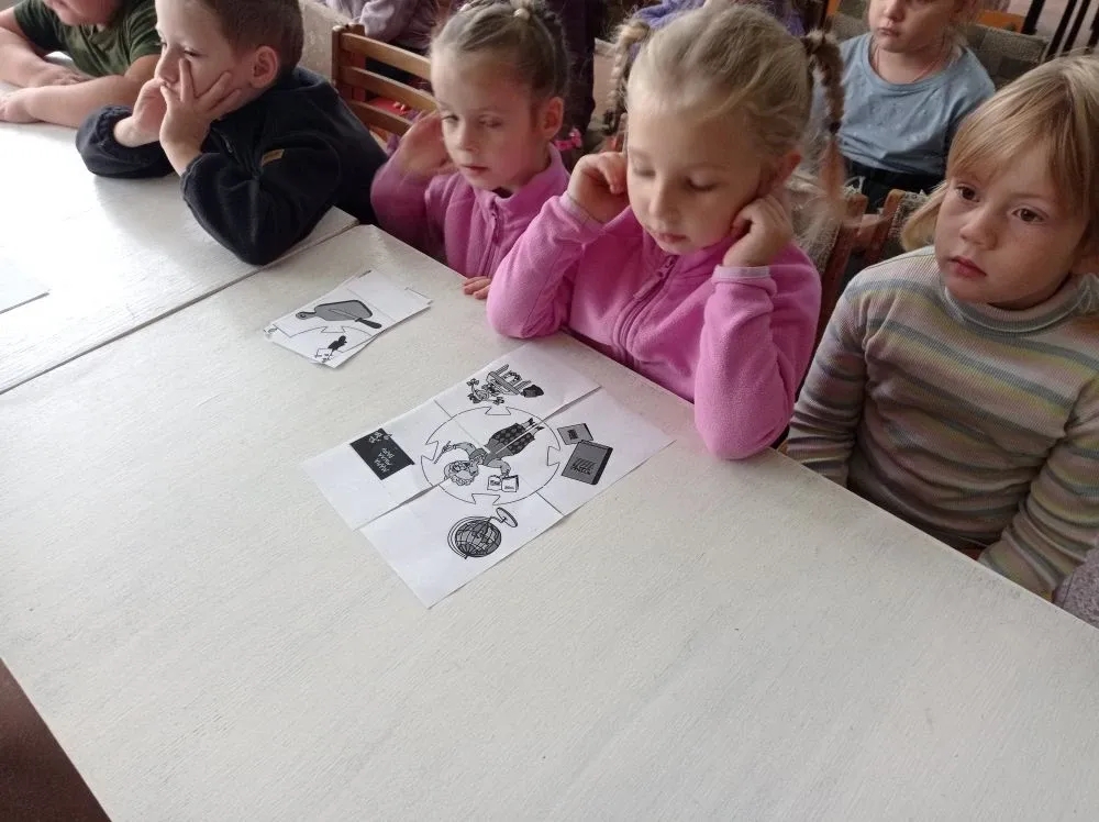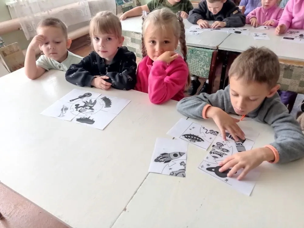 Воспитанники участвовали в тематической игре «Угадай профессию». Собрав пазлы, участники более детально рассмотрели профессии: космонавта, музыканта, швеи, моряка, кондитера, повара.