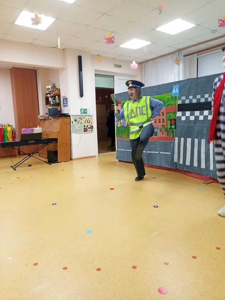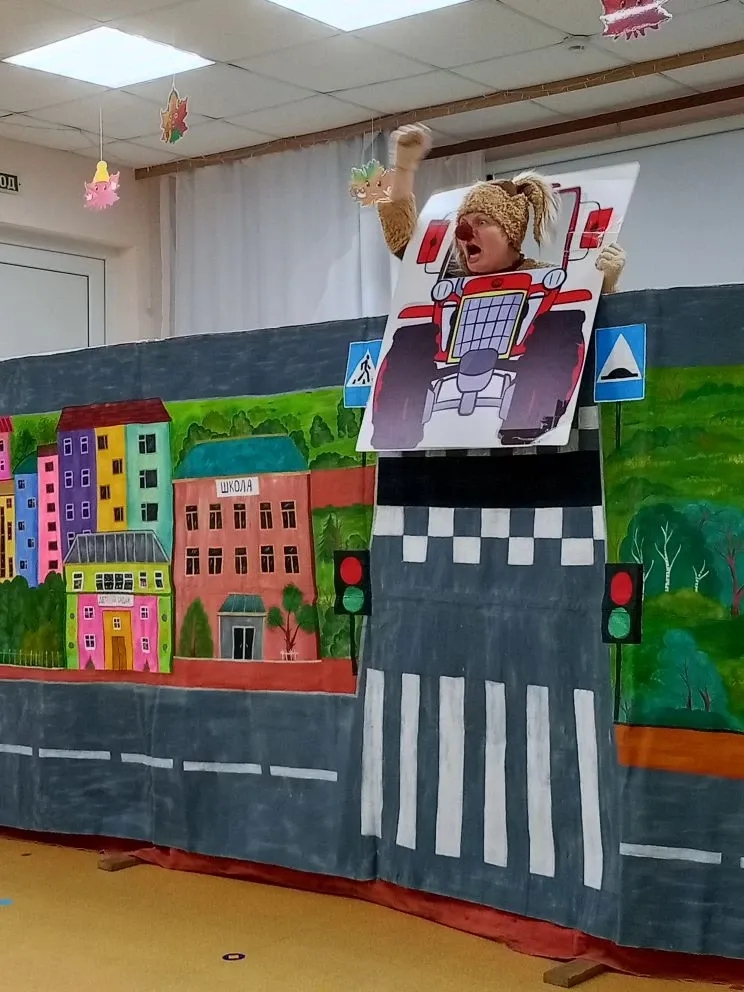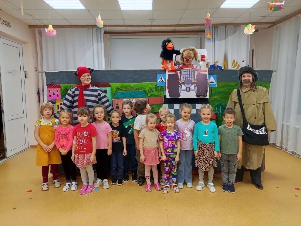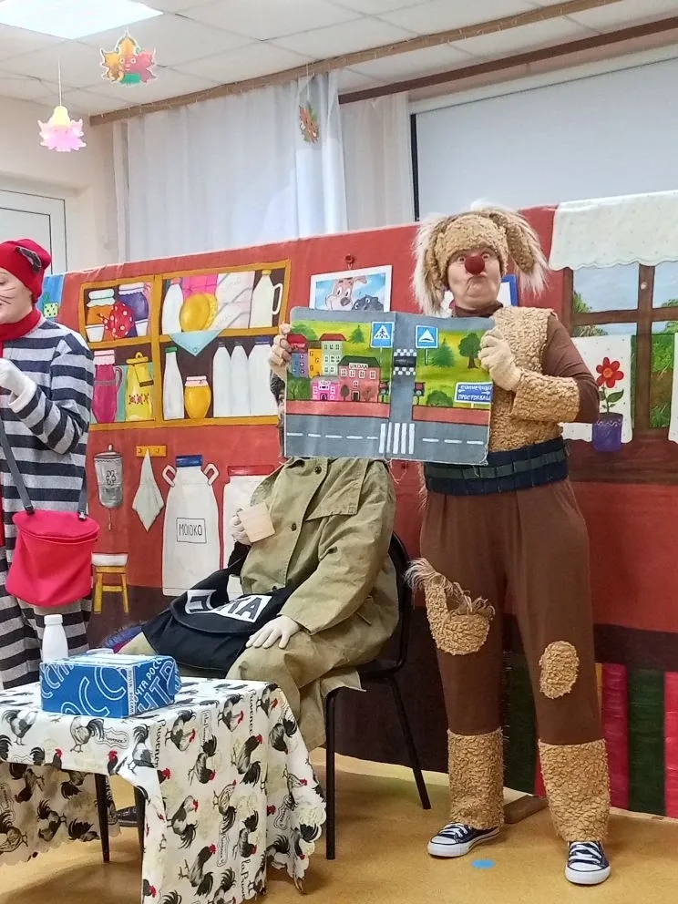 Сегодня наш детский сад посетил театр "Тимошка" с представителем "Дорожные приключения Матроскина и Шарика".