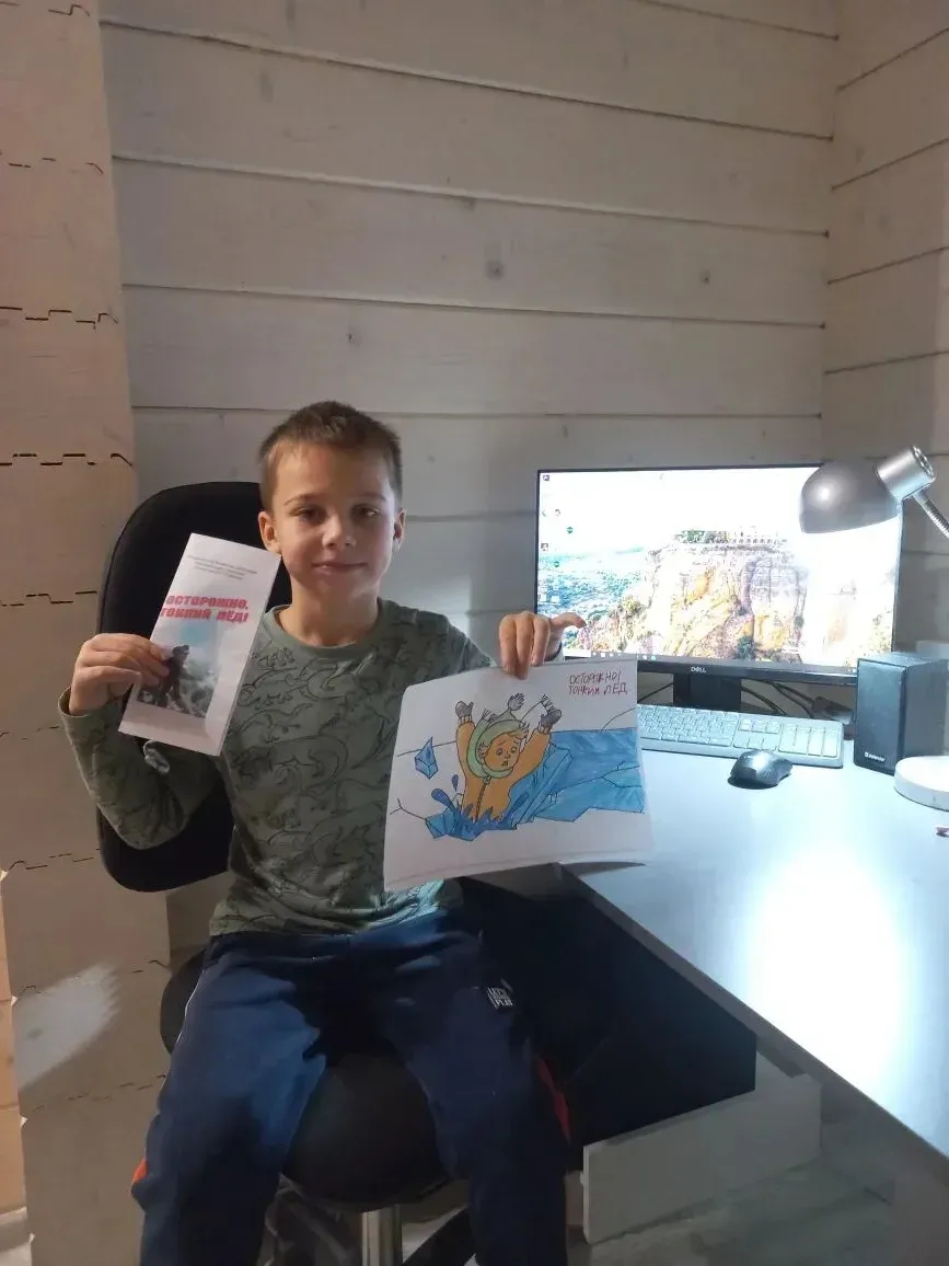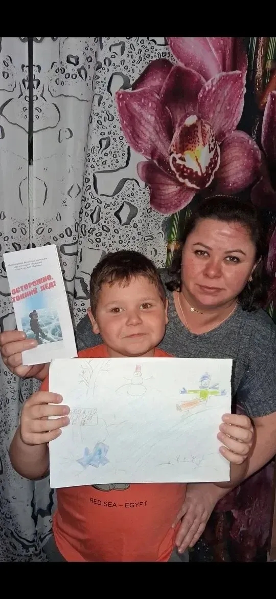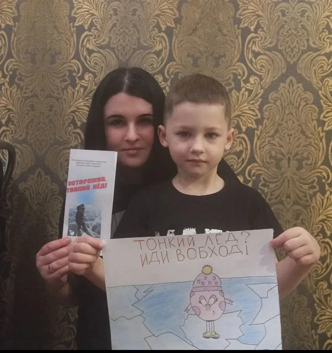 Совместно с родителями воспитанники нарисовали рисунки по безопасности на льду.