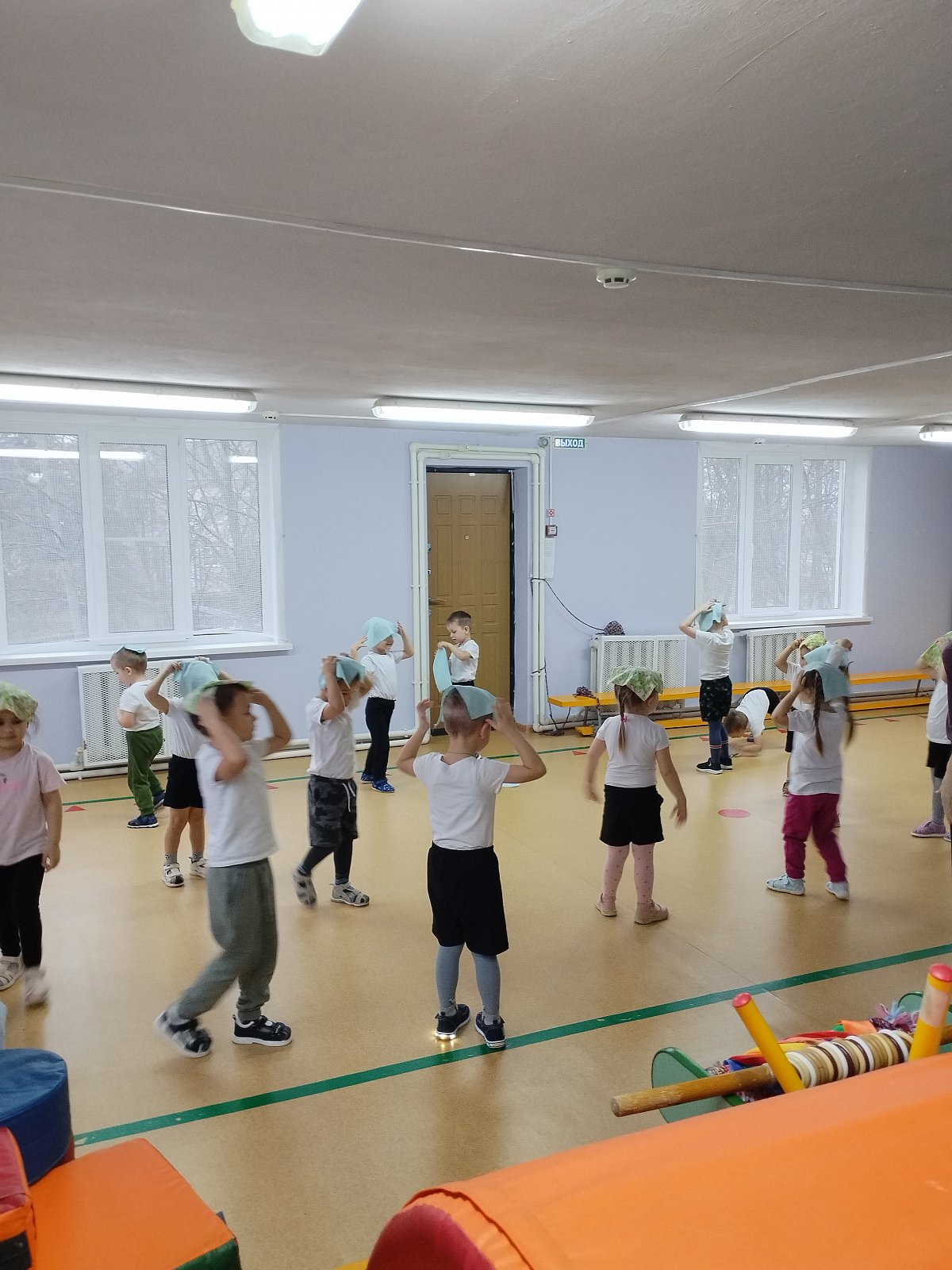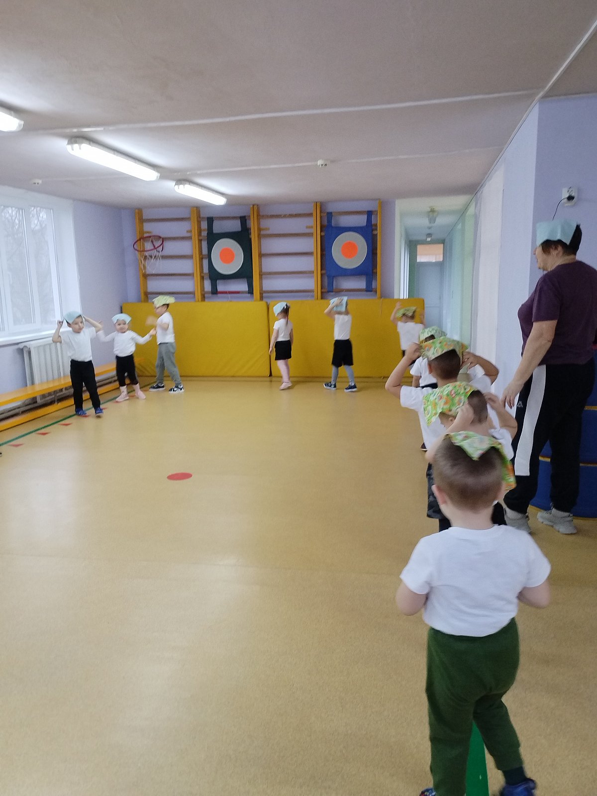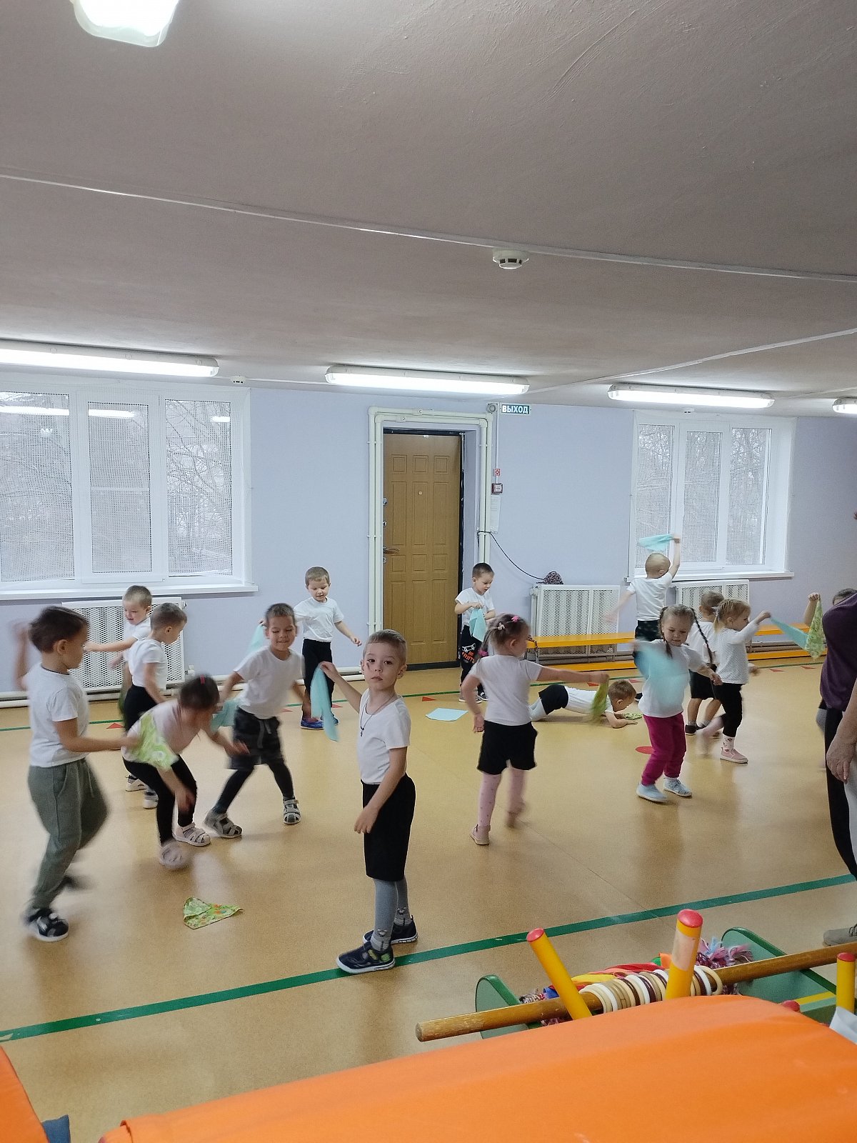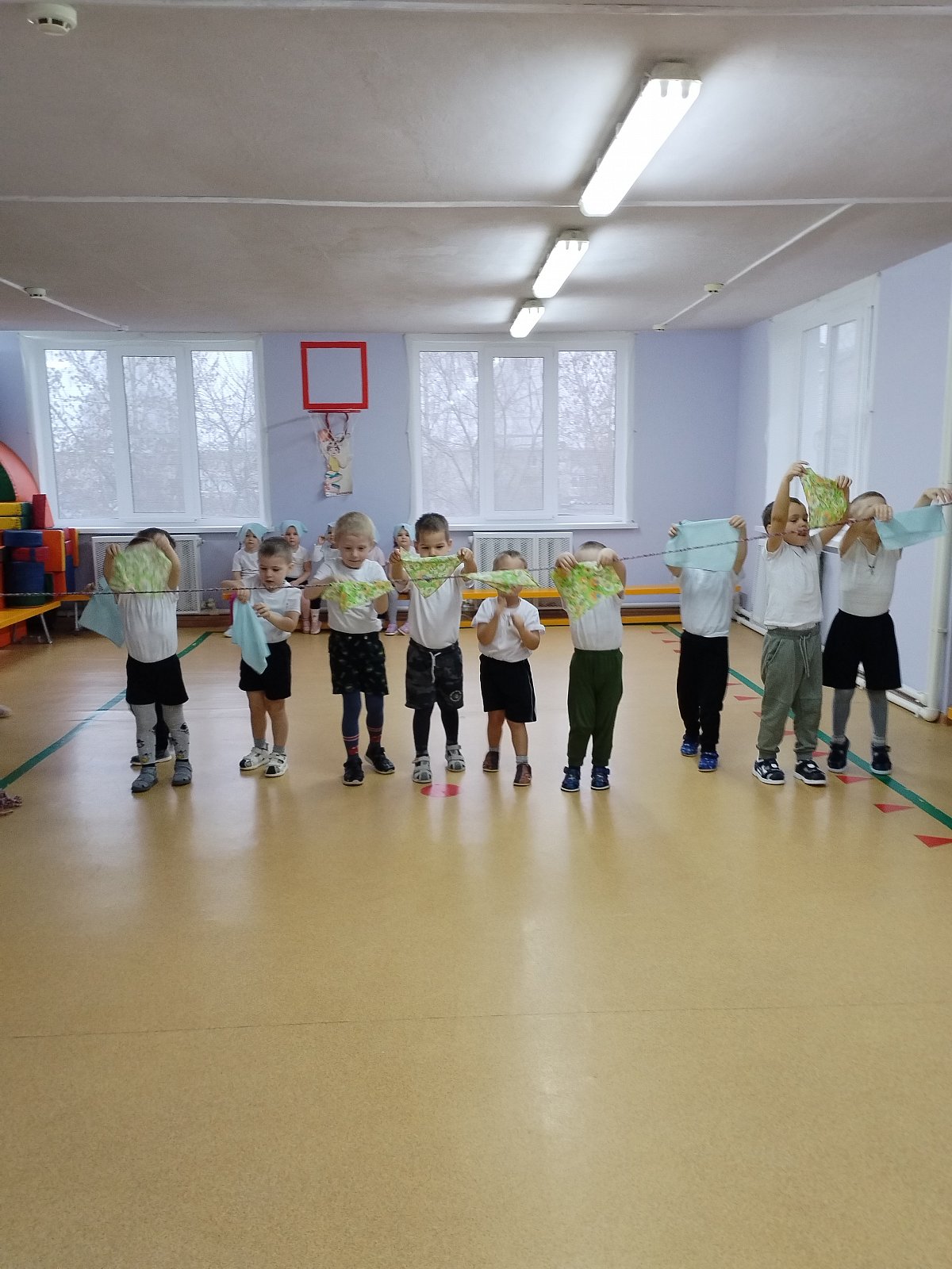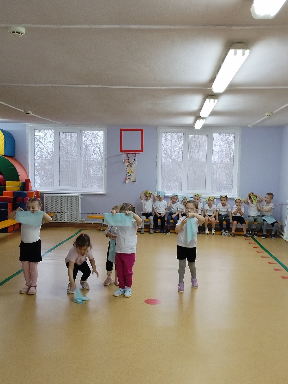 Воспитанники выполняли упражнения с платочками.