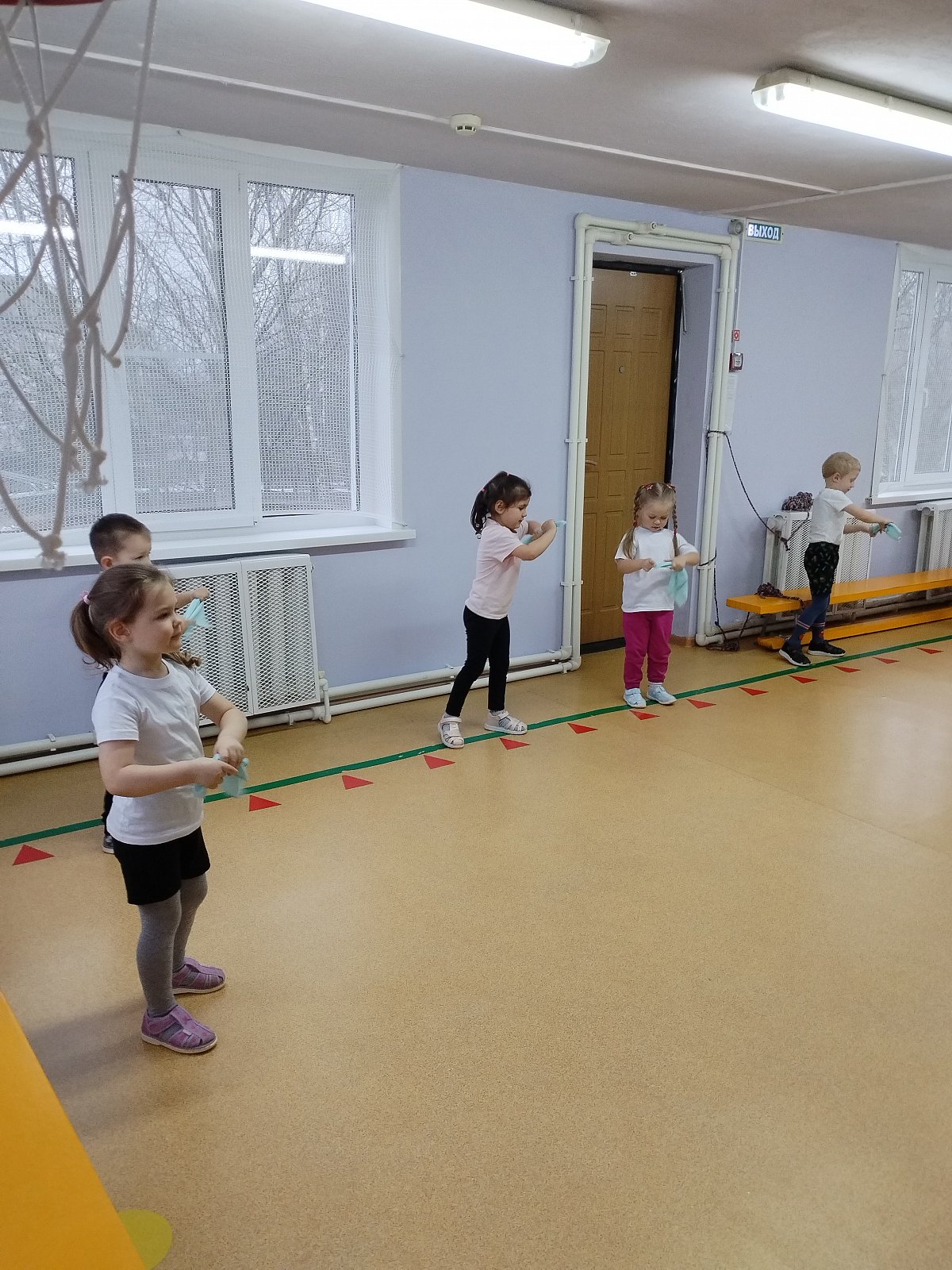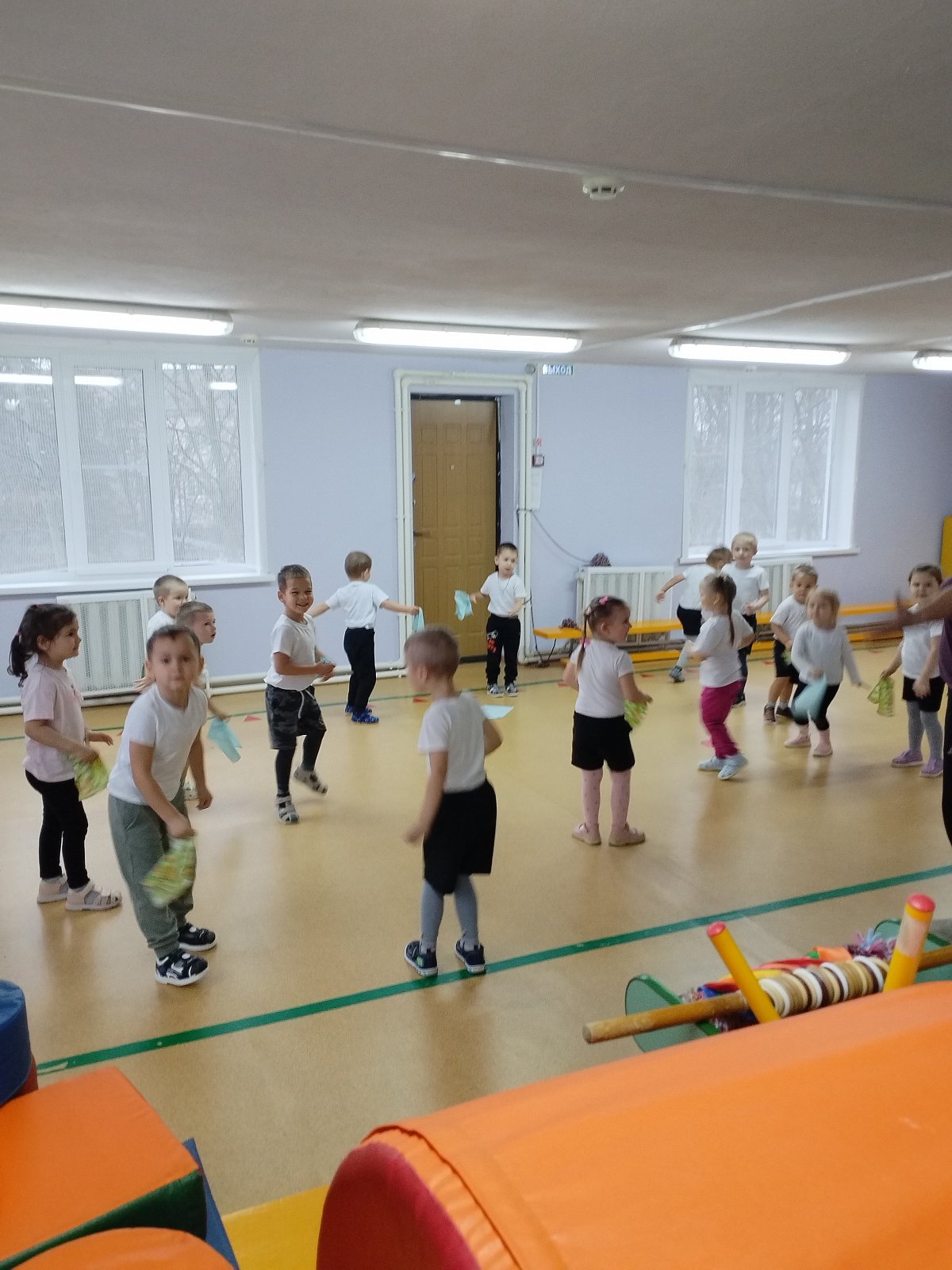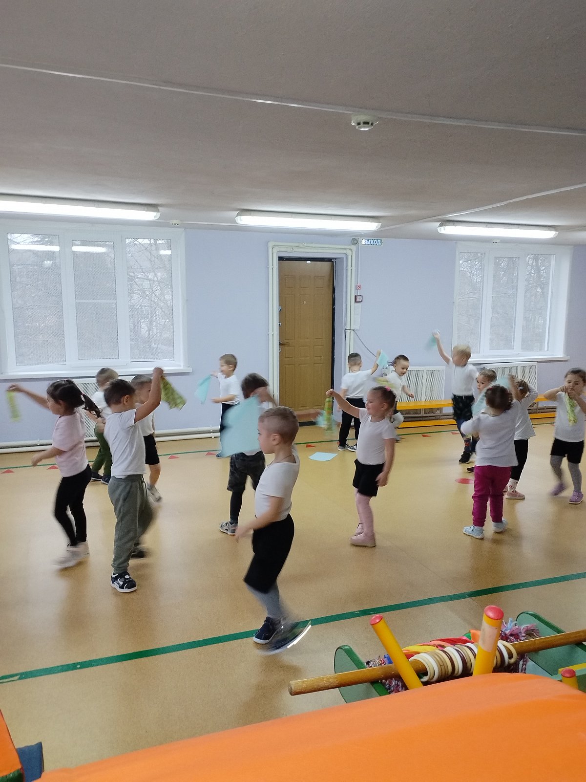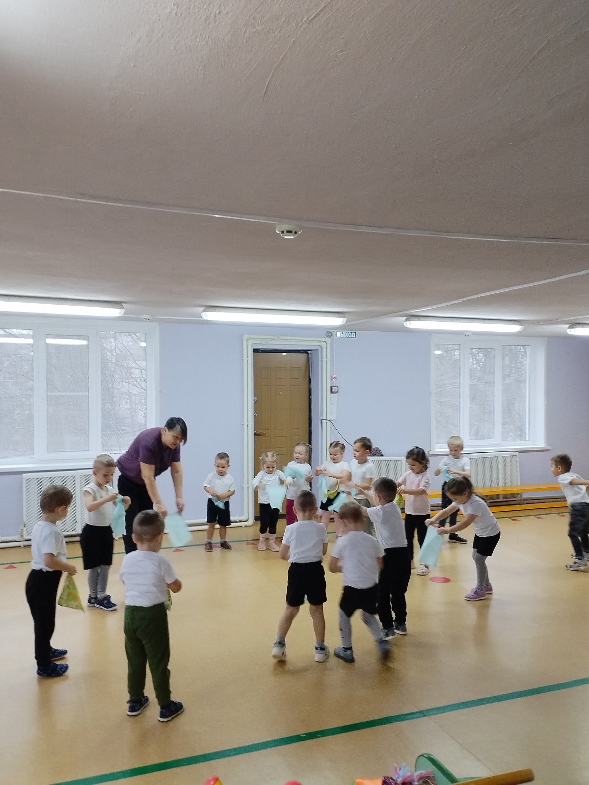Воспитанники выполняли упражнения с платочками.