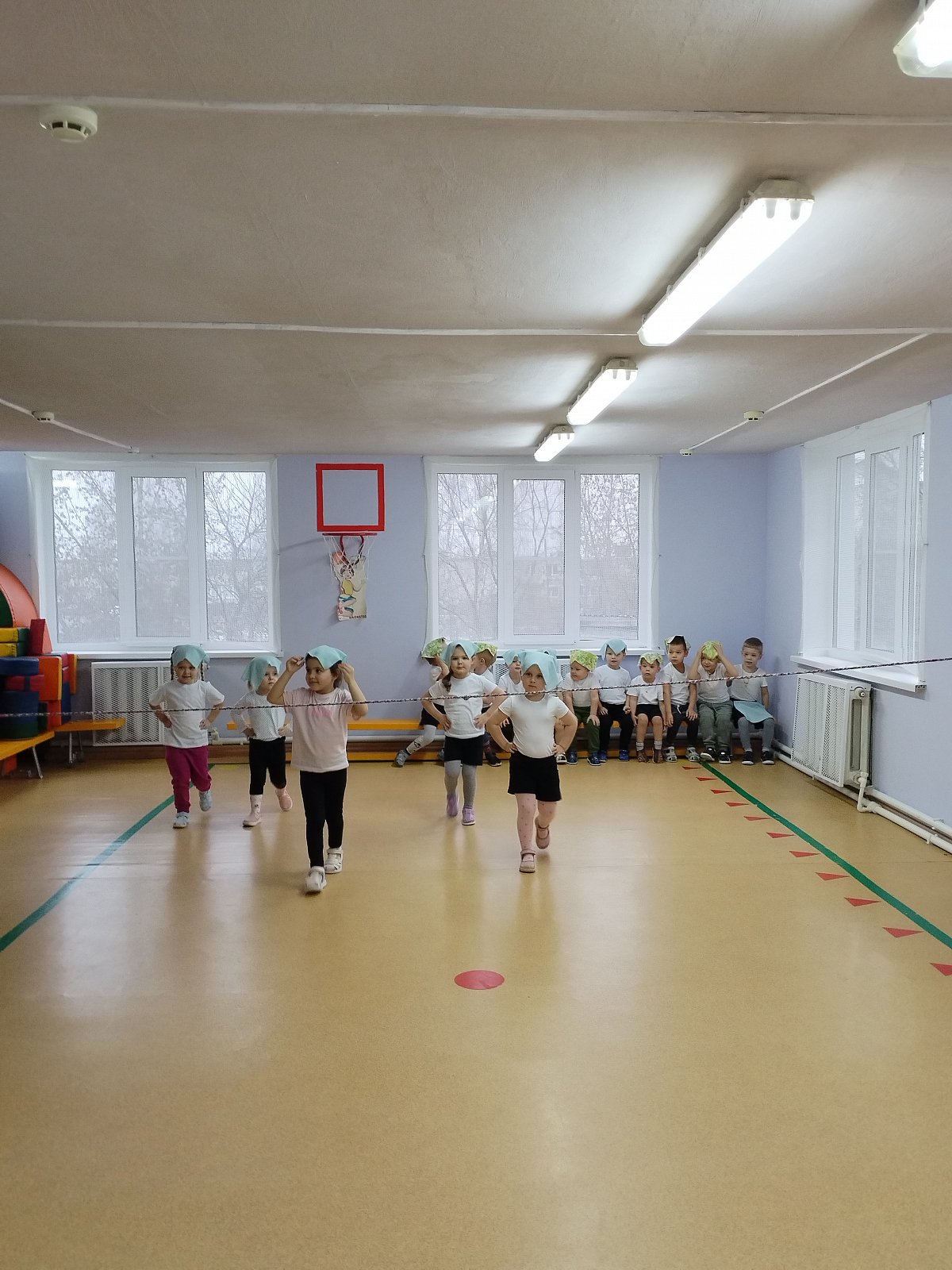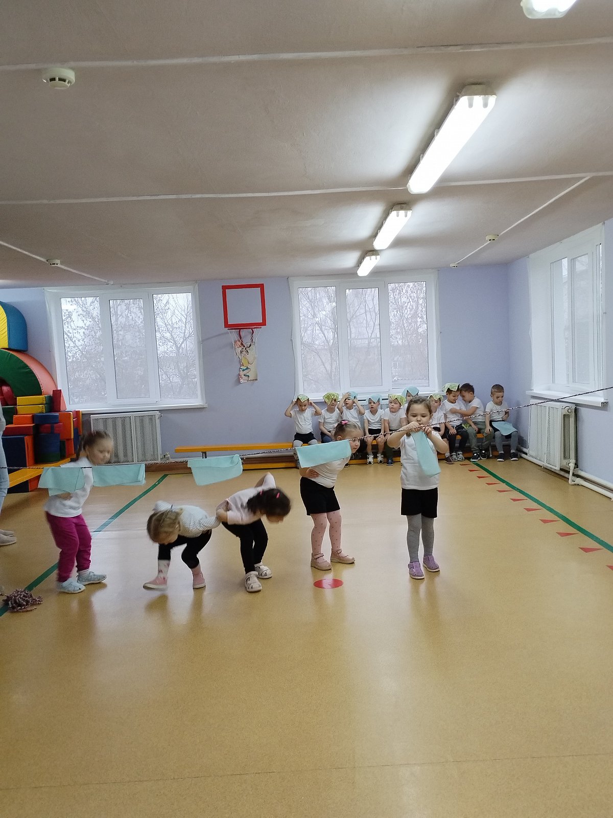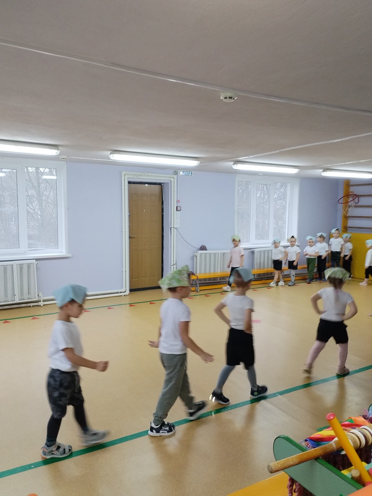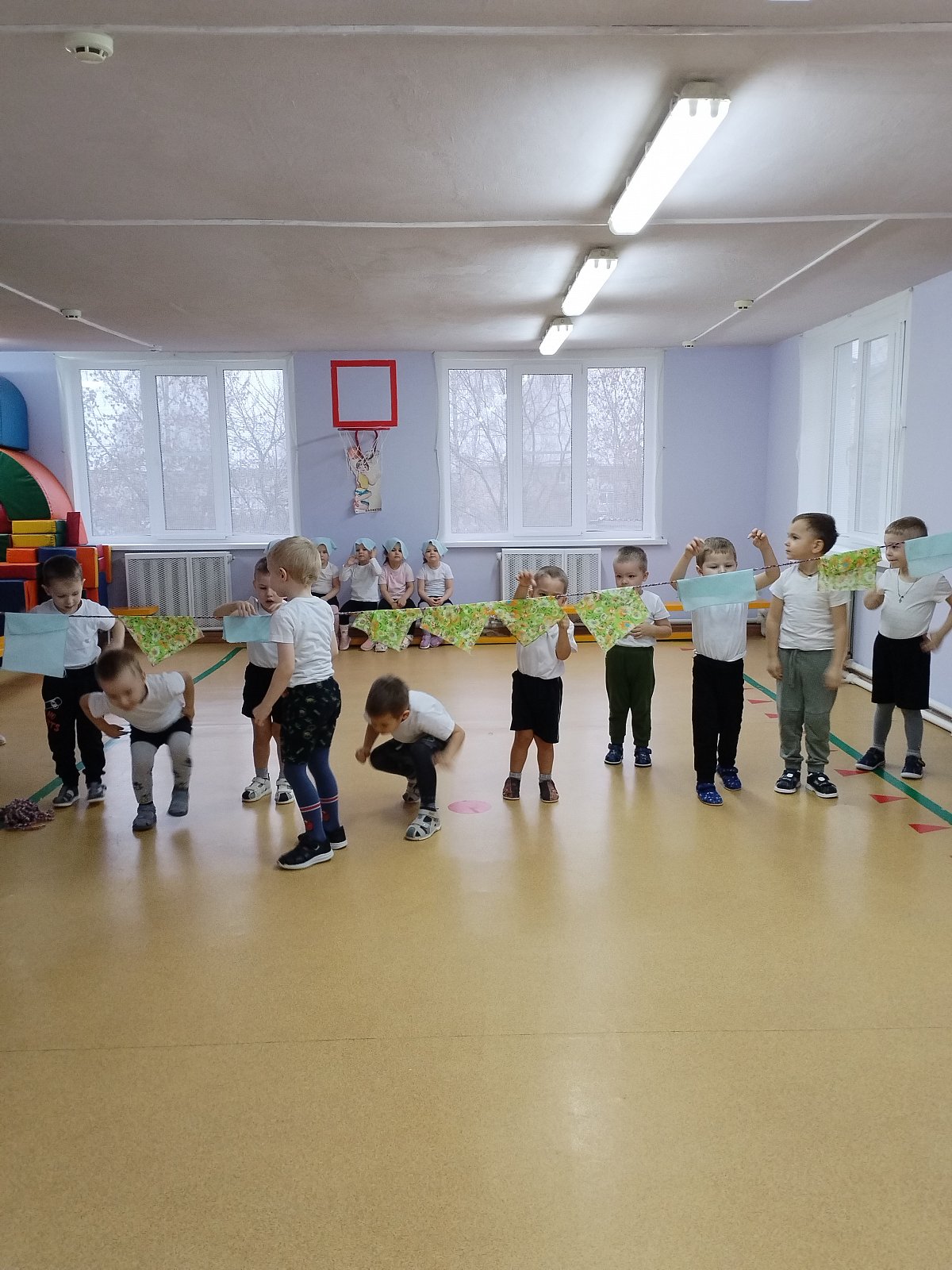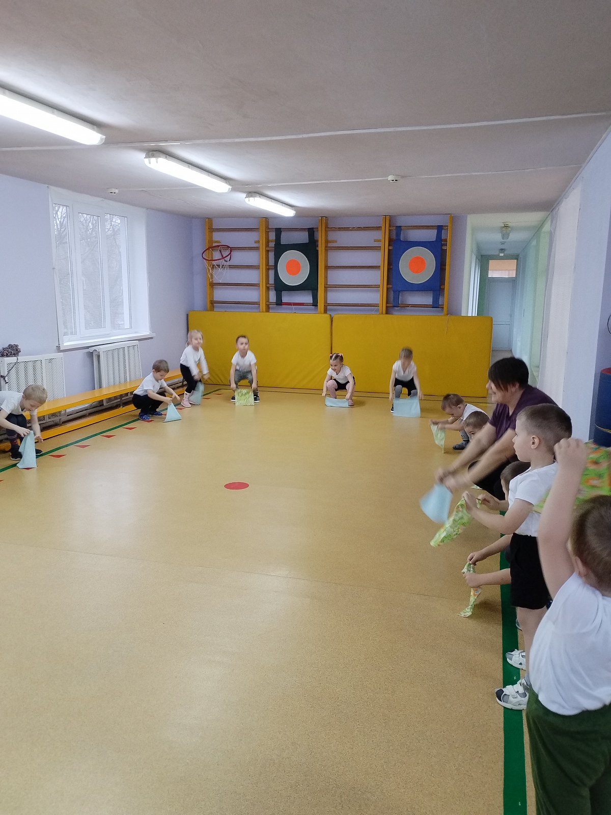 Воспитанники выполняли упражнения с платочками.