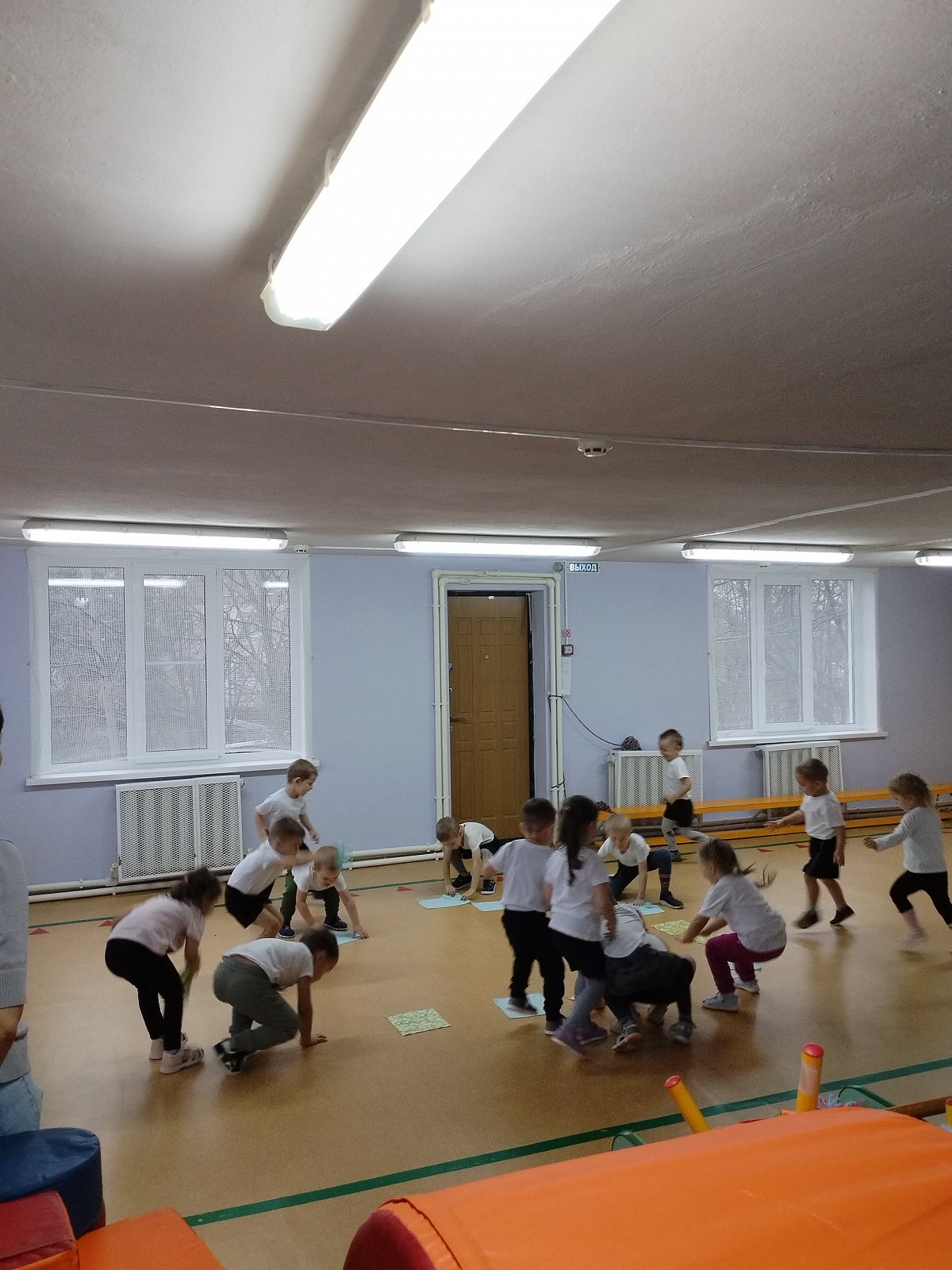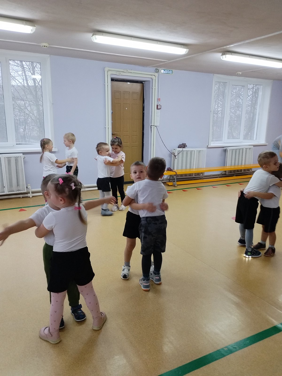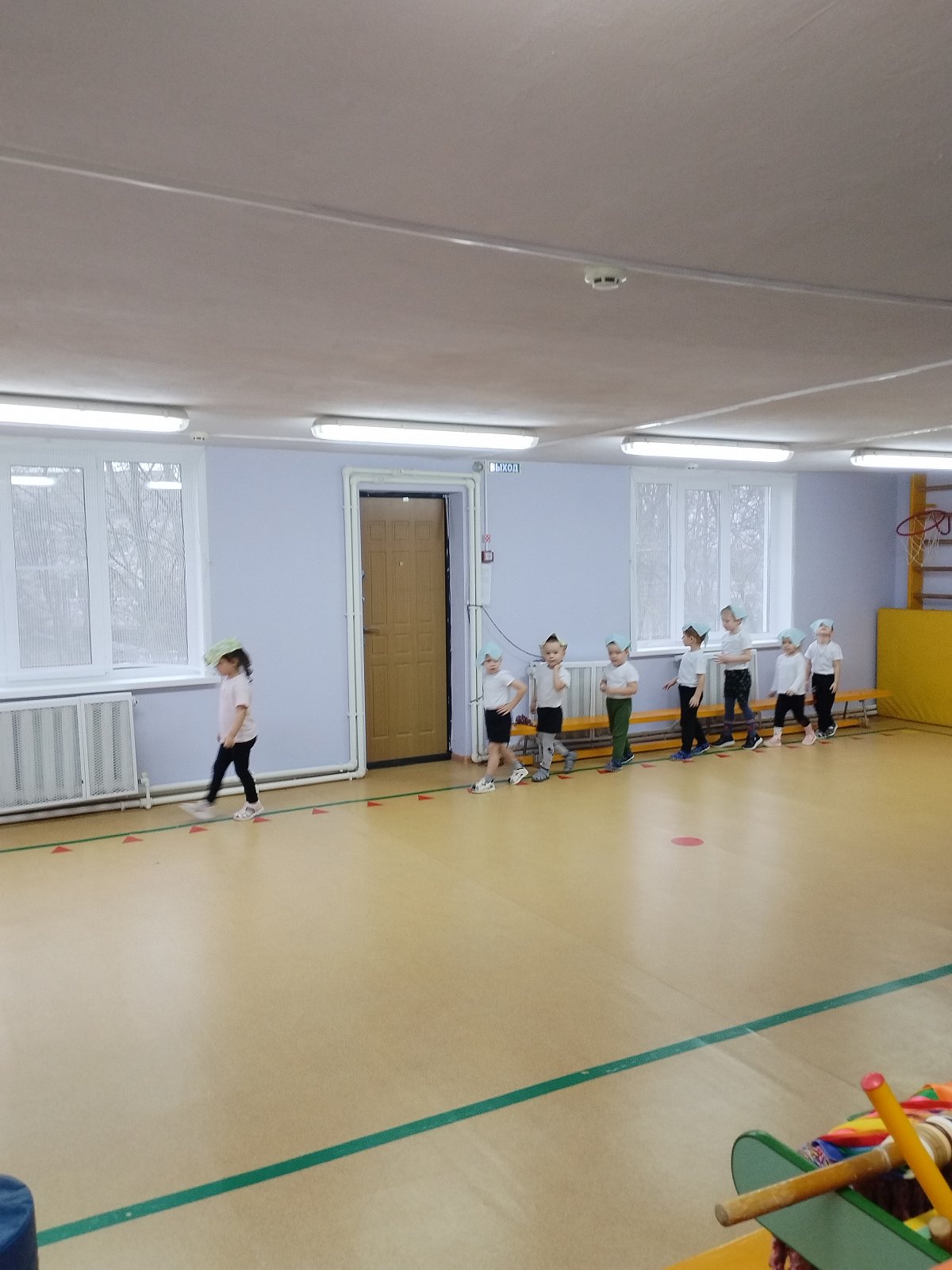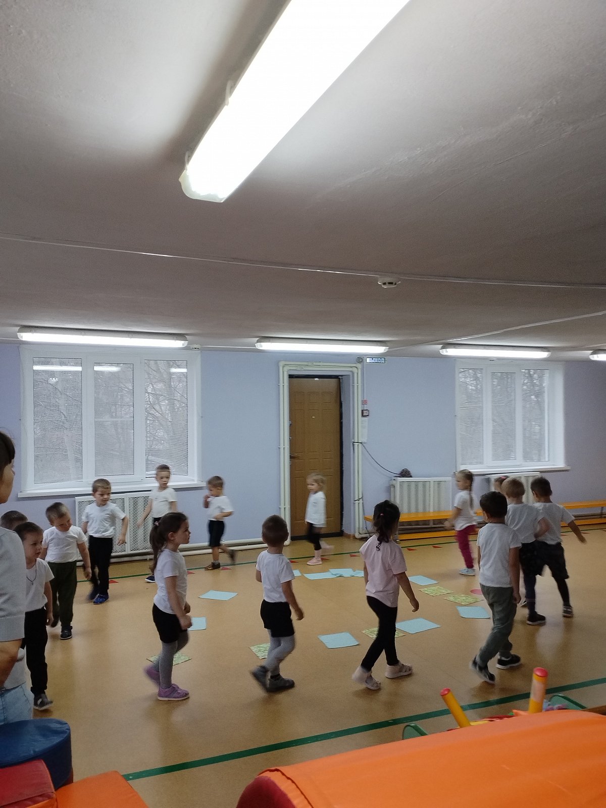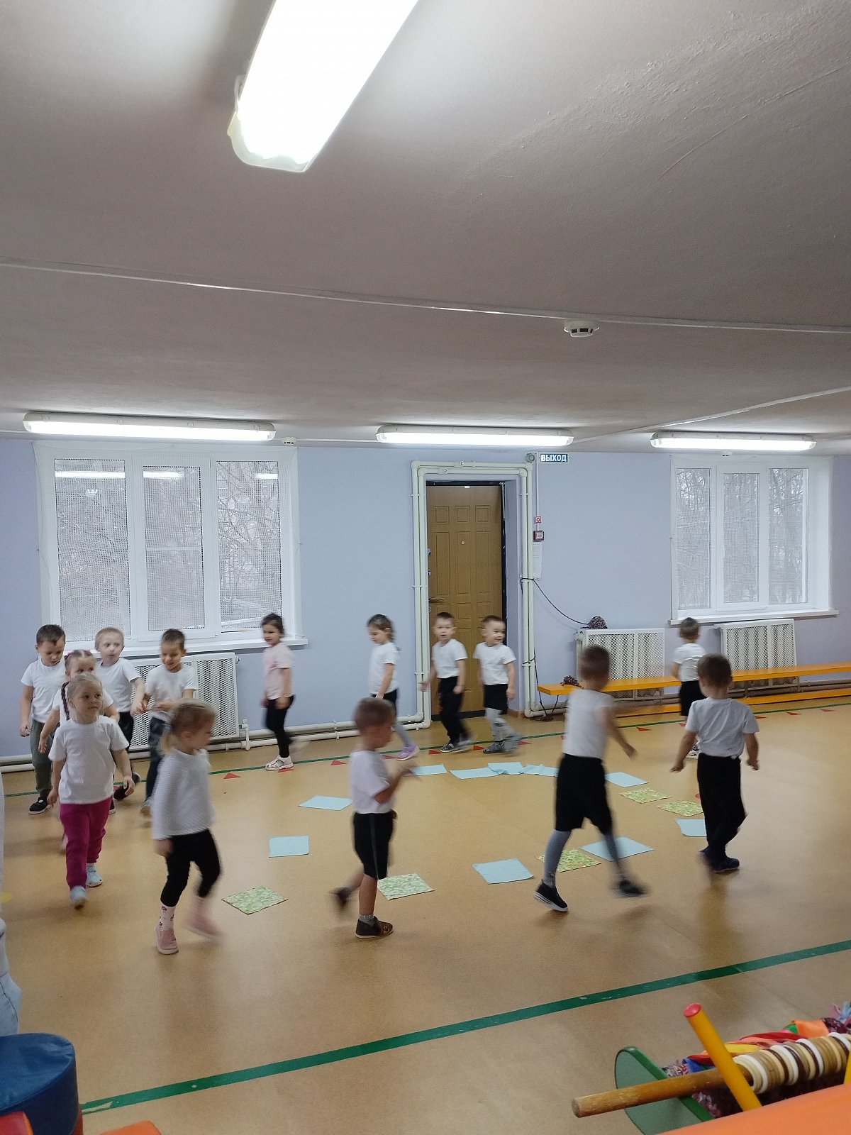 Воспитанники выполняли упражнения с платочками.