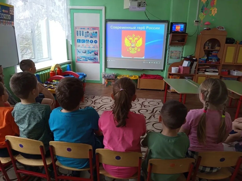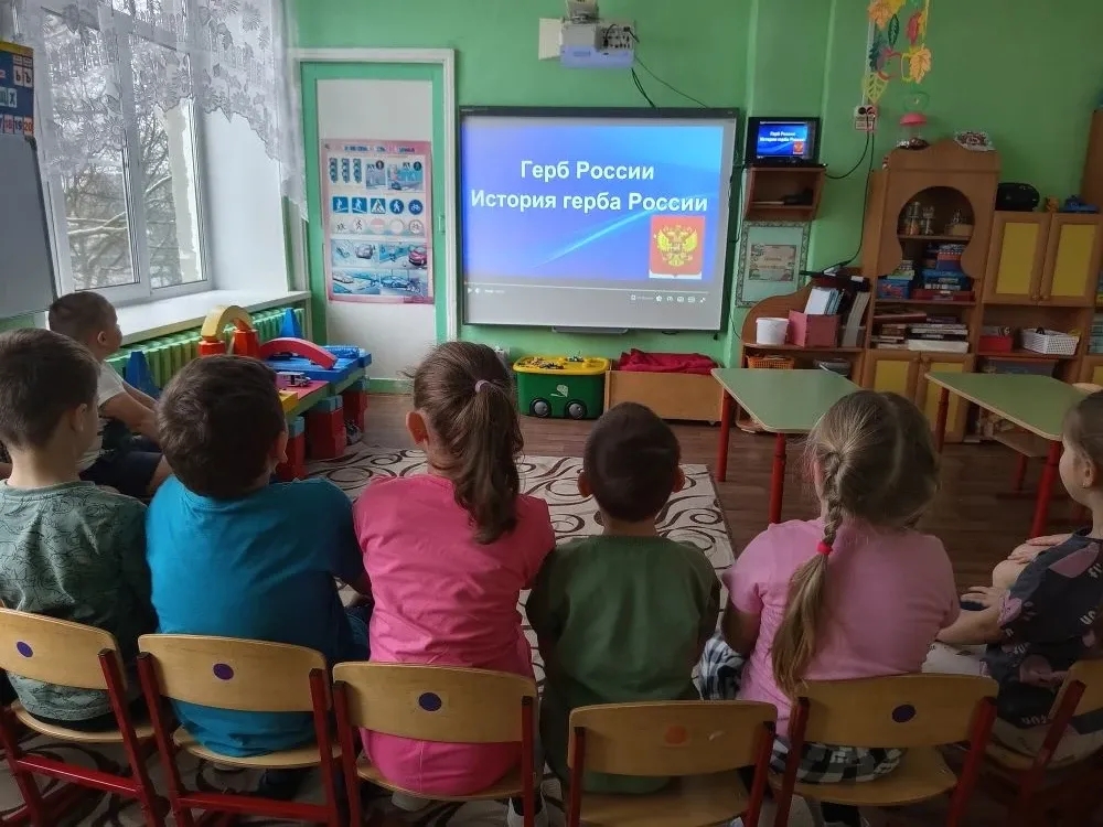 В группе компенсирующей направленности «Весёлый язычок» с воспитанниками прошли беседы на темы: «День герба Российской Федерации », «Один герб — одна Россия», «День Российского герба». Наши воспитанники узнали об истории появления Государственного герба и его значимости для нашего государства, посмотрев видеоролик.