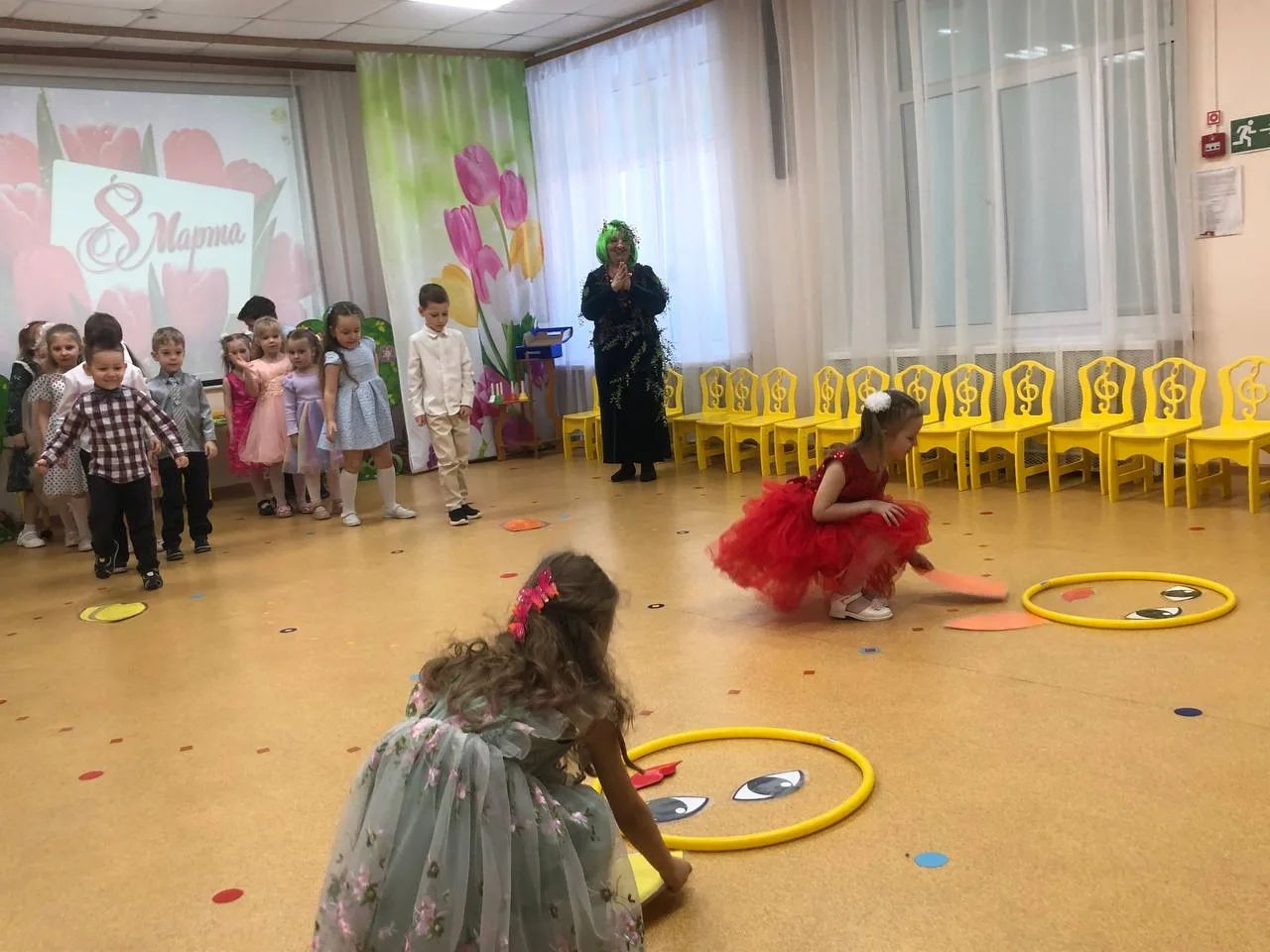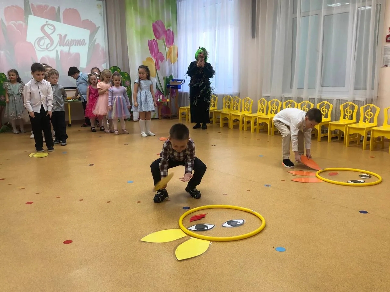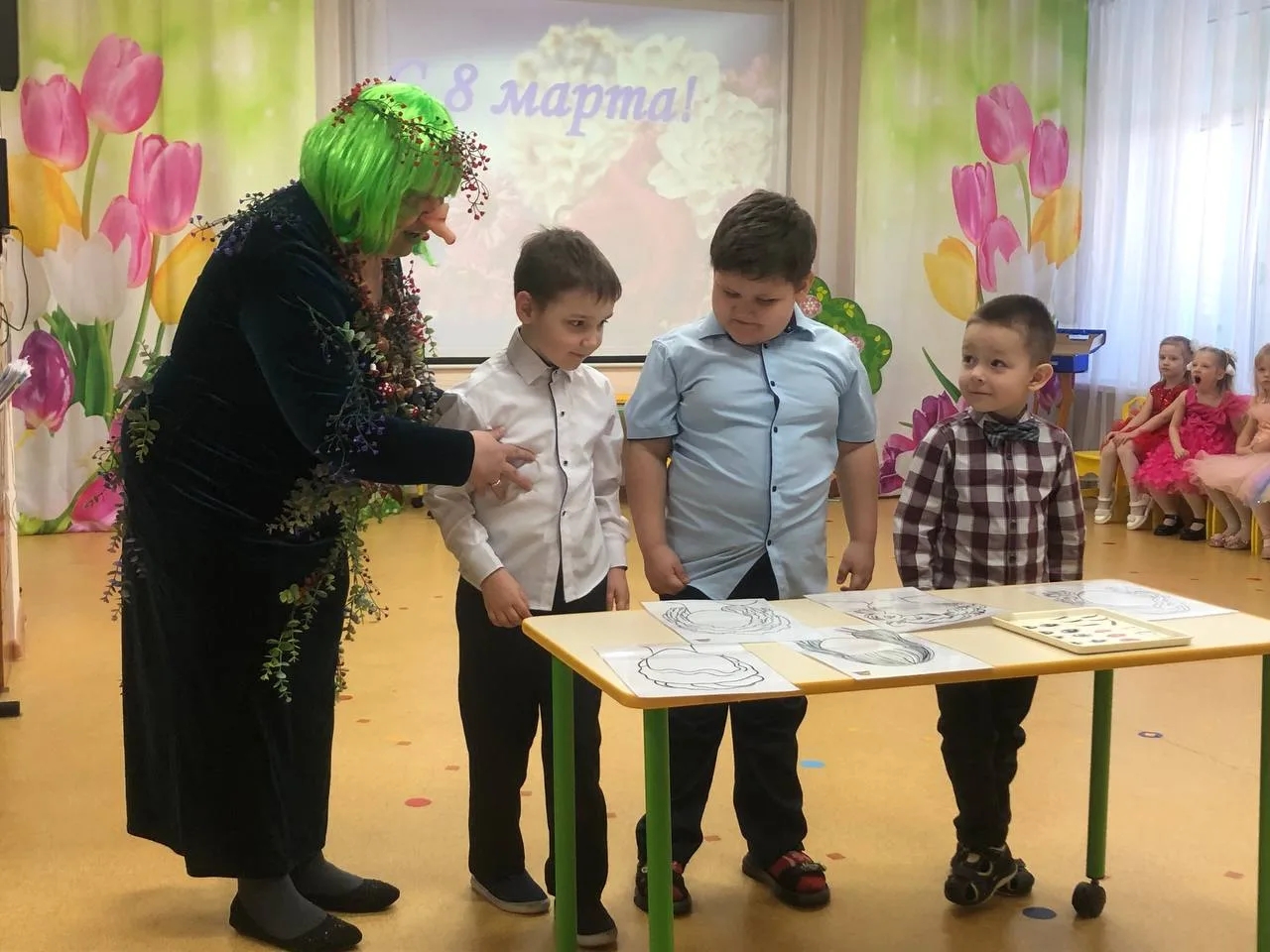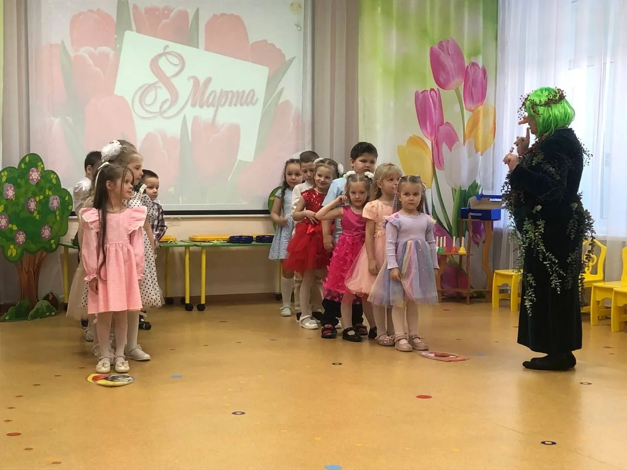 Сегодня в старшей группе «Колокольчик» прошёл праздничный утренник, посвящённый 8 Марта. В гости к воспитанникам пришла Кикимора, которая вместе с воспитанниками пела, танцевала и веселилась. Все участники праздника с удовольствием участвовали в играх, создавая атмосферу праздника.