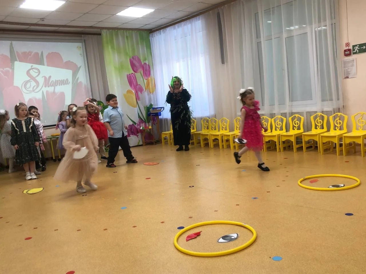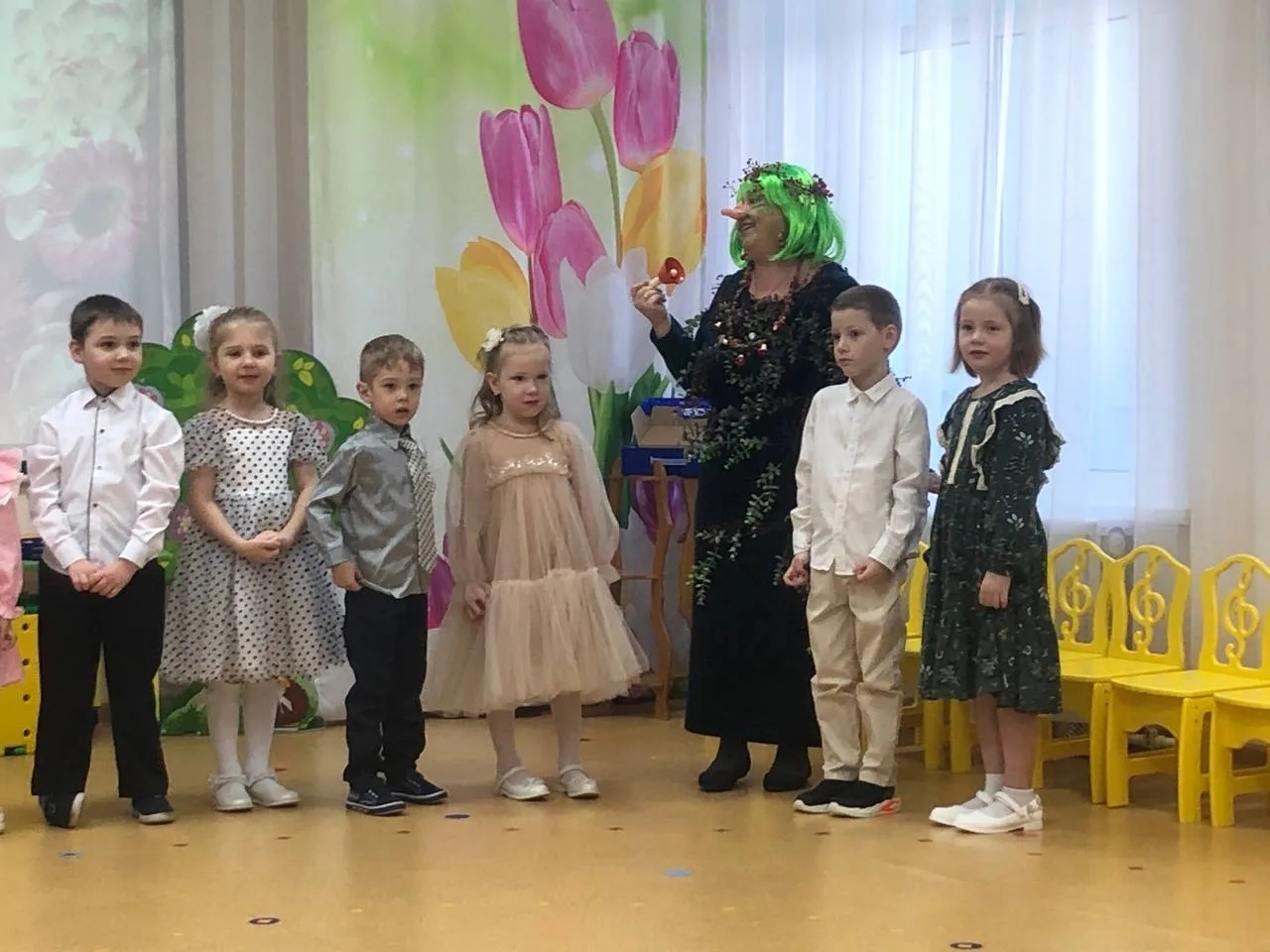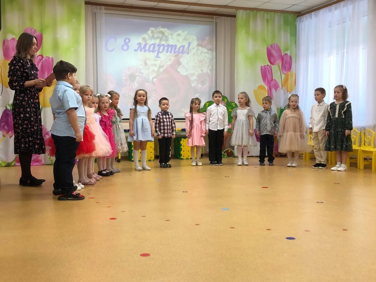 Сегодня в старшей группе «Колокольчик» прошёл праздничный утренник, посвящённый 8 Марта. В гости к воспитанникам пришла Кикимора, которая вместе с воспитанниками пела, танцевала и веселилась. Все участники праздника с удовольствием участвовали в играх, создавая атмосферу праздника.