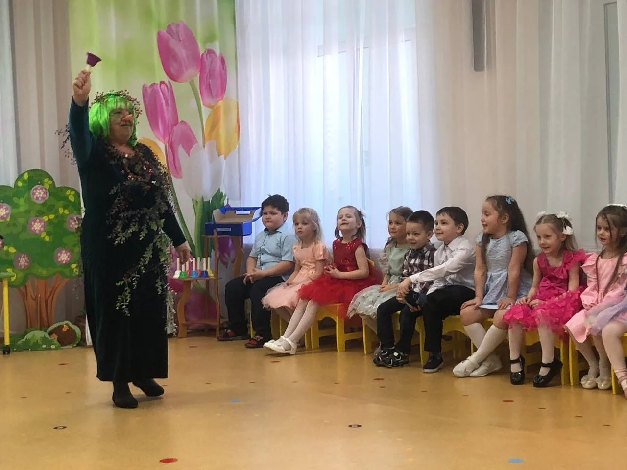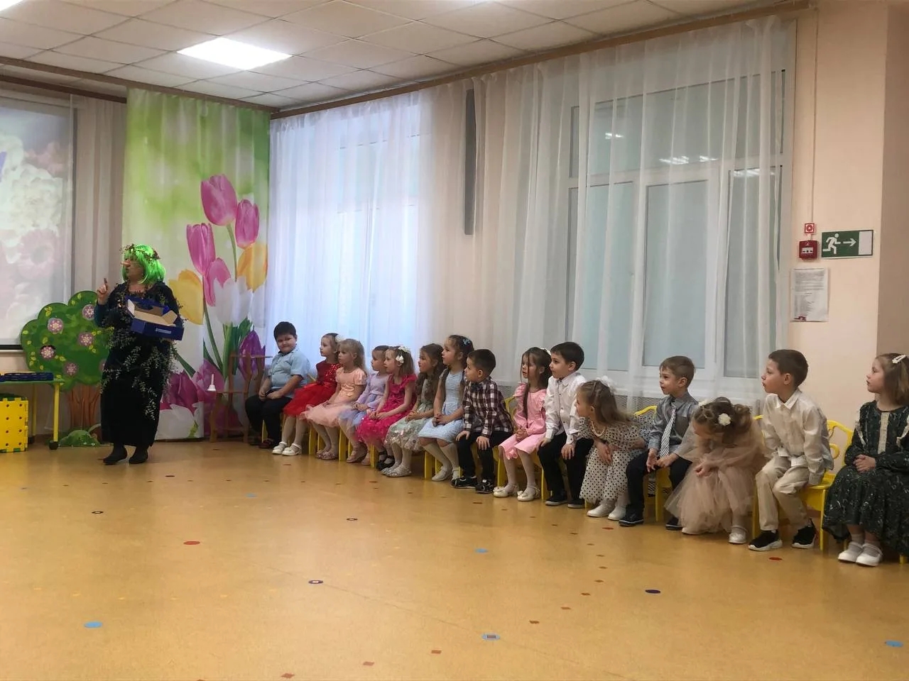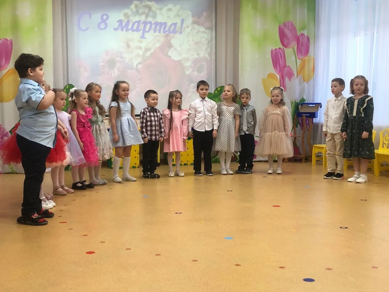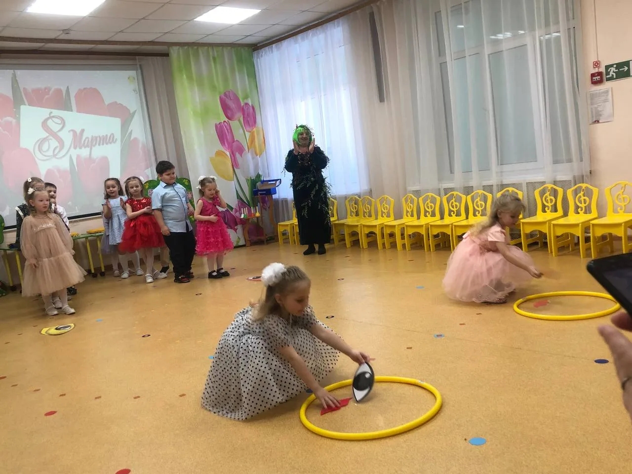 Сегодня в старшей группе «Колокольчик» прошёл праздничный утренник, посвящённый 8 Марта. В гости к воспитанникам пришла Кикимора, которая вместе с воспитанниками пела, танцевала и веселилась. Все участники праздника с удовольствием участвовали в играх, создавая атмосферу праздника.