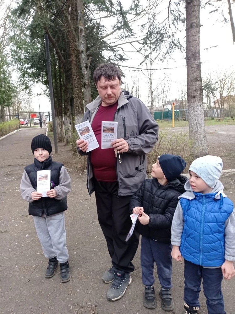 Юные экологи подготовили тематические буклеты для взрослых и раздали их родителям. В ходе акции воспитанники напомнили родителям о правилах поведения в пожароопасный период, об административной ответственности за пал травы и о том, как хрупка наша природа.